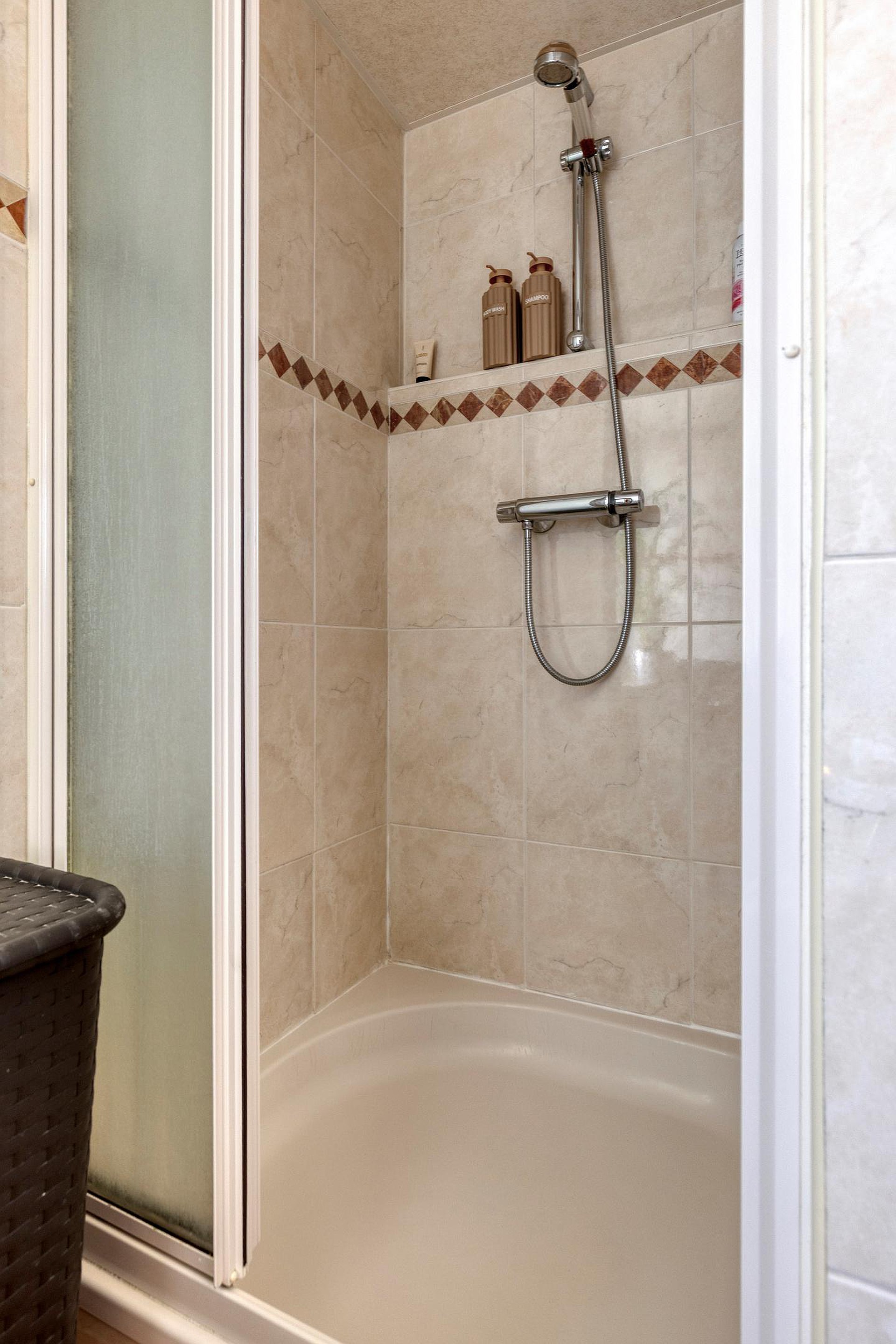 1e verdieping: overloop, 3 zeer ruime slaapkamers, badkamer met douche, ligbad, wastafelmeubel en 2e toilet.