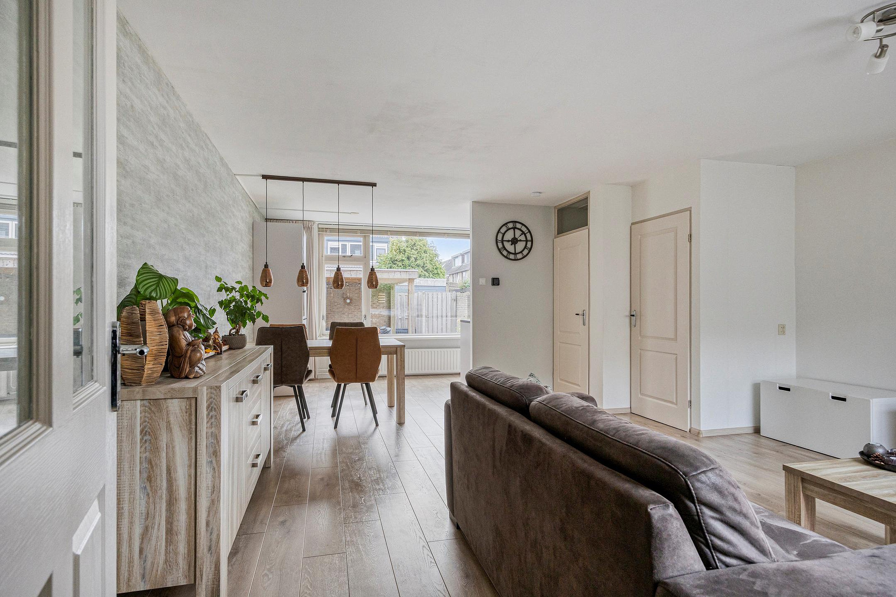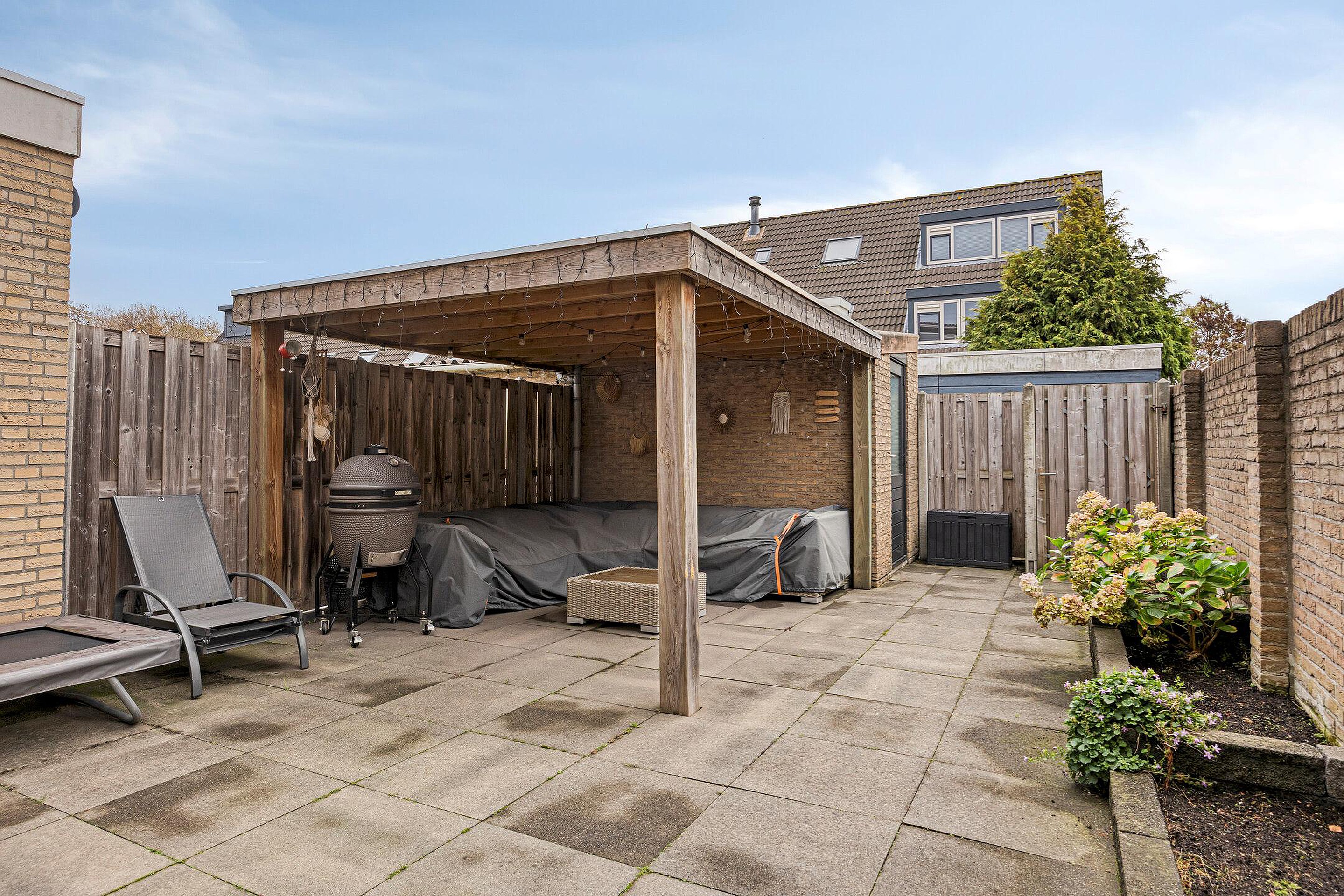 Gelegen in een kindvriendelijke buurt, op loopafstand van het bos, een instapklare eengezinswoning met een ruime woonkamer, luxe halfopen keuken met een loopdeur naar de zonnig gelegen achtertuin op het zuidoosten met elektrische zonwering, overkapping, vrijstaande stenen berging en achterom. De 1e verdieping heeft 3 ruime slaapkamers en een moderne badkamer. De 2e verdieping heeft een ruime overloop en toegang via een loopdeur naar het zonnig gelegen dakterras op het noordwesten.