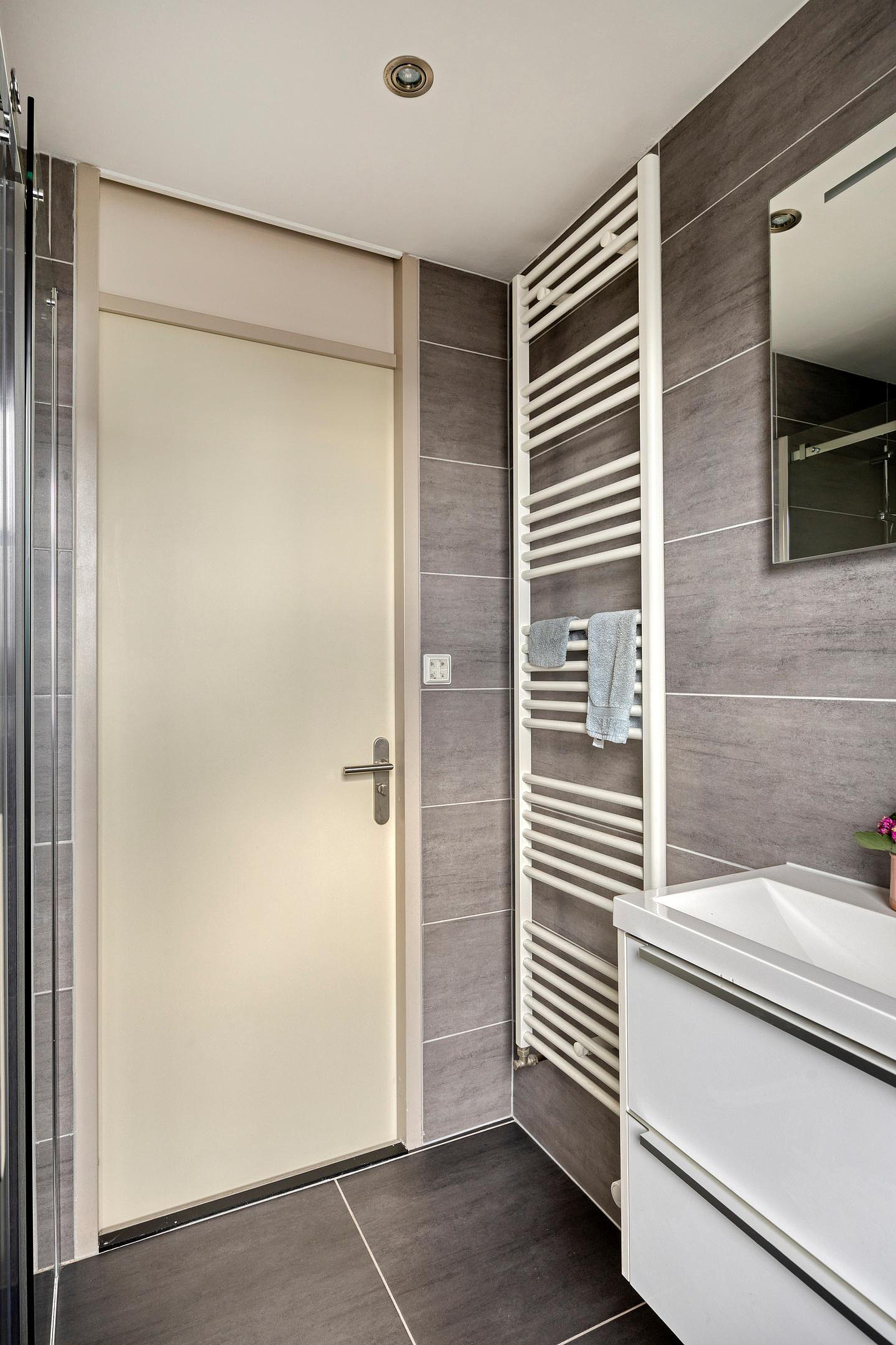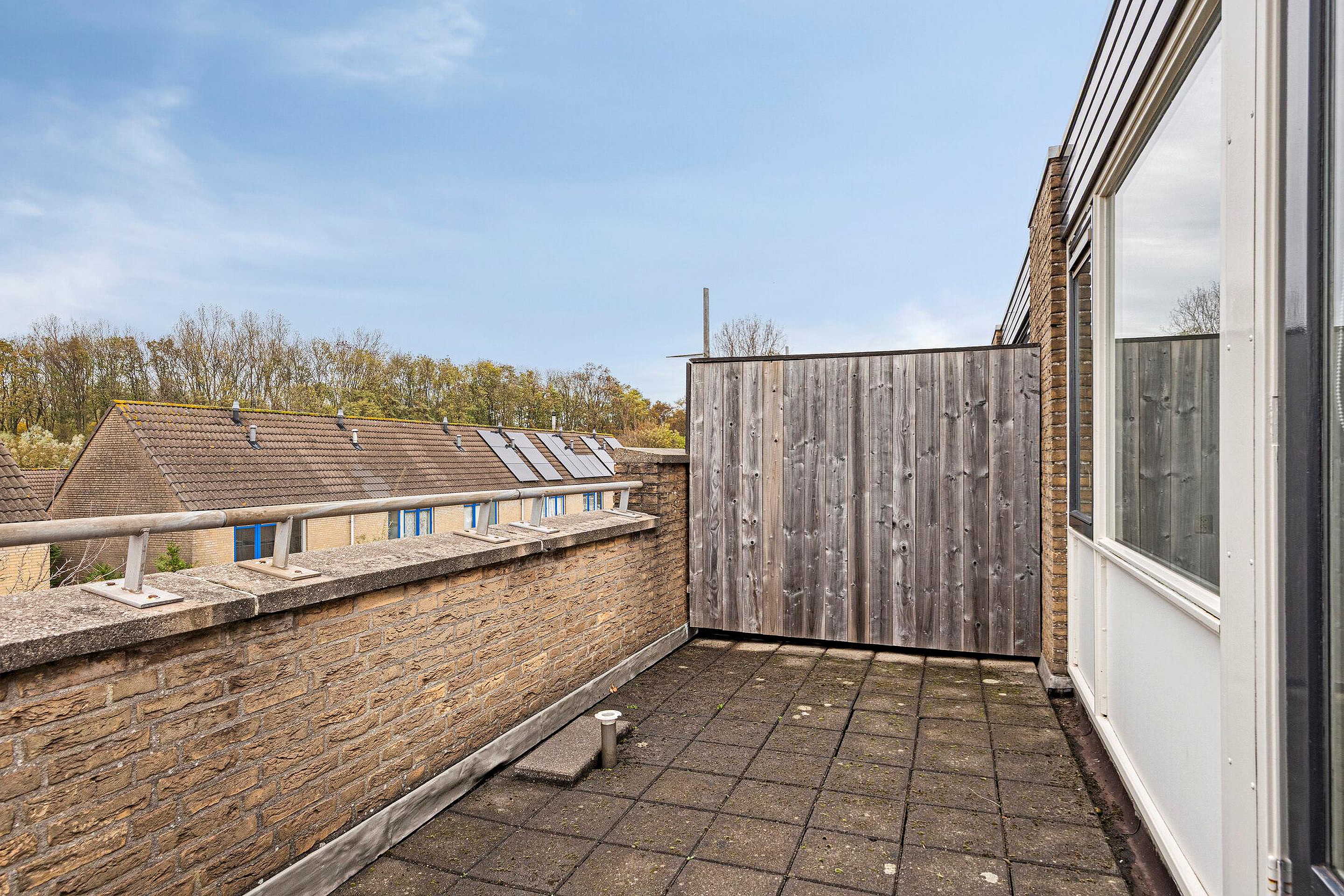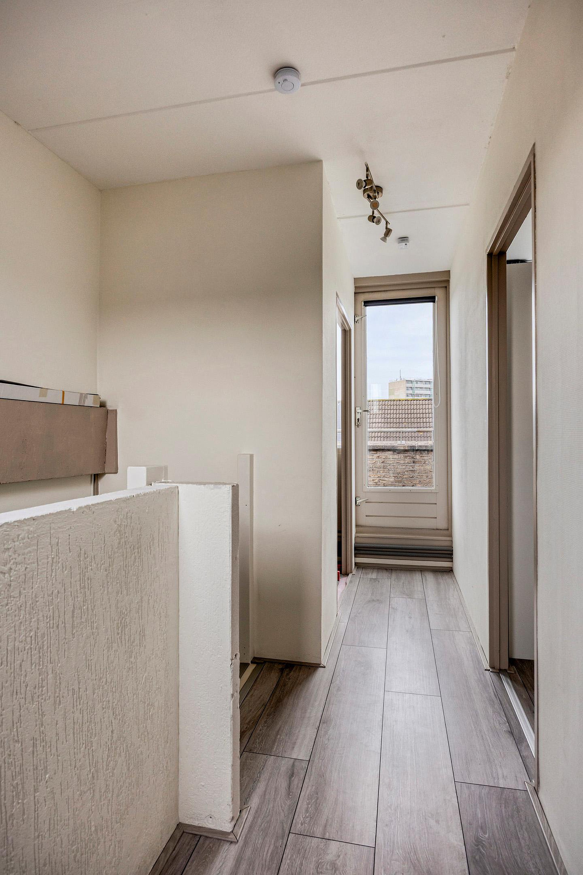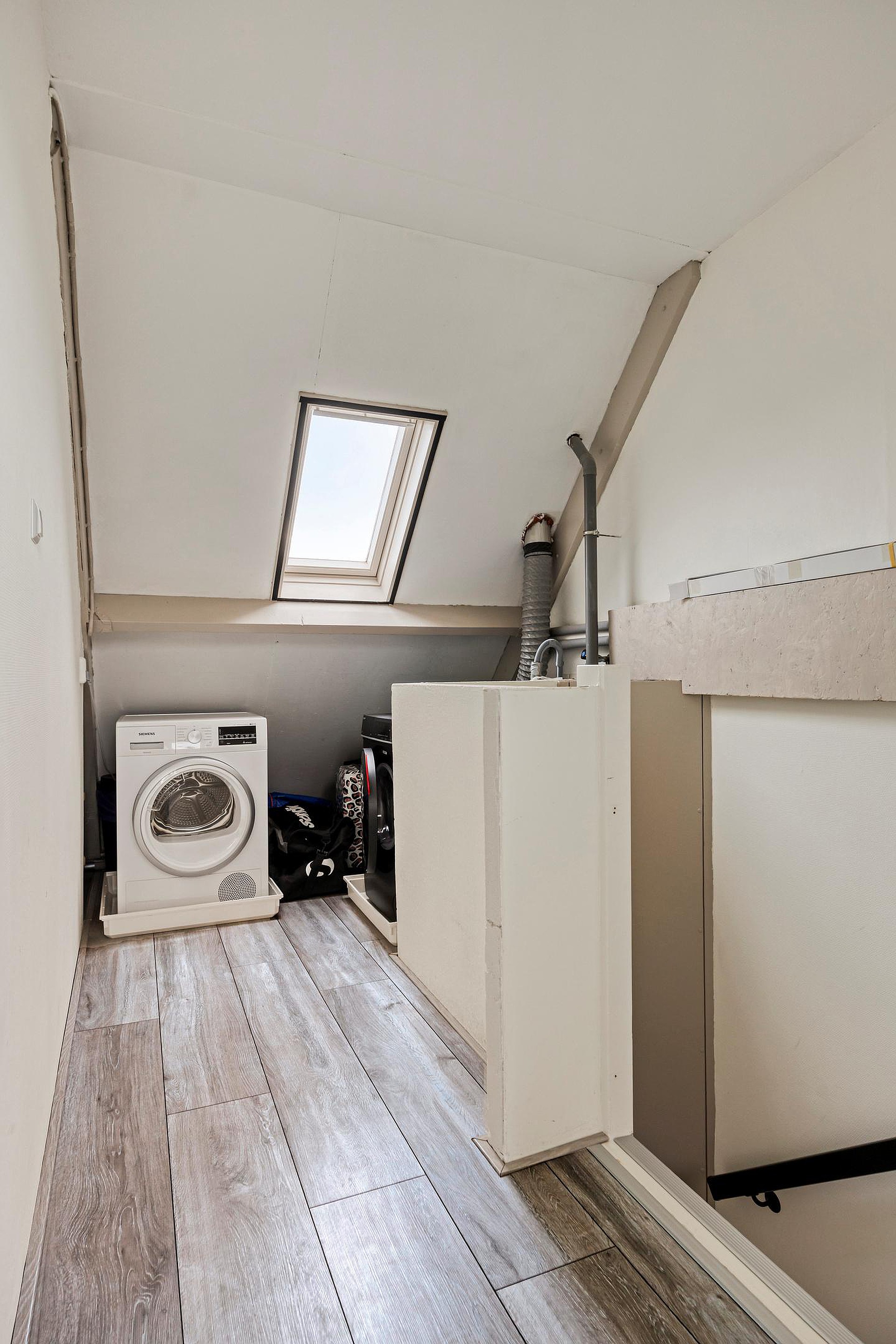 2e verdieping: ruime overloop met opstelplaats wasmachine/droger, aparte berging voor opstelplaats CV-ketel en via een loopdeur is er toegang tot het zonnig gelegen dakterras op het noordwesten en een ruime slaapkamer met bergruimte in de knieschotten.
