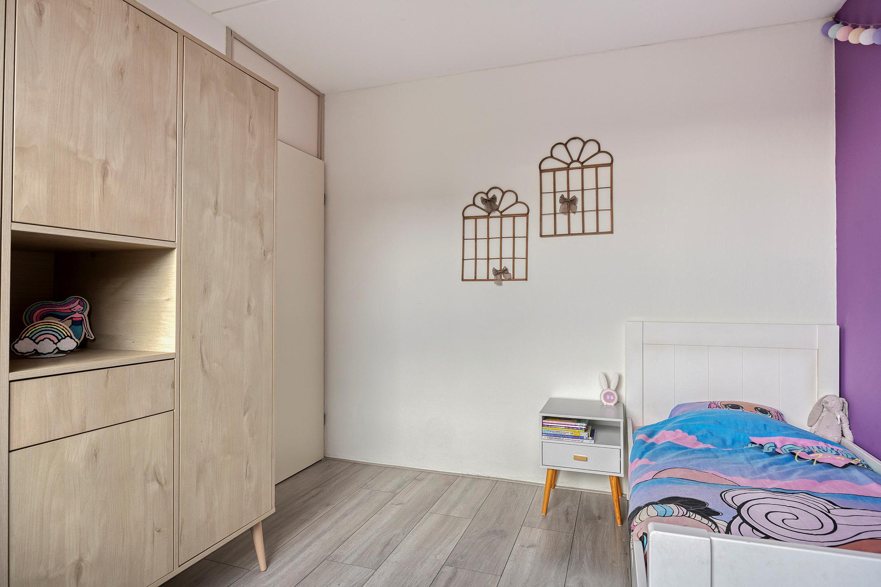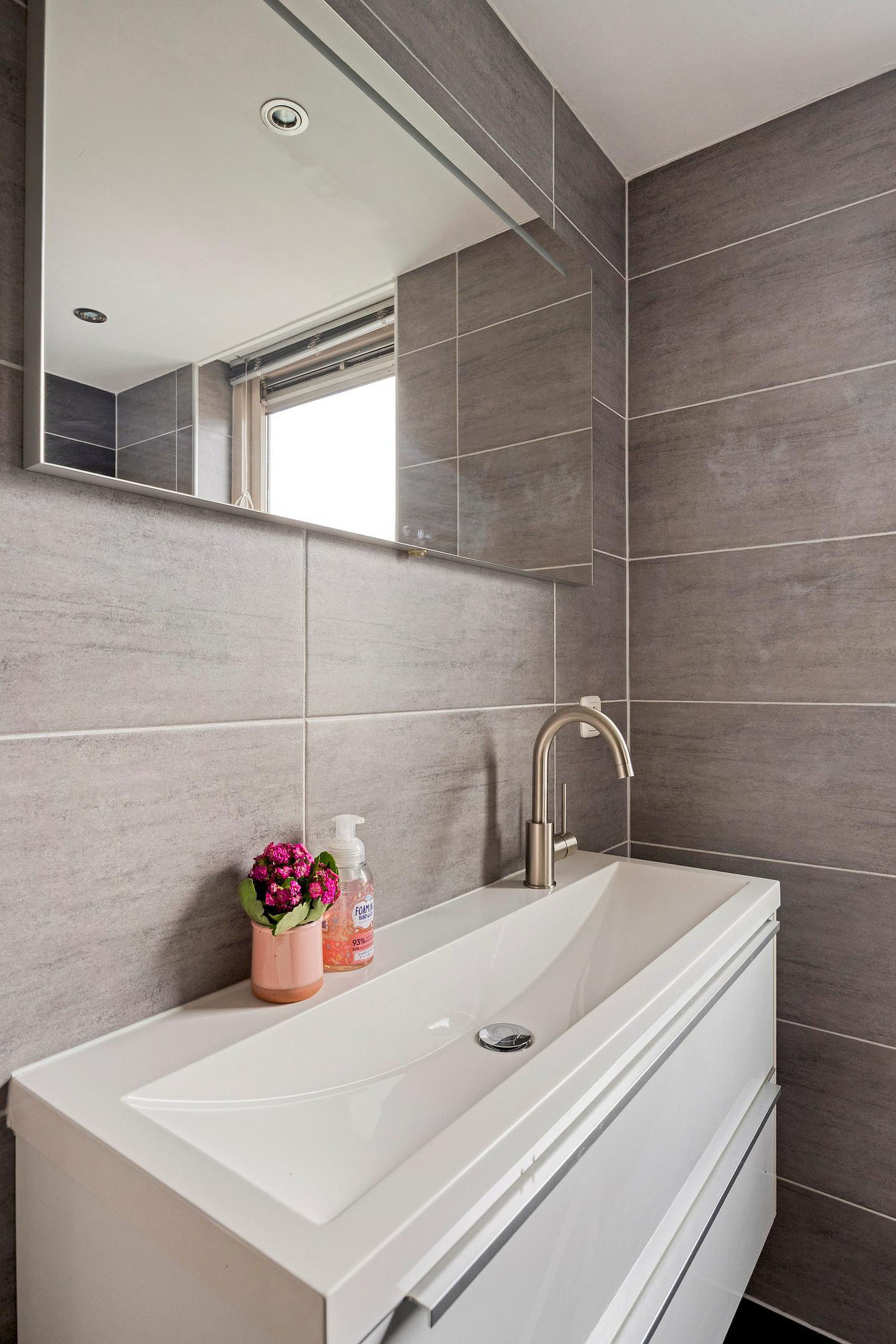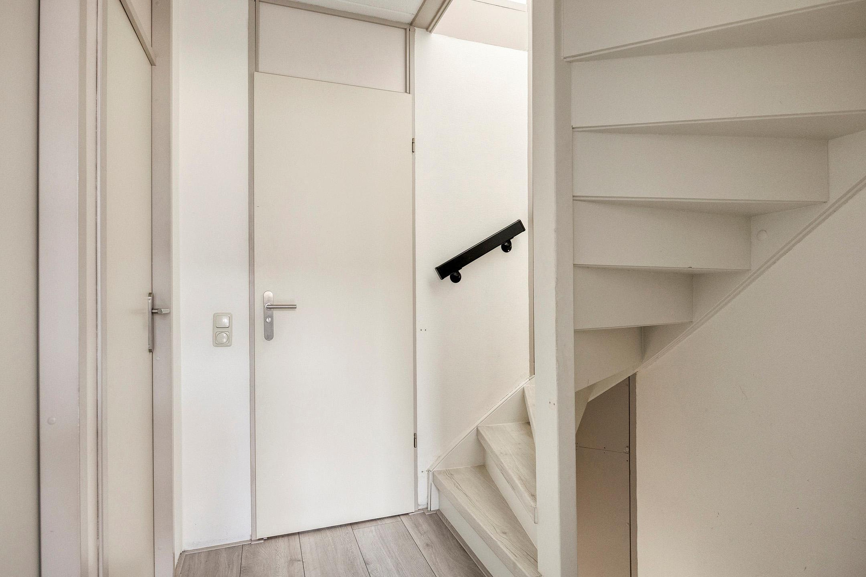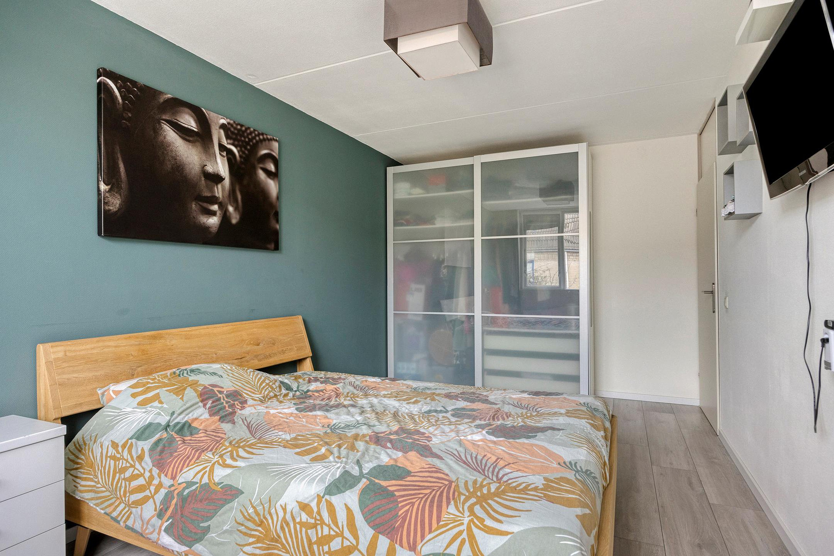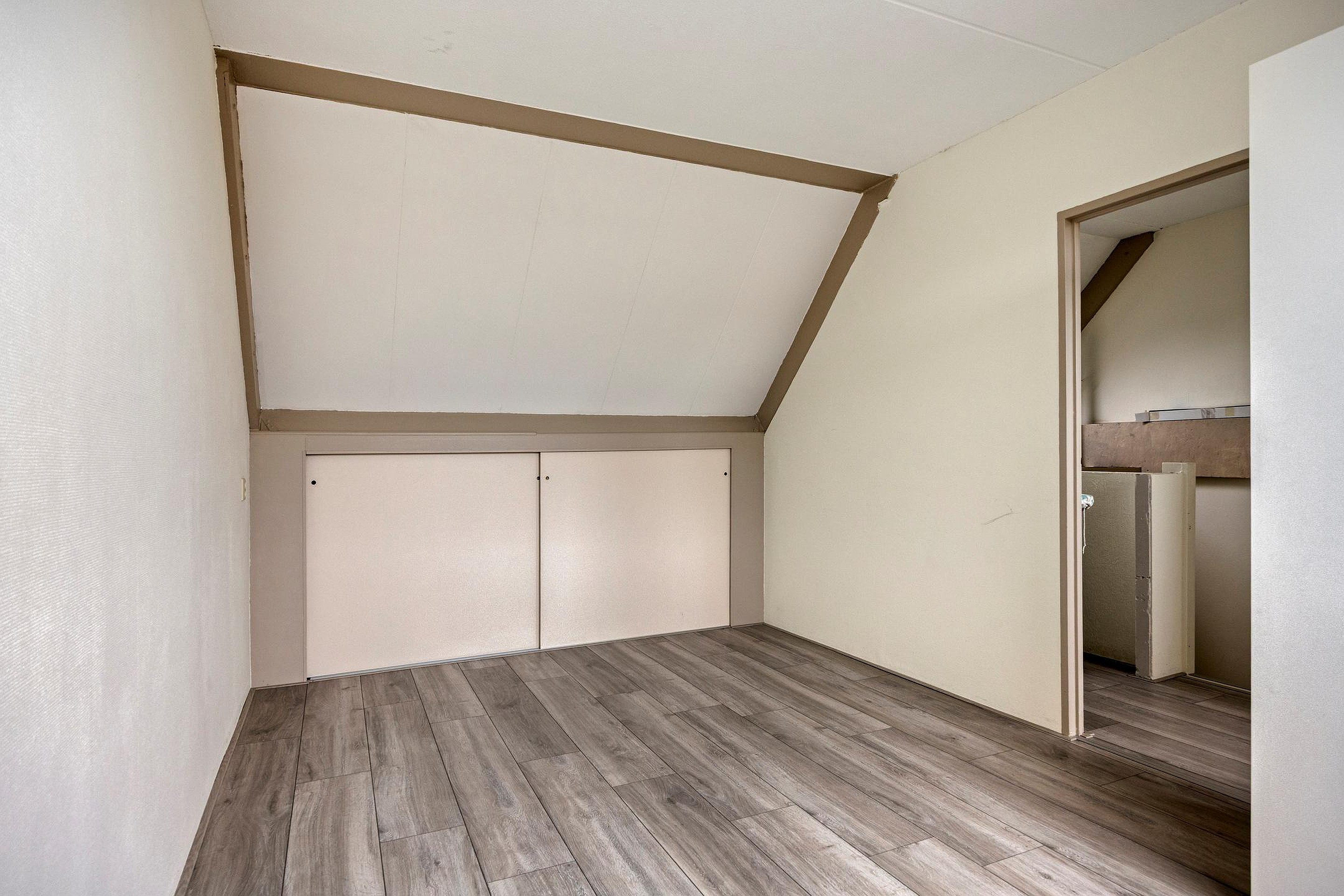 2e verdieping: ruime overloop met opstelplaats wasmachine/droger, aparte berging voor opstelplaats CV-ketel en via een loopdeur is er toegang tot het zonnig gelegen dakterras op het noordwesten en een ruime slaapkamer met bergruimte in de knieschotten.