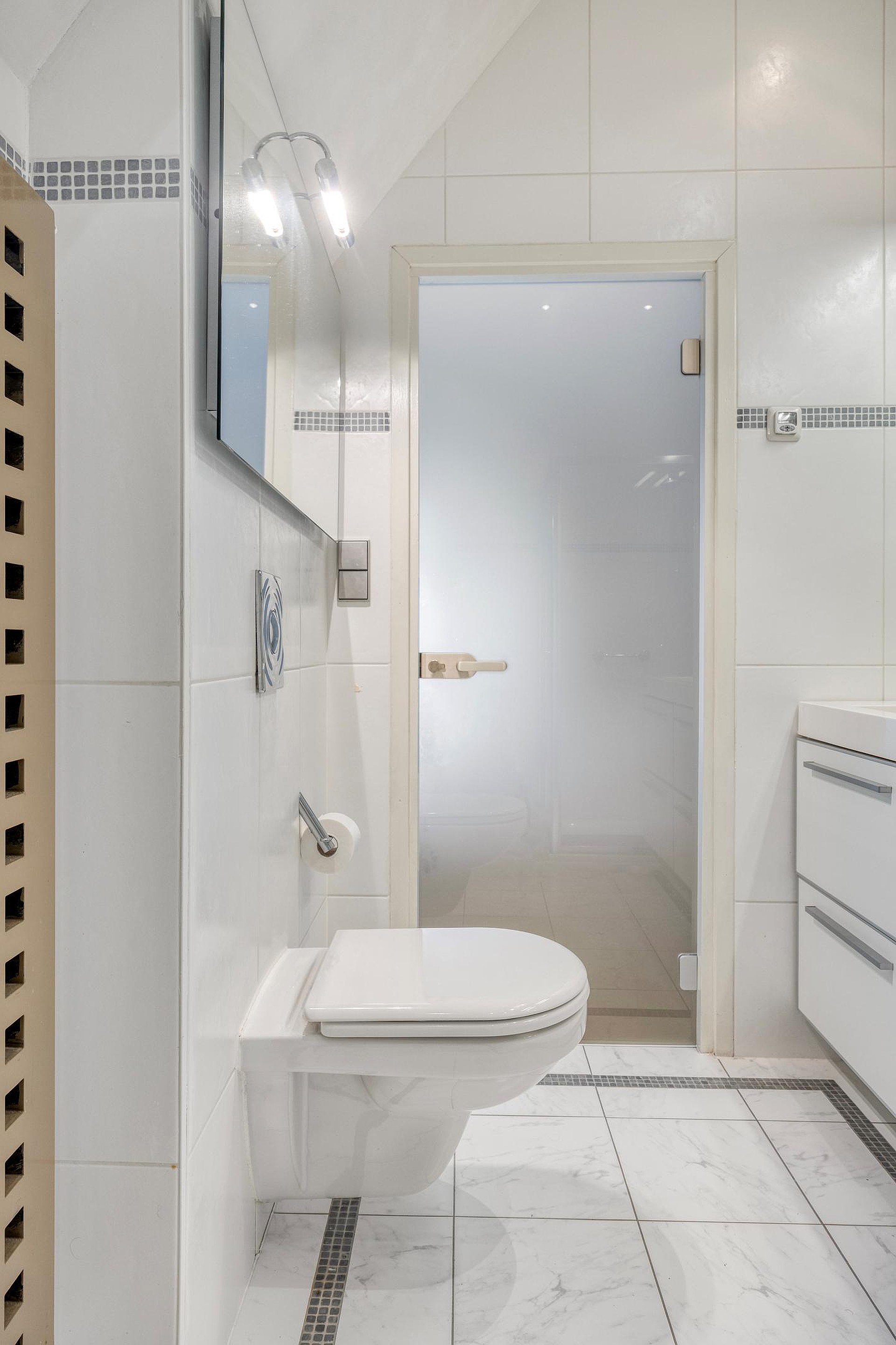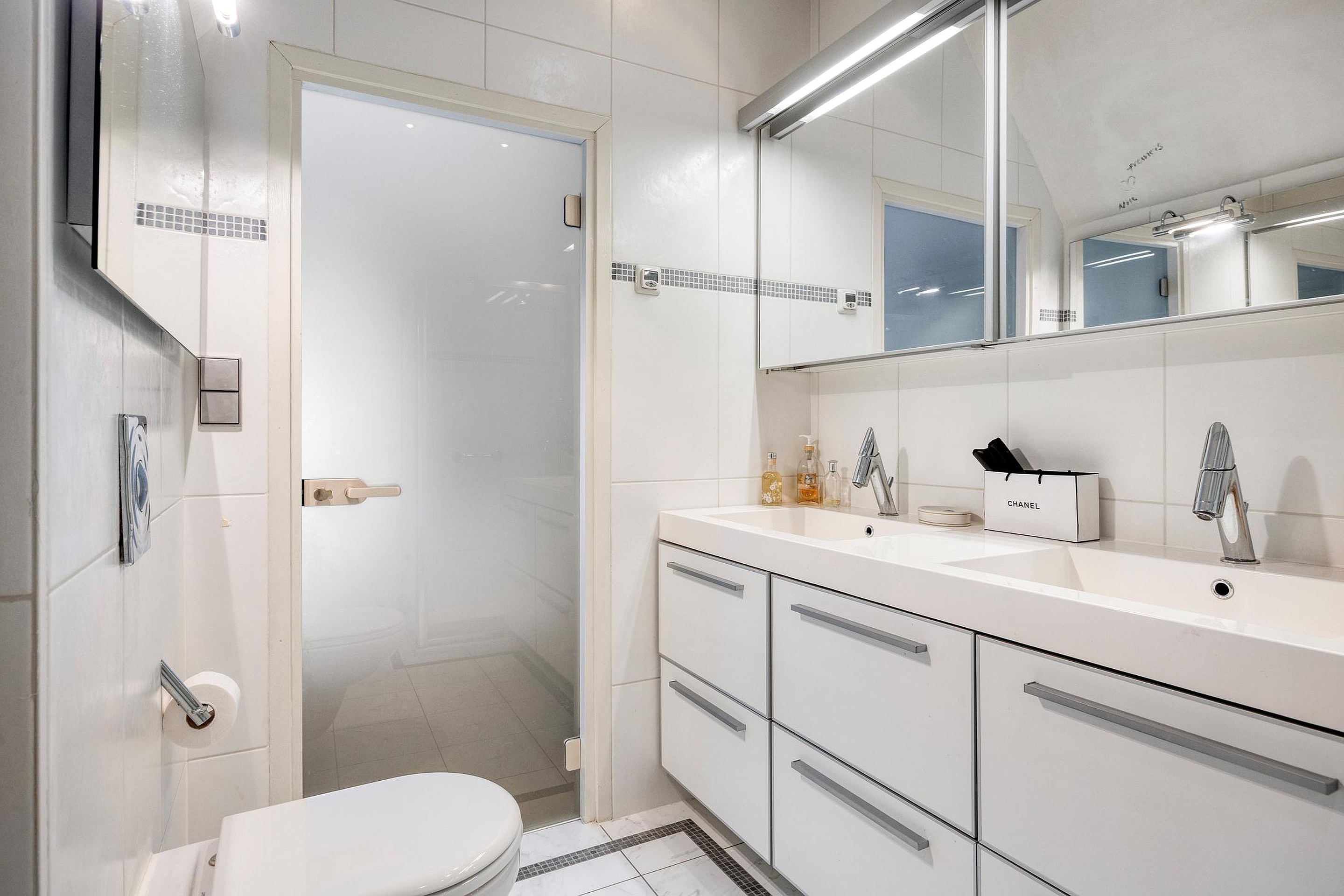 1e verdieping: overloop, 3 ruime slaapkamers waarvan 2 beide toegang naar de badkamer met vloerwarming, inloopdouche, wastafelmeubel en zwevend 2e toilet.