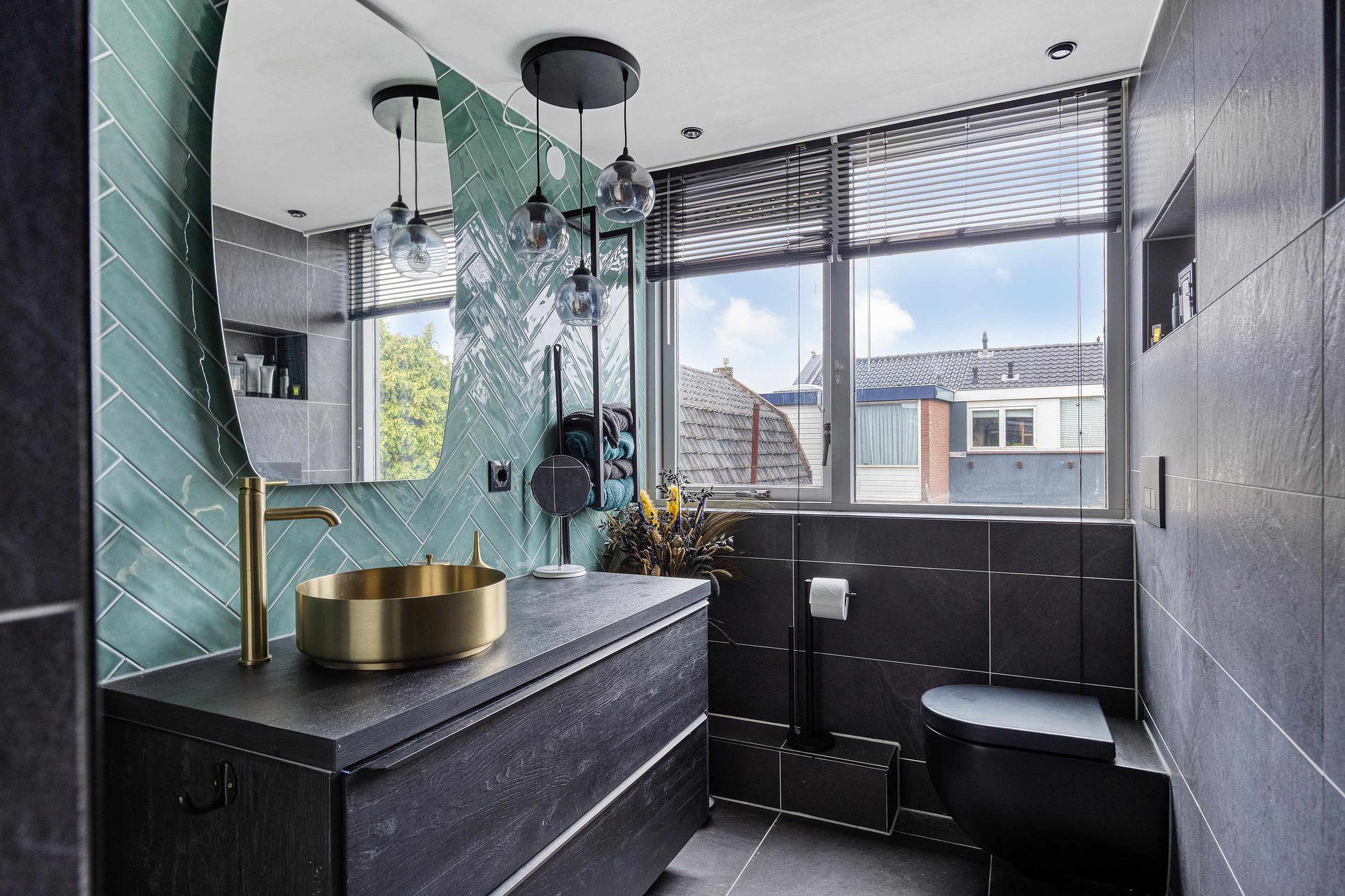 1e verdieping: overloop met toegang naar bergvliering en CV-ketel, 3 slaapkamers en een luxe badkamer met een wastafelmeubel, 2e toilet en inloopdouche.