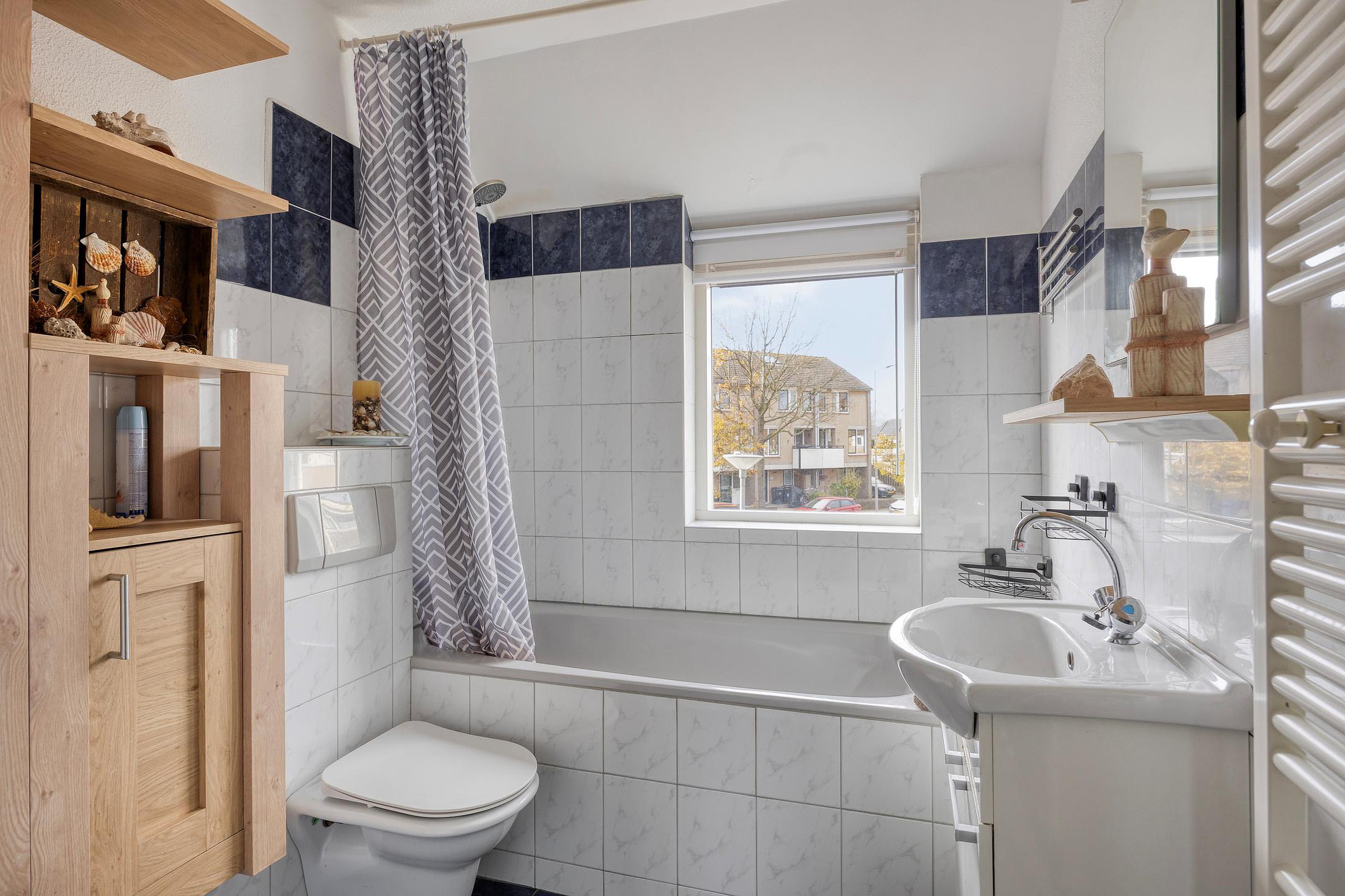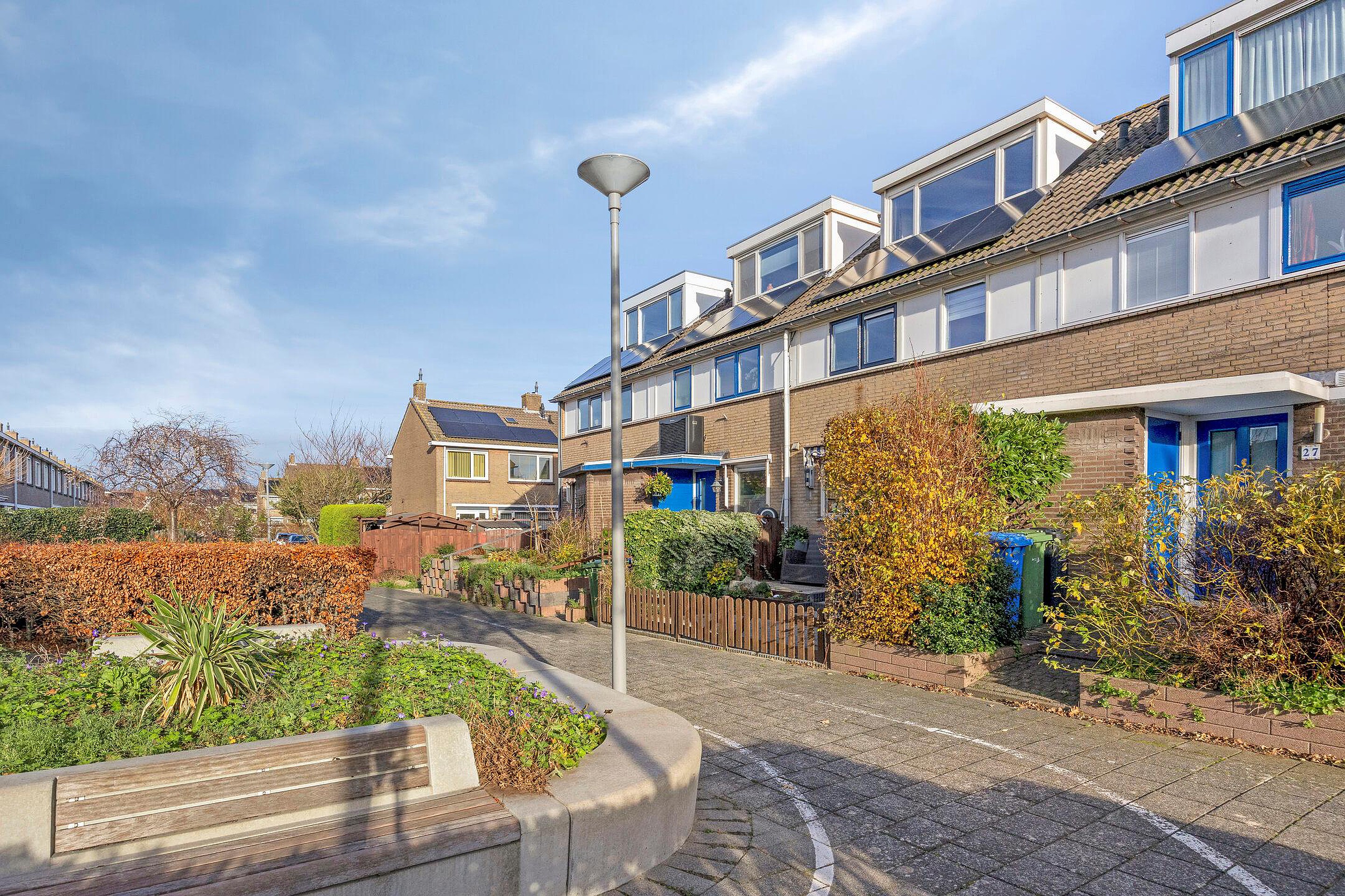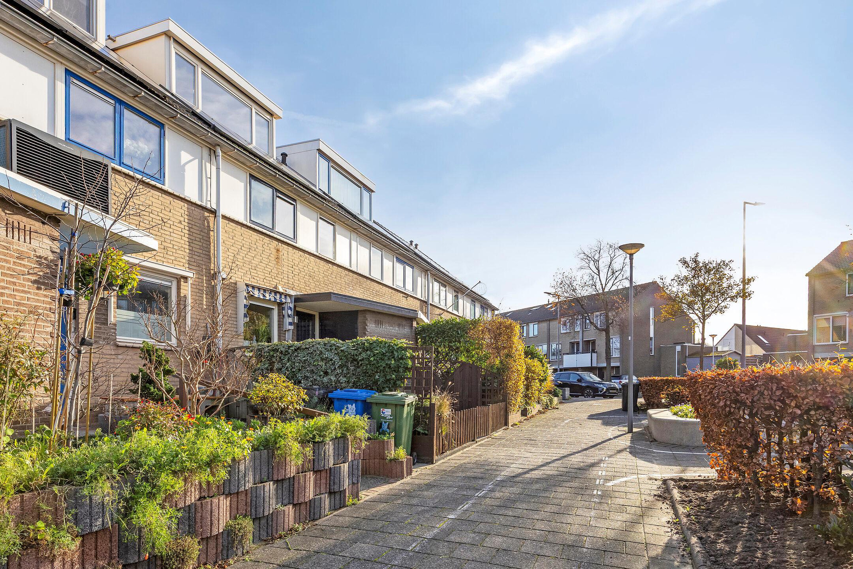 Gelegen in een kindvriendelijke omgeving aan een leuk speelveldje, een ruime 4 kamer eengezinswoning met een ruime woonkamer met uitbouw en schuifpui naar de 13,5 meter diepe tuin op het oosten met ochtendzon en een vrijstaande houten berging met achterom. Aan de voorzijde van de woning tevens een aanpandige berging die in gebruik is als wasruimte. De eerste verdieping heeft 2 ruime slaapkamers (voorheen 3) en een ruime badkamer. De tweede verdieping heeft één ruime slaapkamer met aan beide zijden een dakkapel. Tevens zijn er 8 zonnepanelen.
