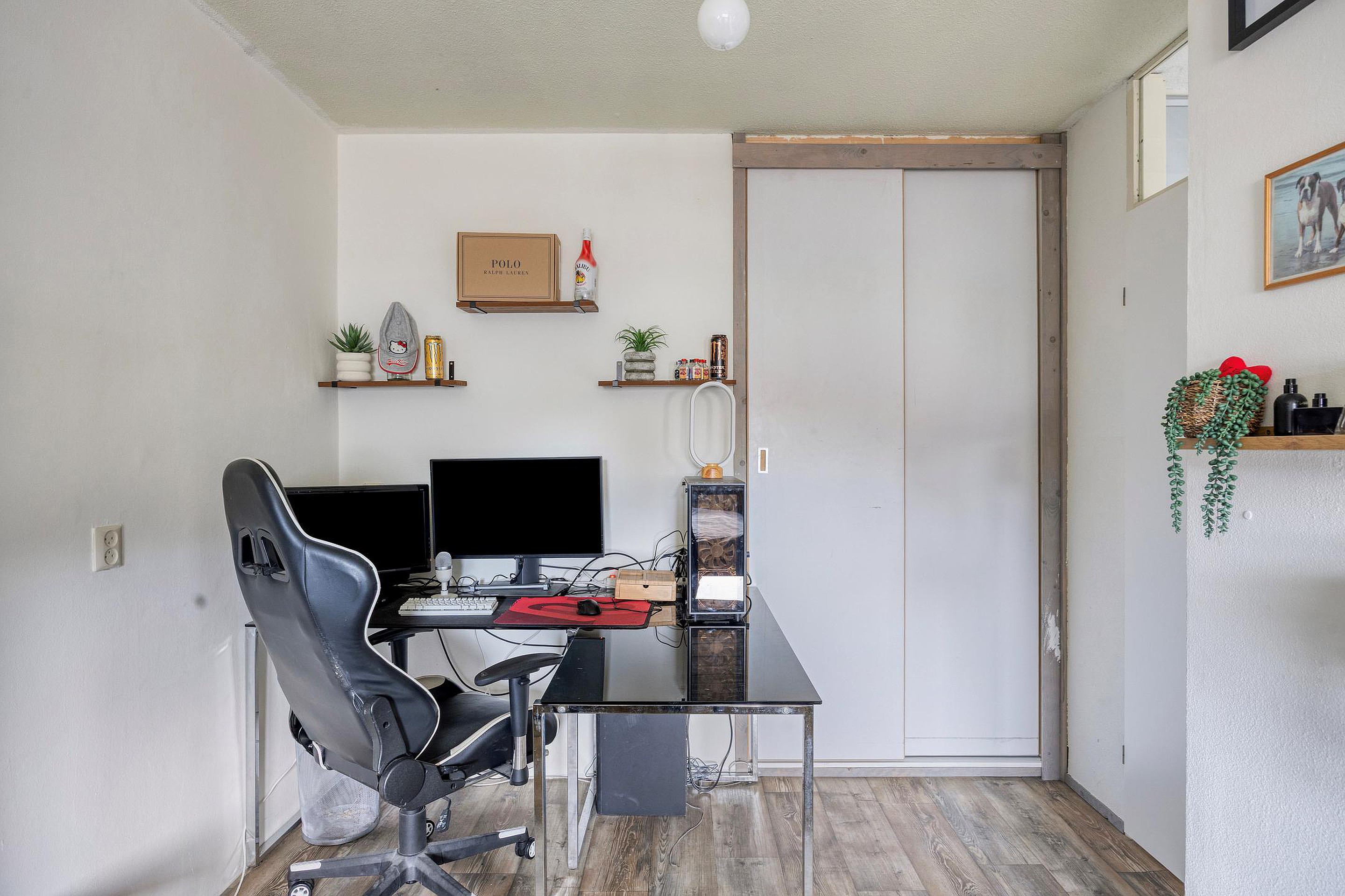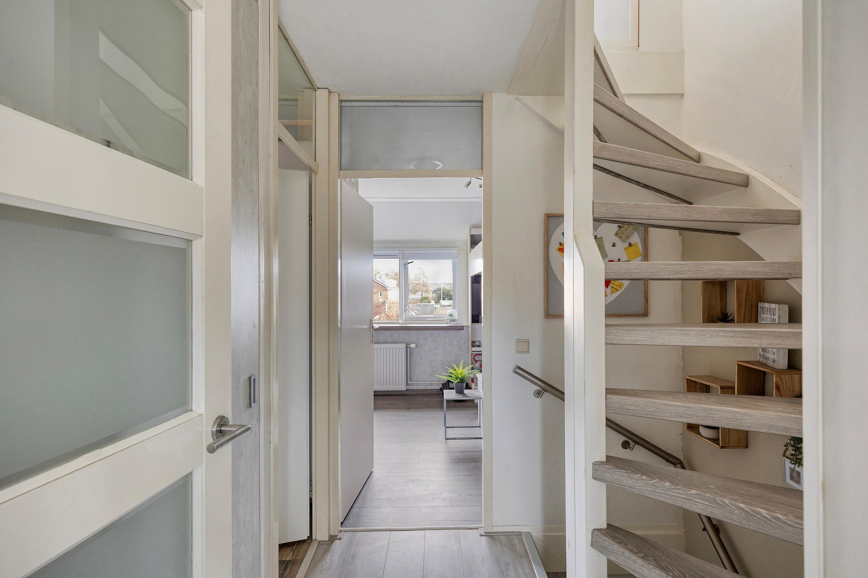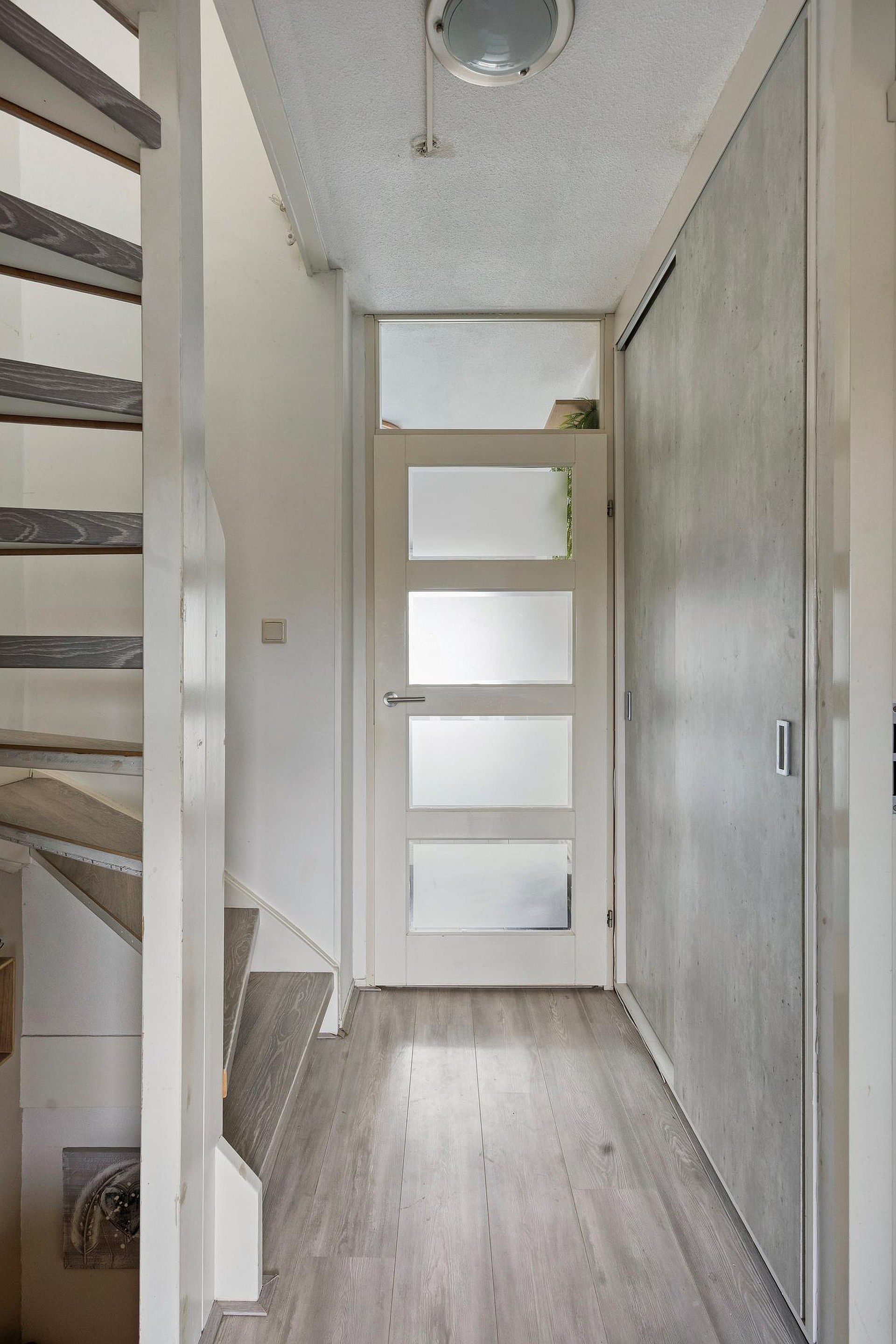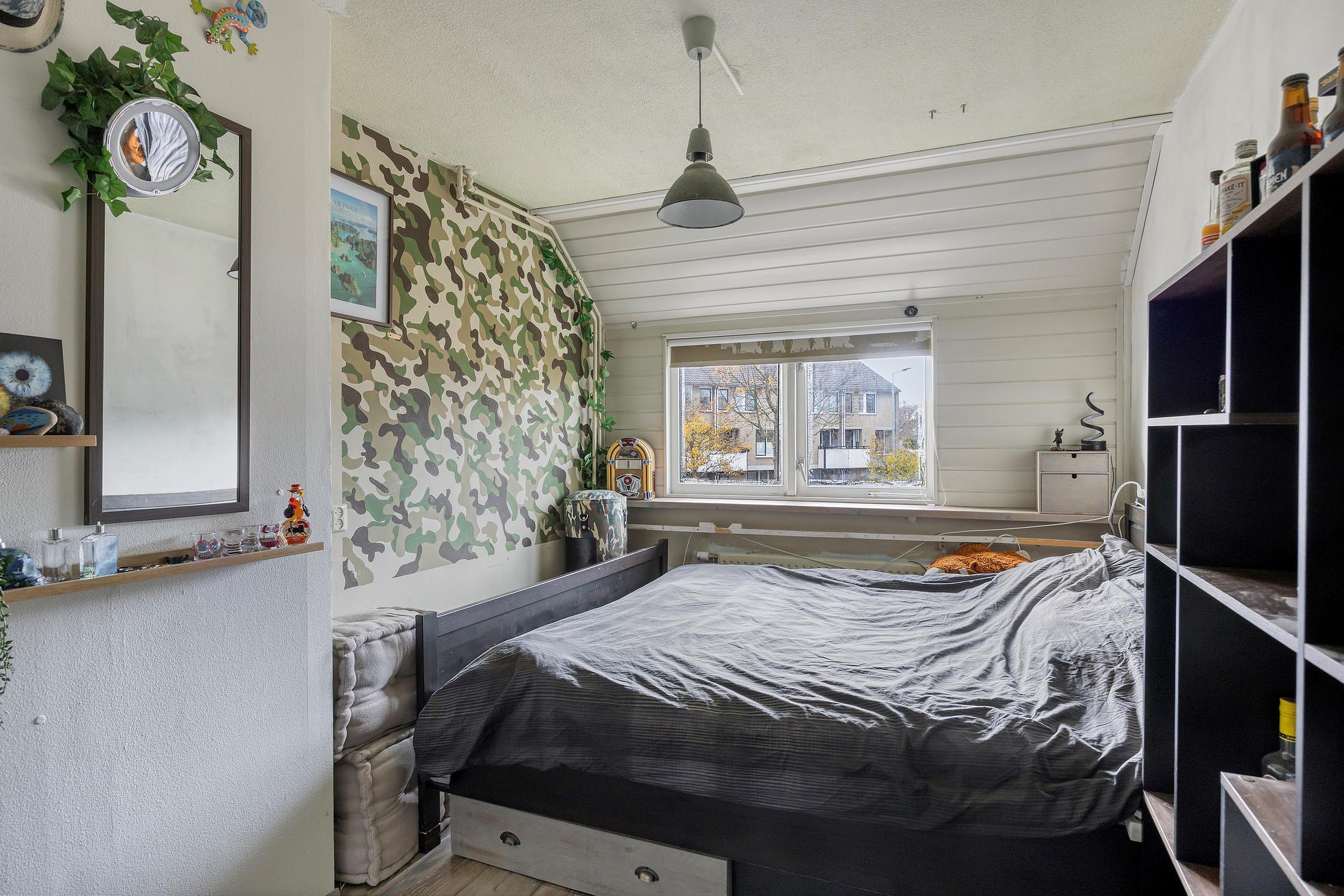 2e verdieping: opstelplaats CV-ketel, 3e slaapkamer met een schuifdeur en veel lichtinval door de dakkapellen aan beide zijden, inbouwkasten en bergruimte achter de knieschot.