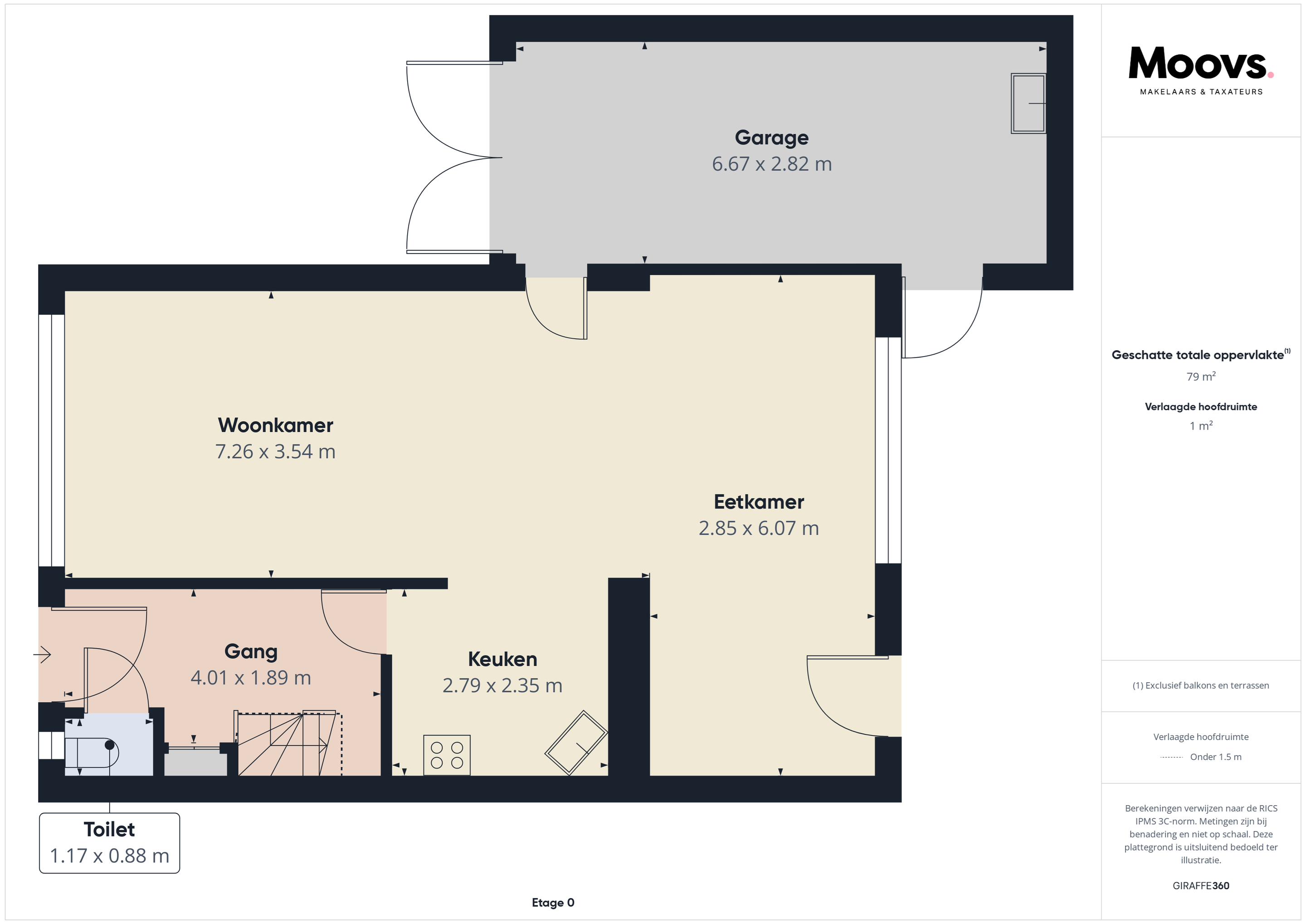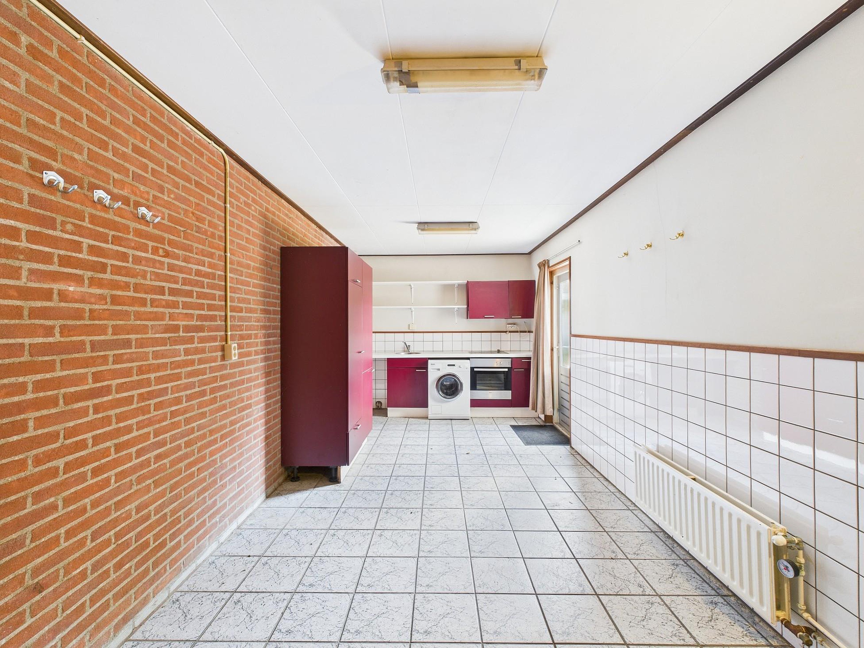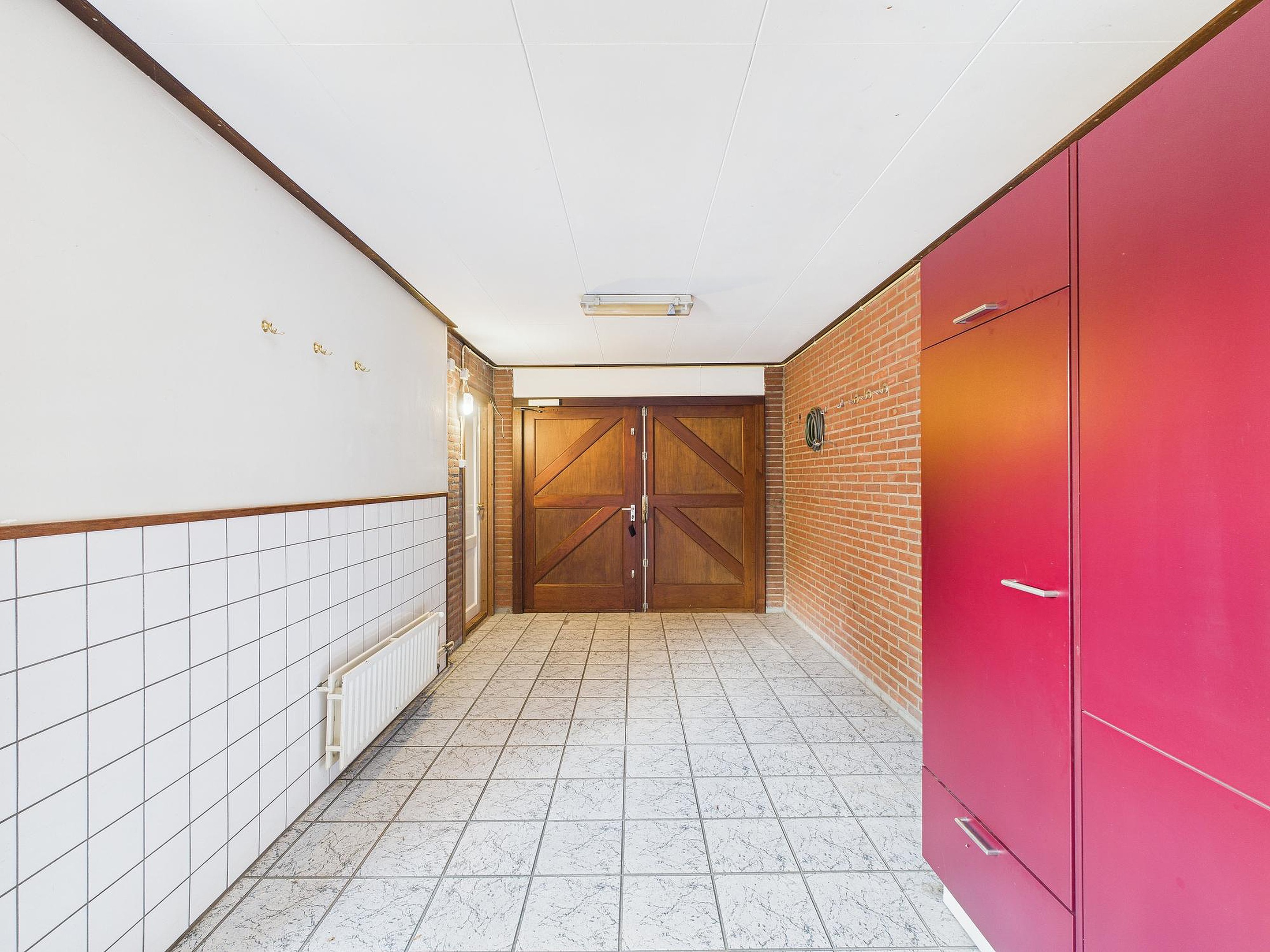 Begane grond Binnenkomst in de entree met toiletruimte, opgaande trap en toegang naar de keuken en woonkamer. De woonkamer is dankzij de uitbouw heerlijk royaal en licht, met volop ruimte voor een zithoek en grote eettafel. Er is een half open keuken aanwezig welke voorzien is van inbouwapparatuur: Vaatwasser, kookplaat, koelkast, oven en afzuigkap. Vanuit de woonkamer is er toegang naar de tuin en naar de garage. De garage is verrassend ruim, volledig betegeld en voorzien van openslaande deuren en een praktisch keukenblok. Vanuit de garage is er eveneens toegang naar de tuin.