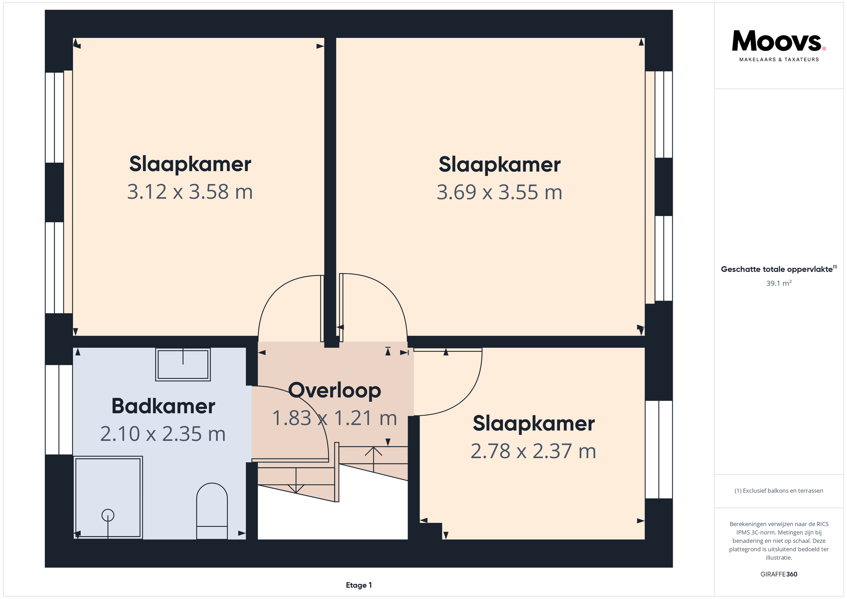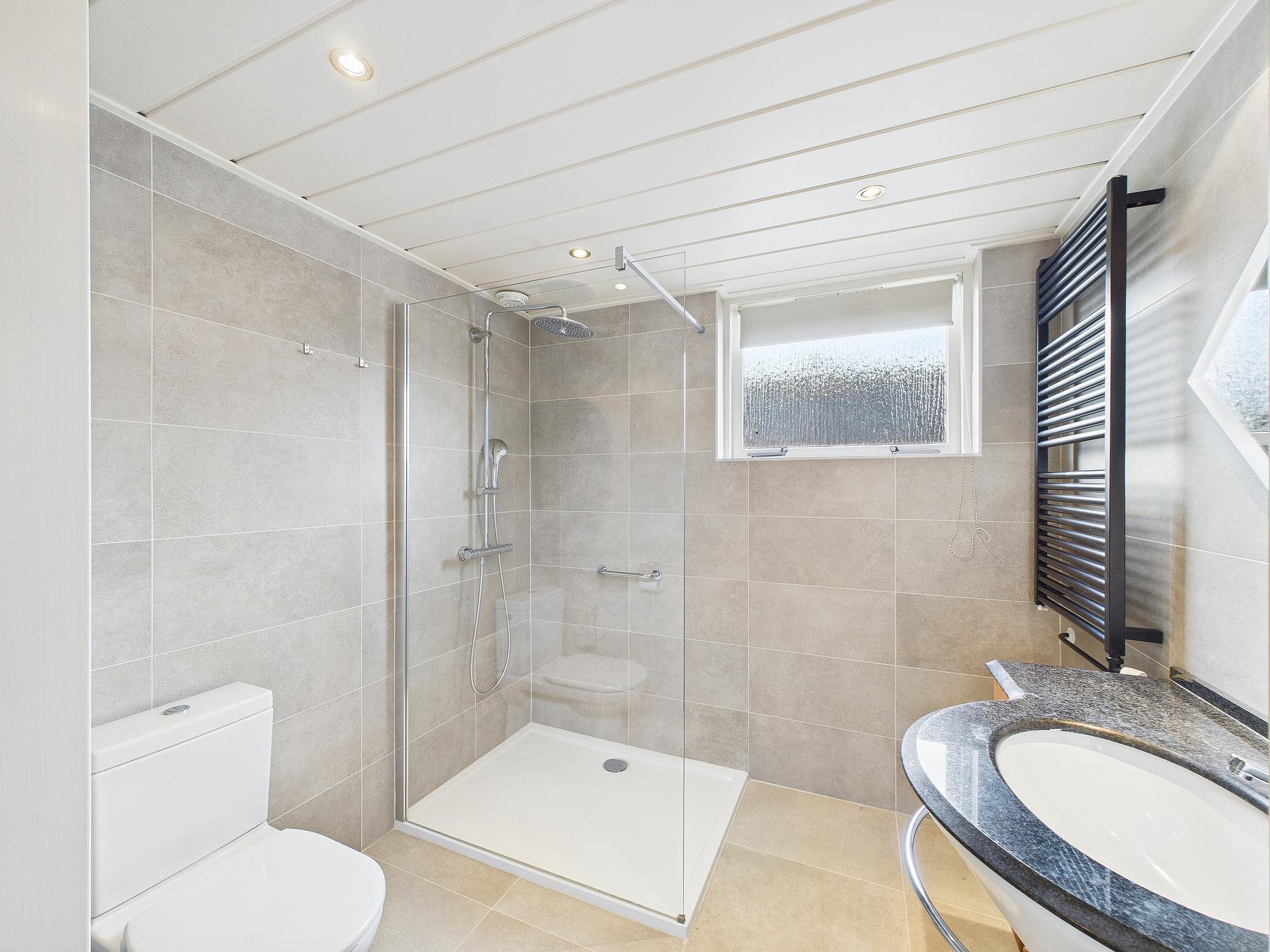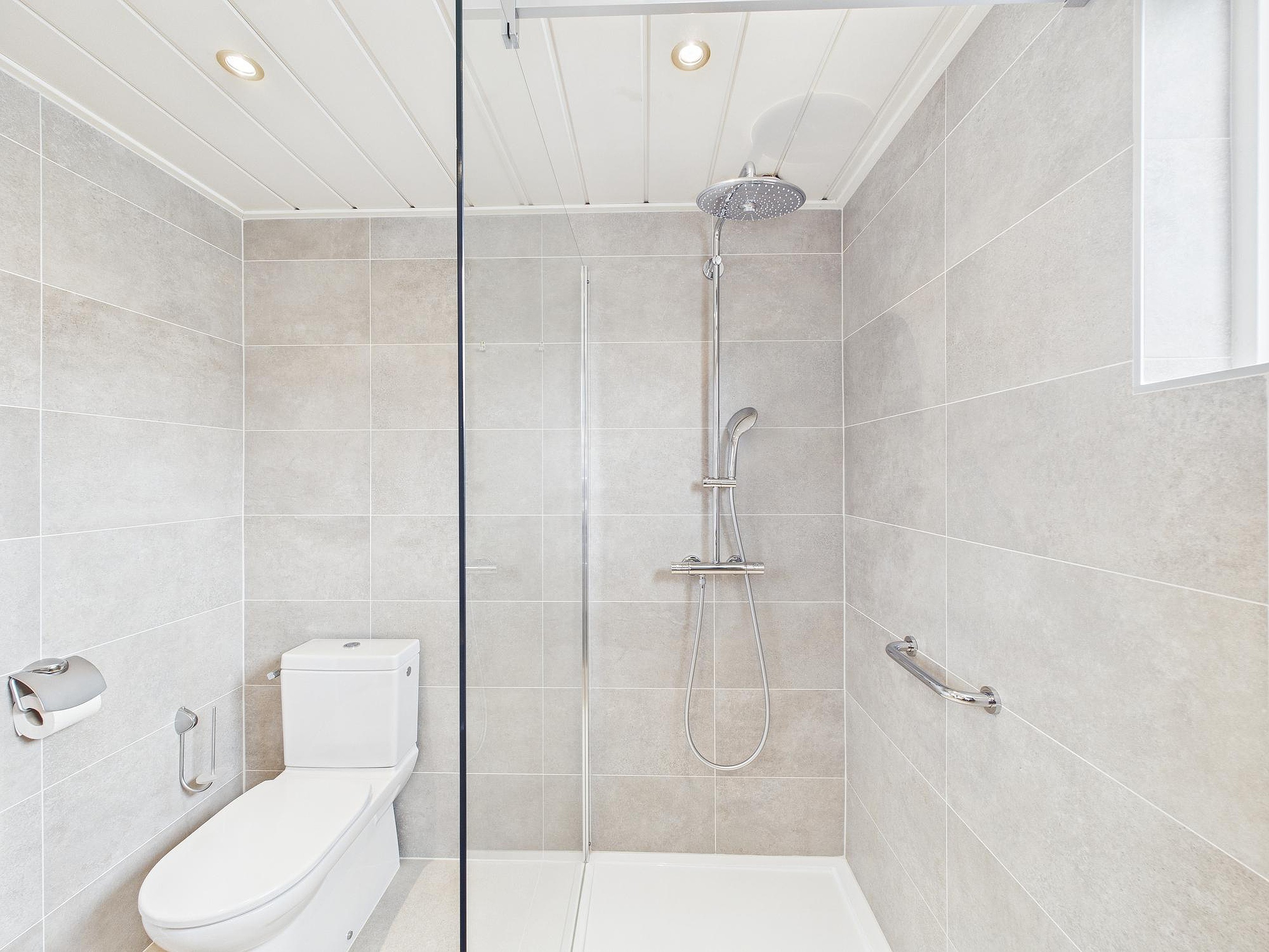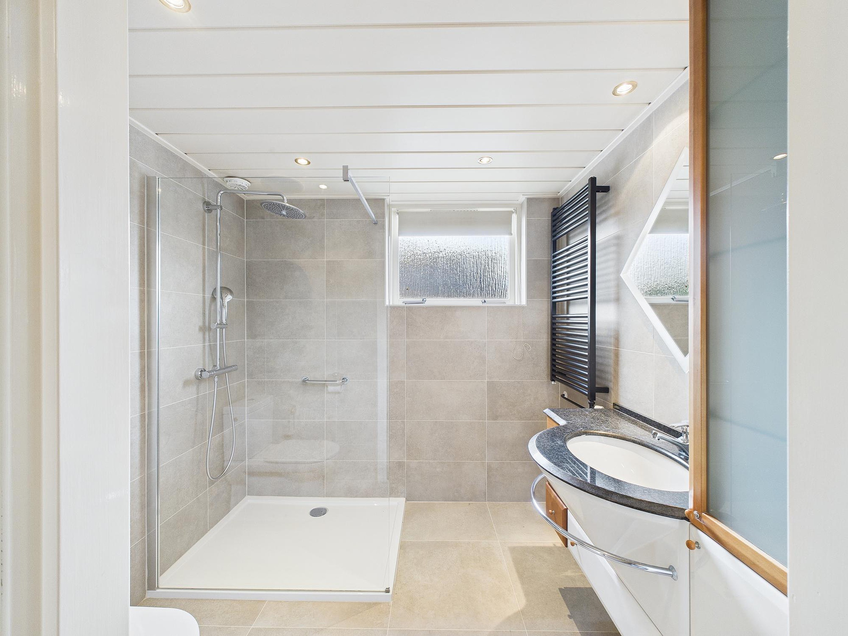 Eerste verdieping Op de eerste verdieping zijn drie slaapkamers en de vernieuwde badkamer aanwezig. De badkamer is modern afgewerkt en beschikt over een hangtoilet, inloopdouche en wastafelmeubel. Via een vaste trap bereik je de tweede verdieping.