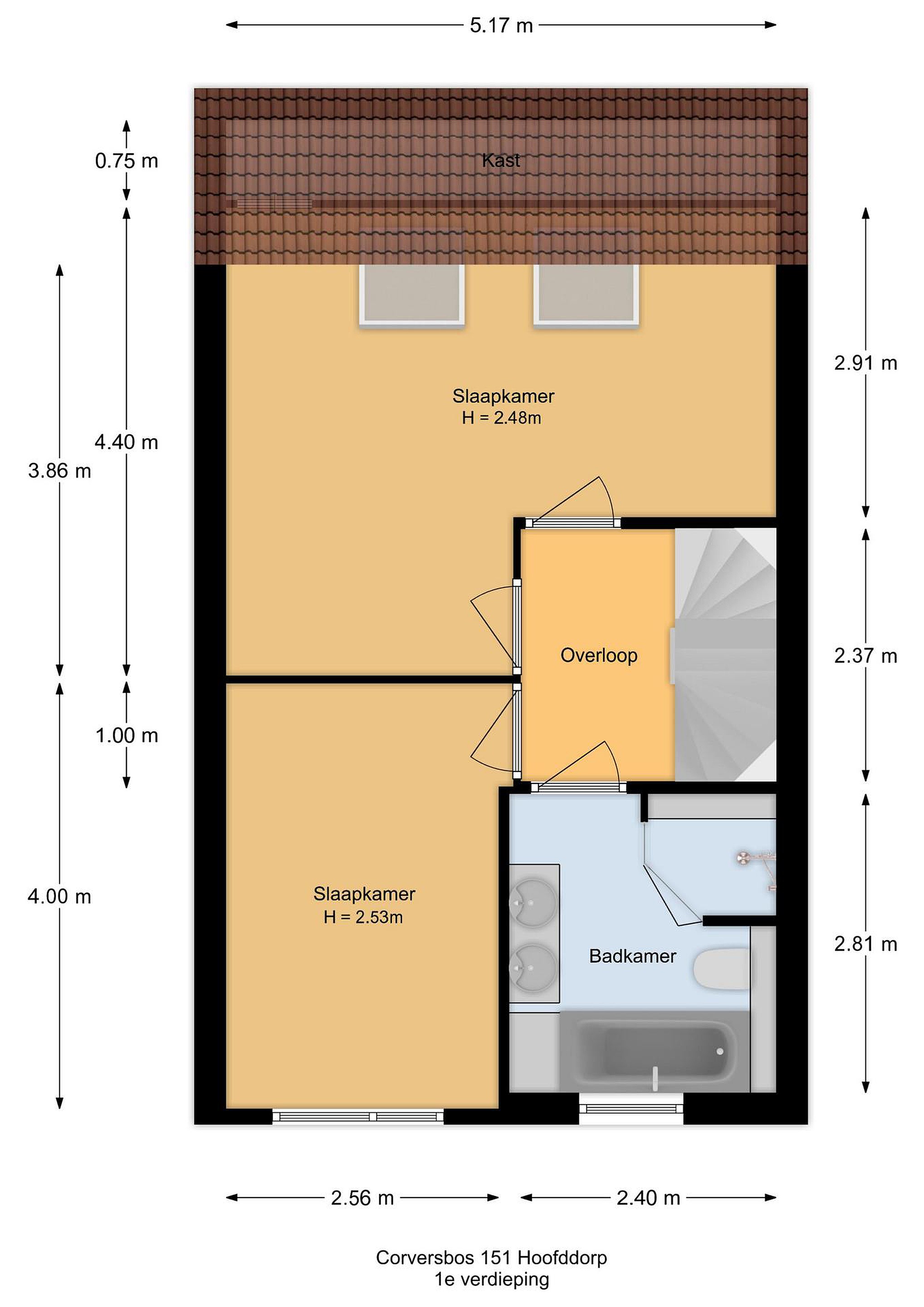 De eerste verdieping biedt twee ruime slaapkamers(voorheen 3!), waaronder de master