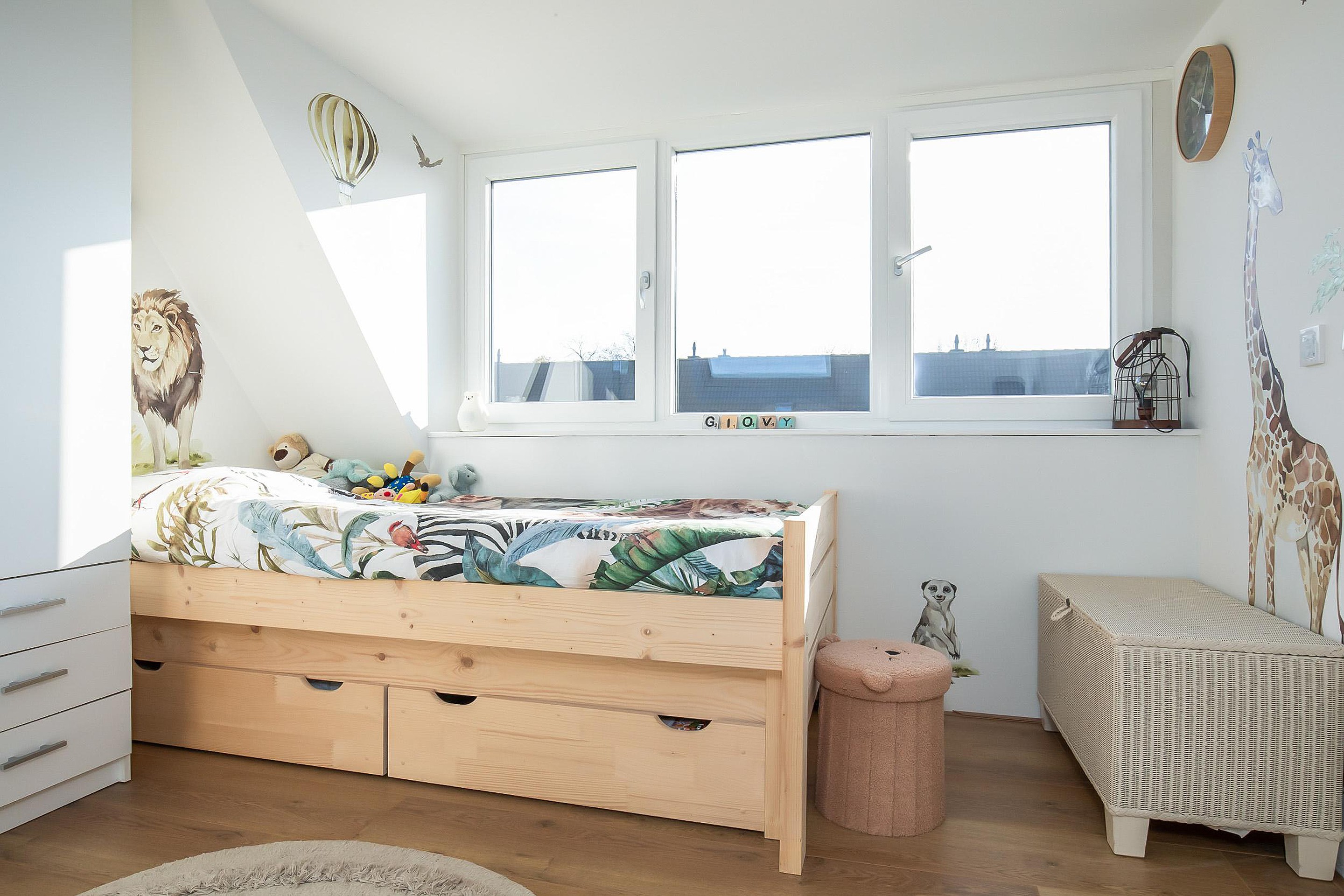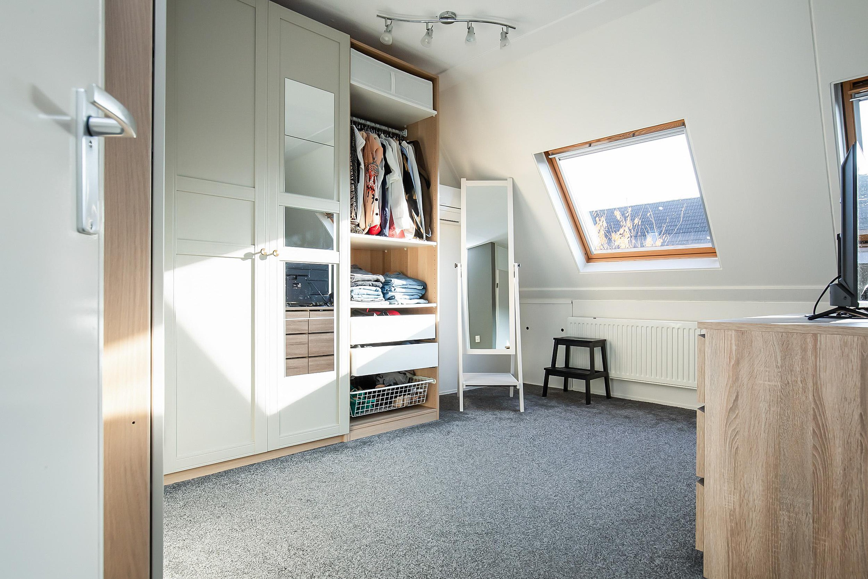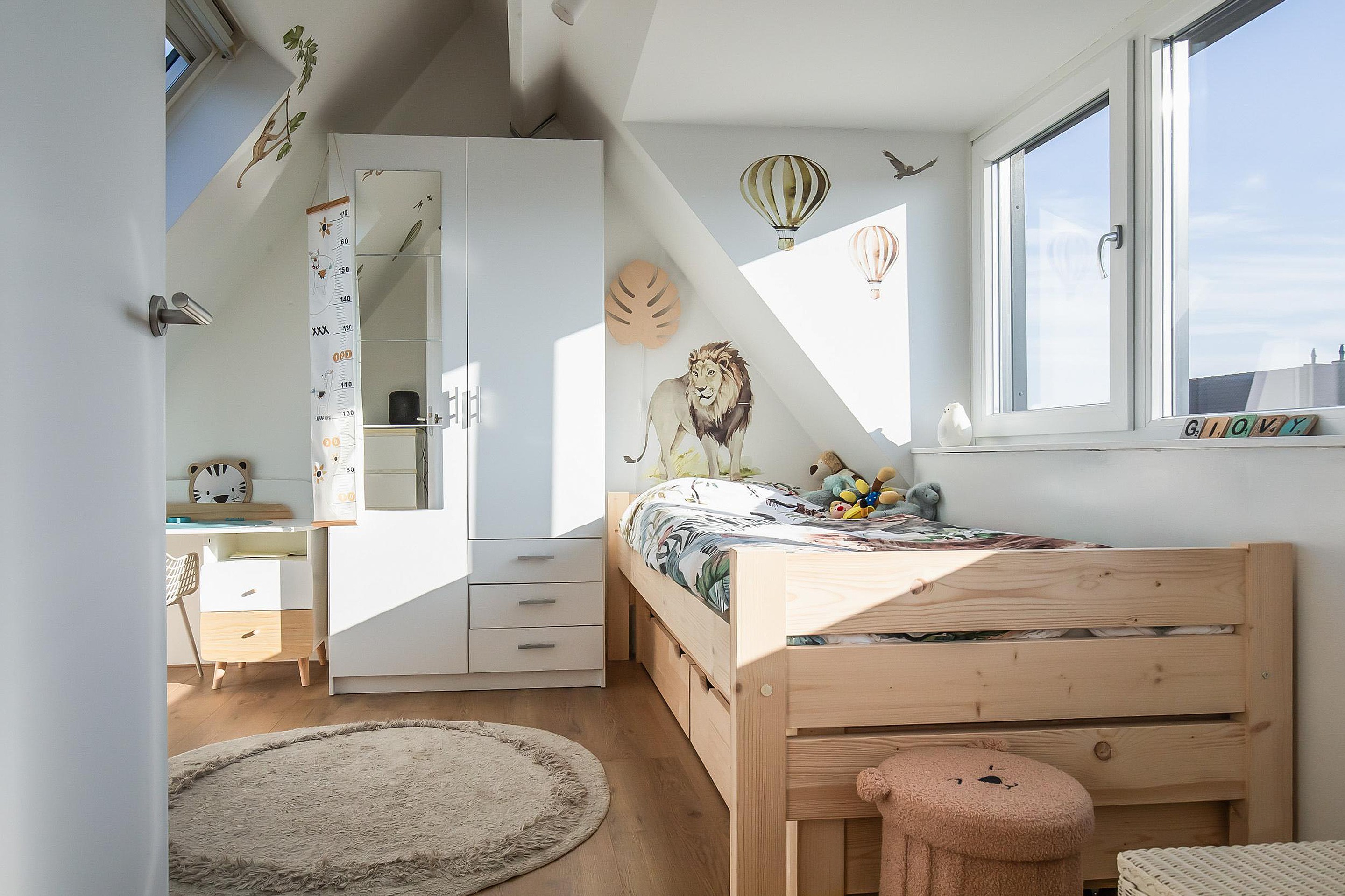 Daarnaast bevindt zich hier de derde slaapkamer, uitgerust met een dakkapel aan de