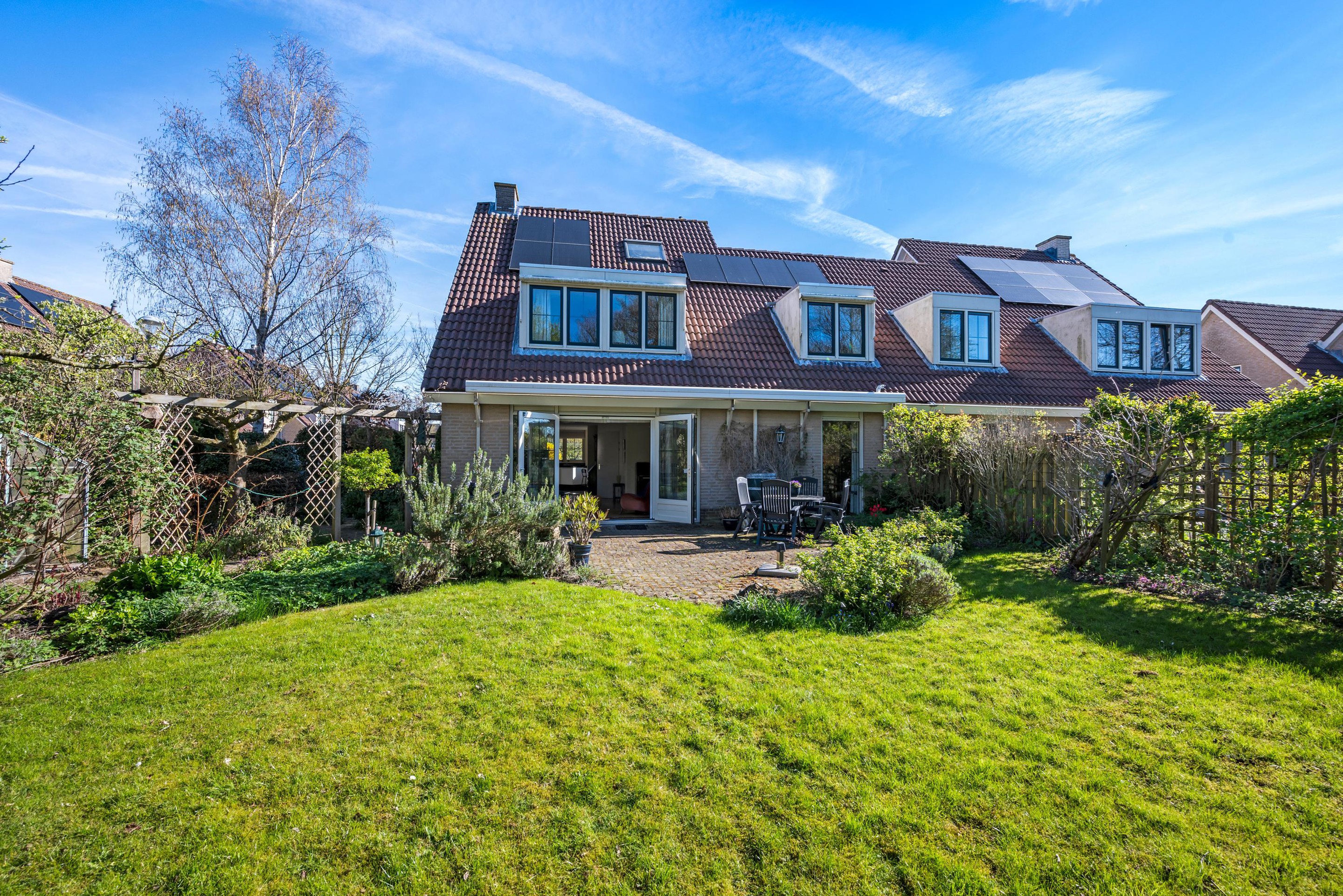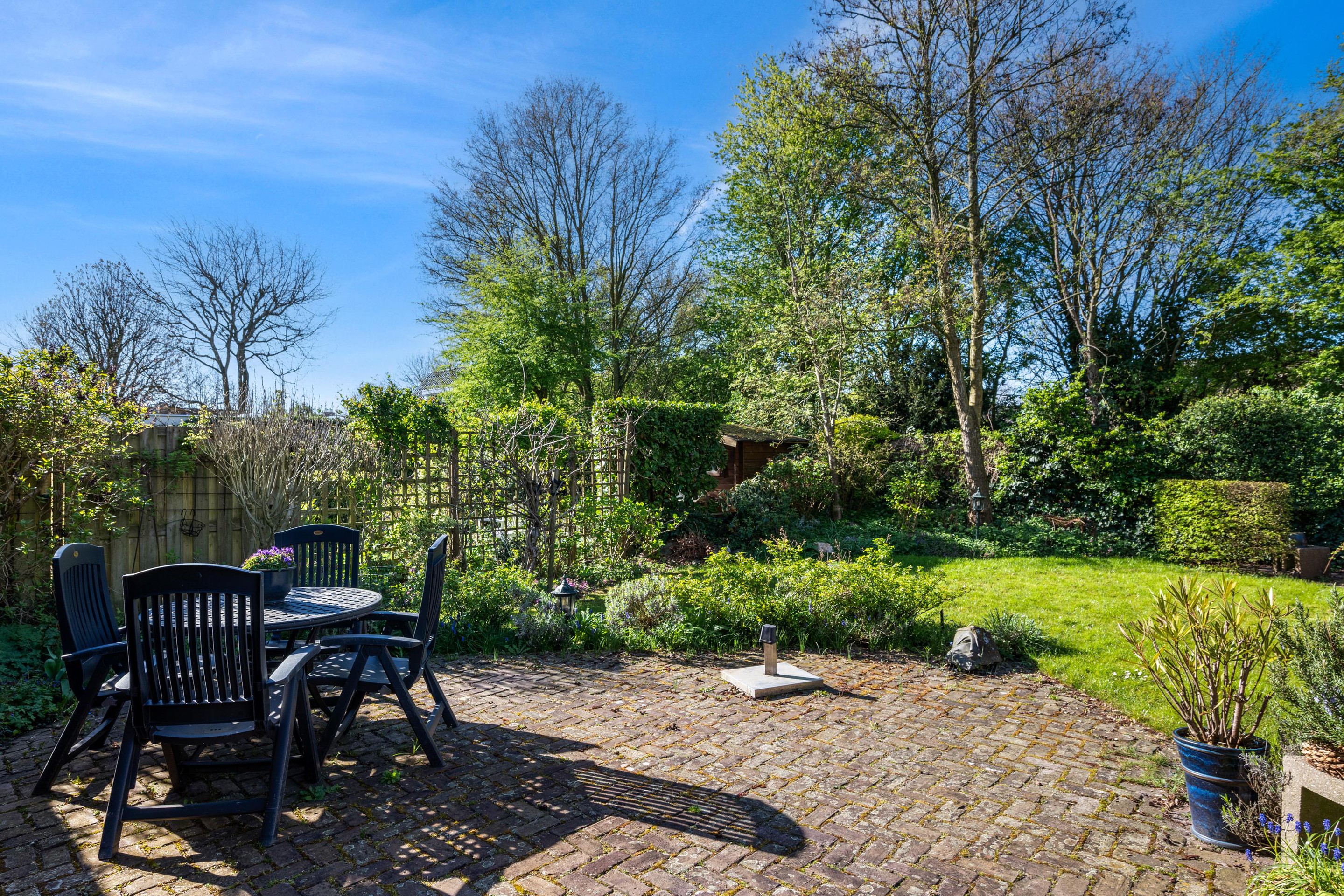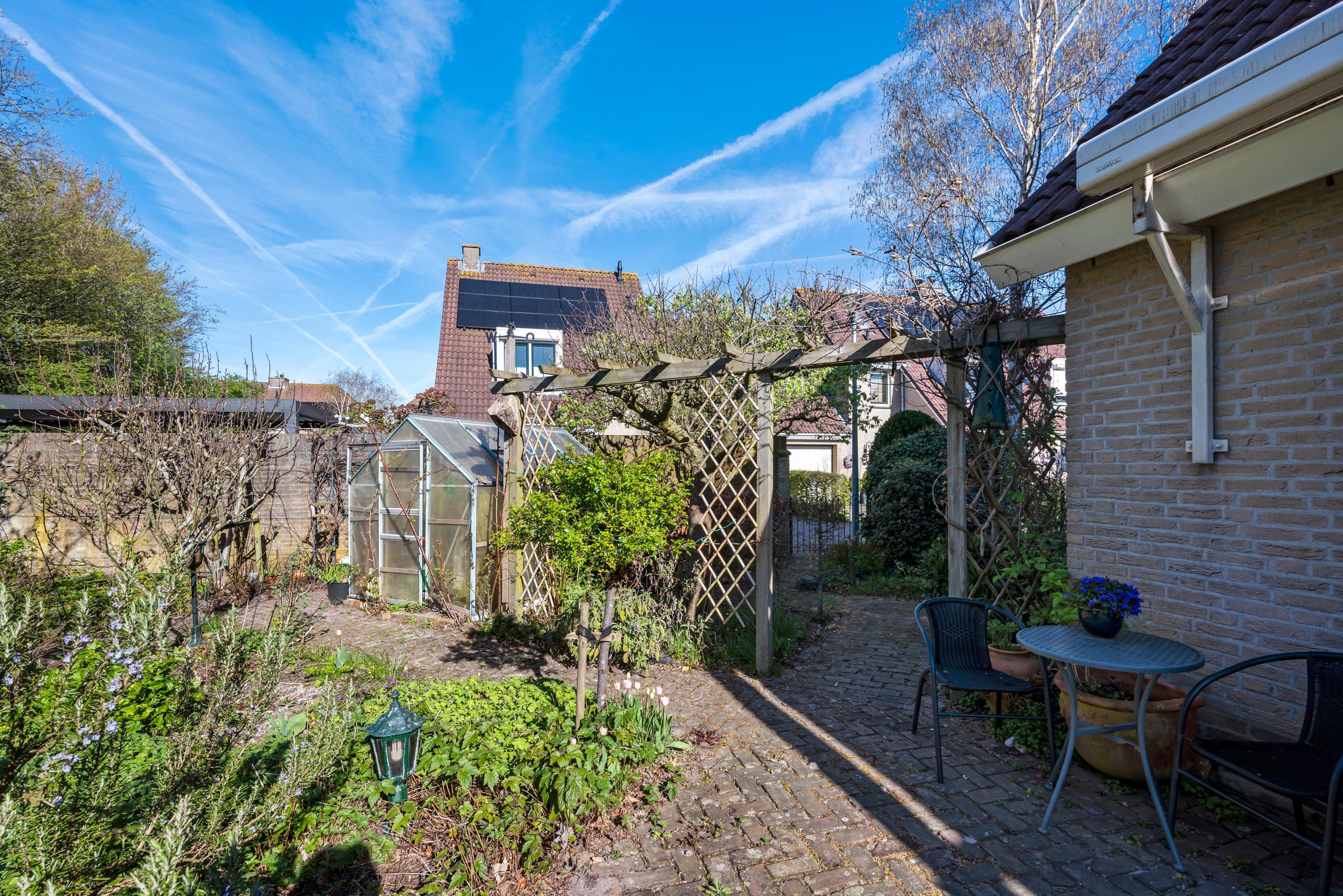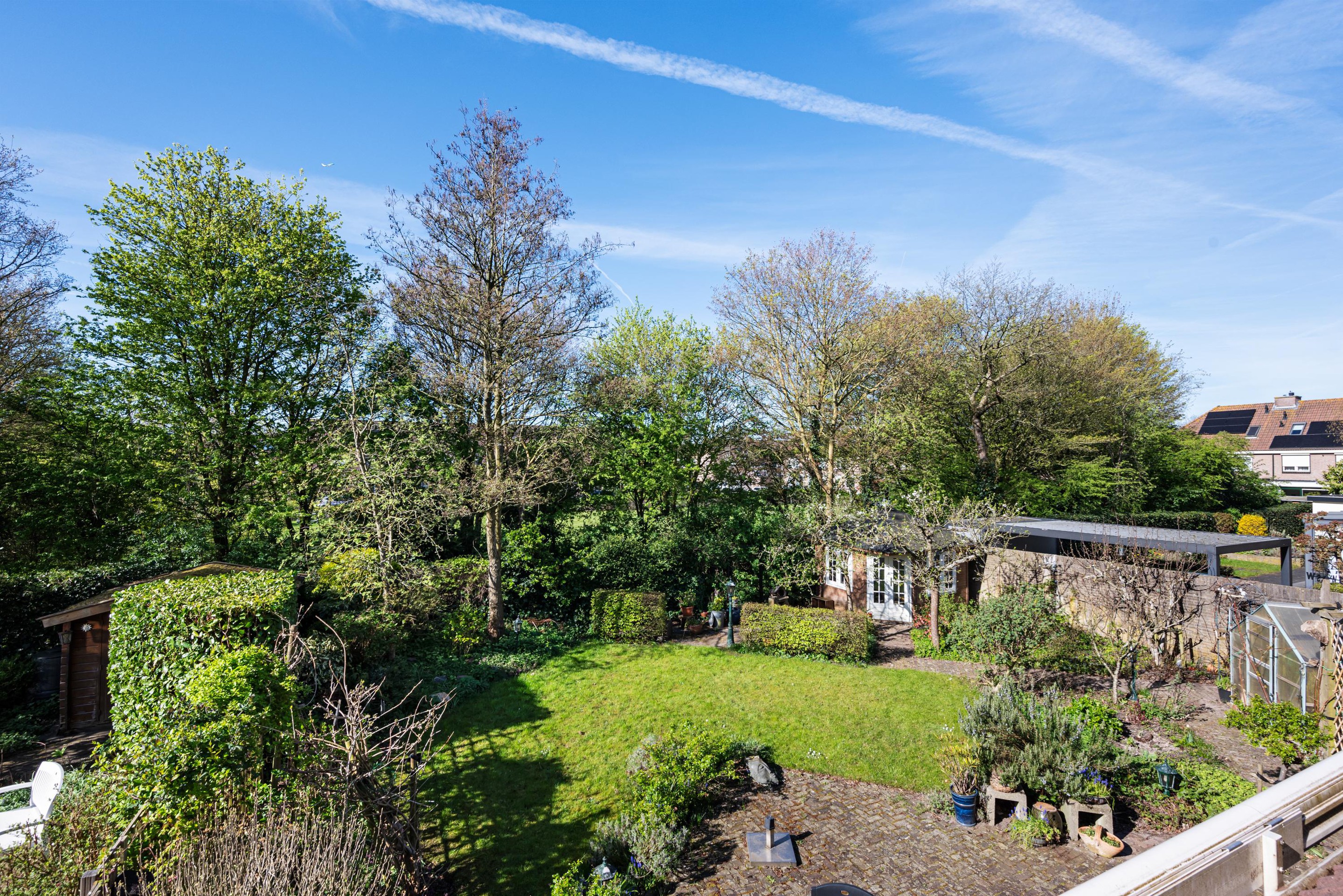 - Zonnige achtertuin (zuidwest) grenzend aan groen.