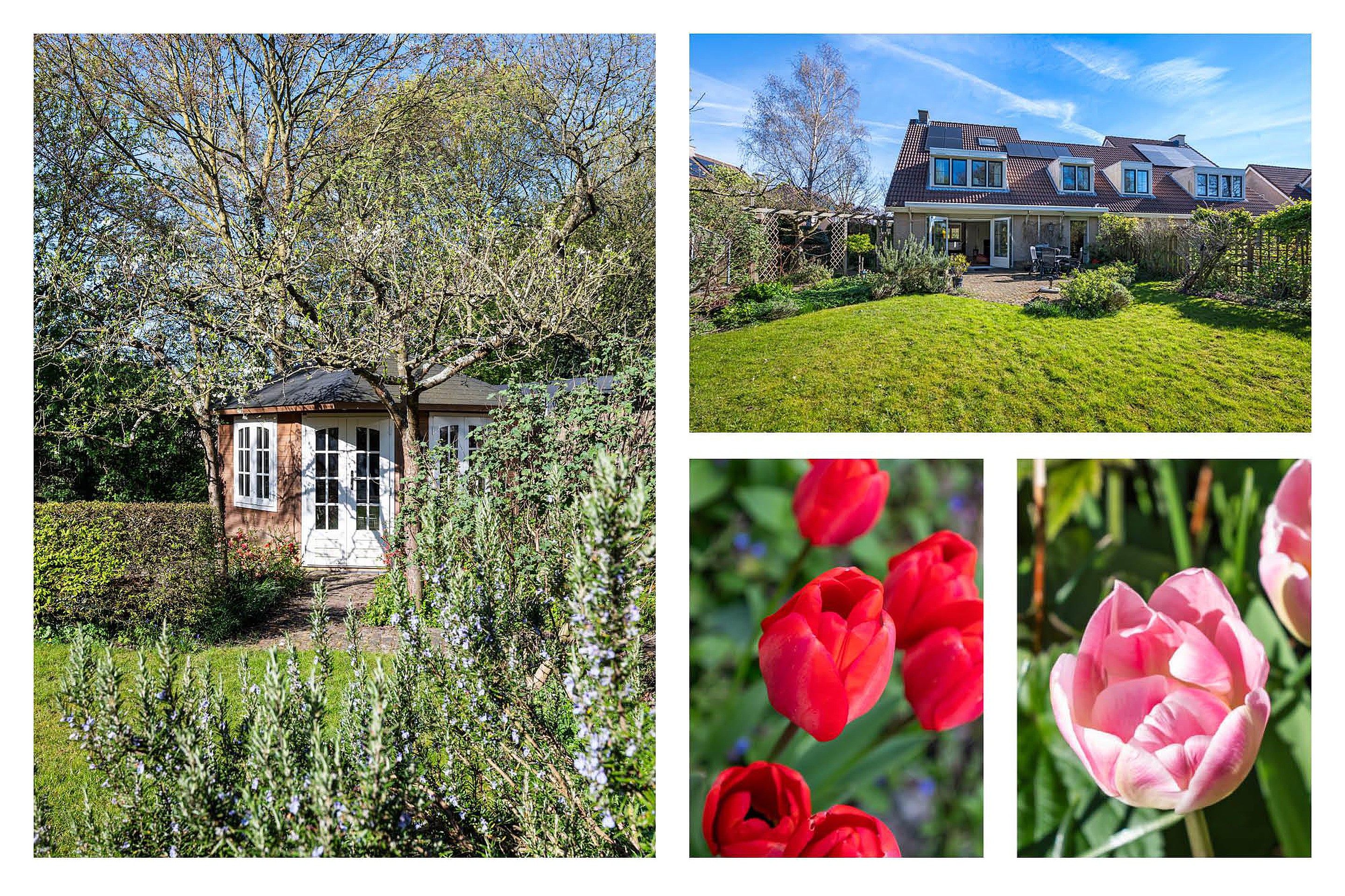 Tuin; De brede en diepe achtertuin is uitermate geschikt voor zonliefhebbers. Gelegen op het gunstige zuidwesten geniet u hier tot in de late uurtjes van de zon. Geen directe achterburen dus privacy is gegarandeerd.