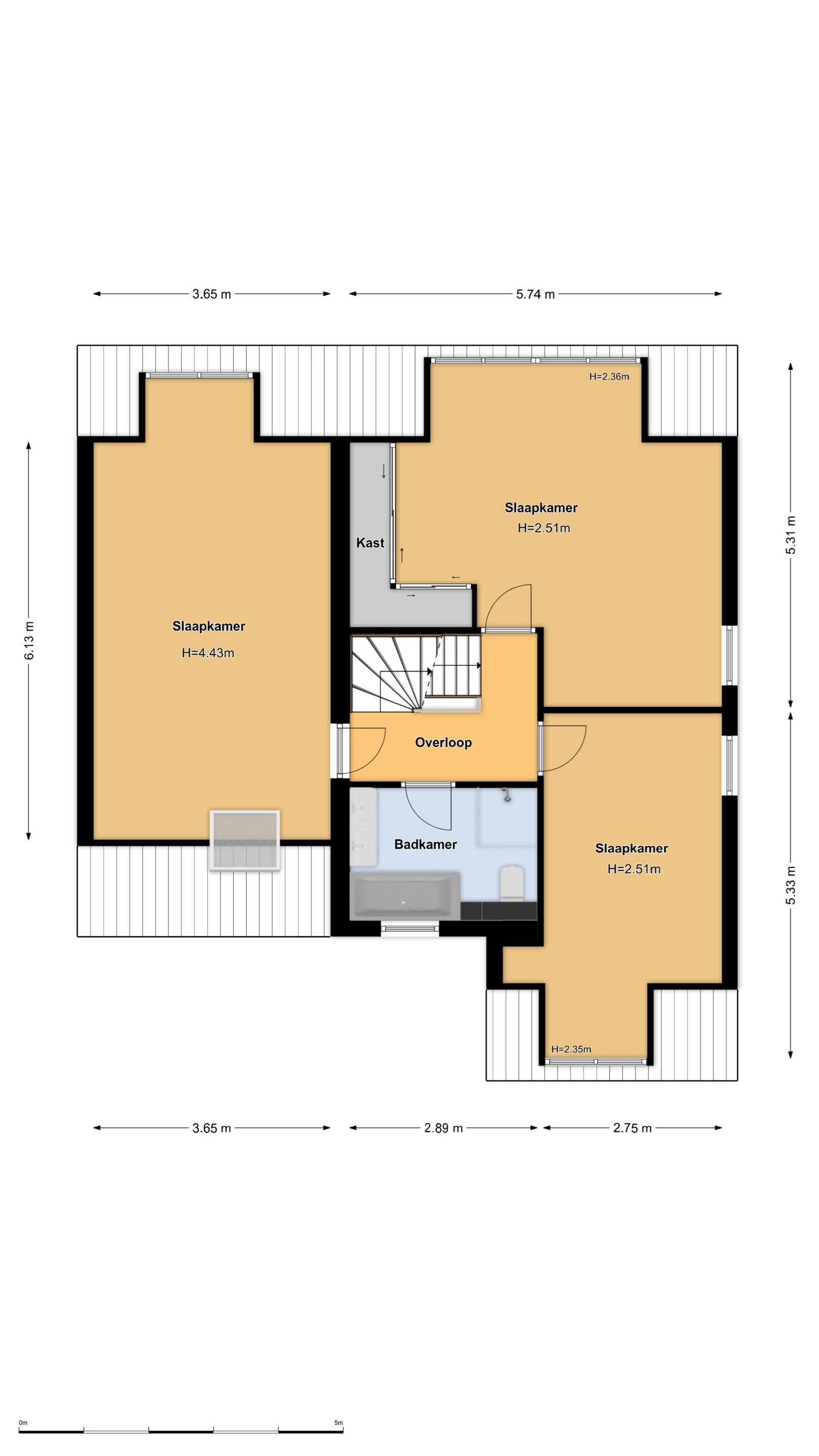 De woning beschikt over grote slaapkamers met veel lichtinval. Een uniek pluspunt is de slaapkamer boven de garage met een indrukwekkende nokhoogte van maar liefst 4 meter.