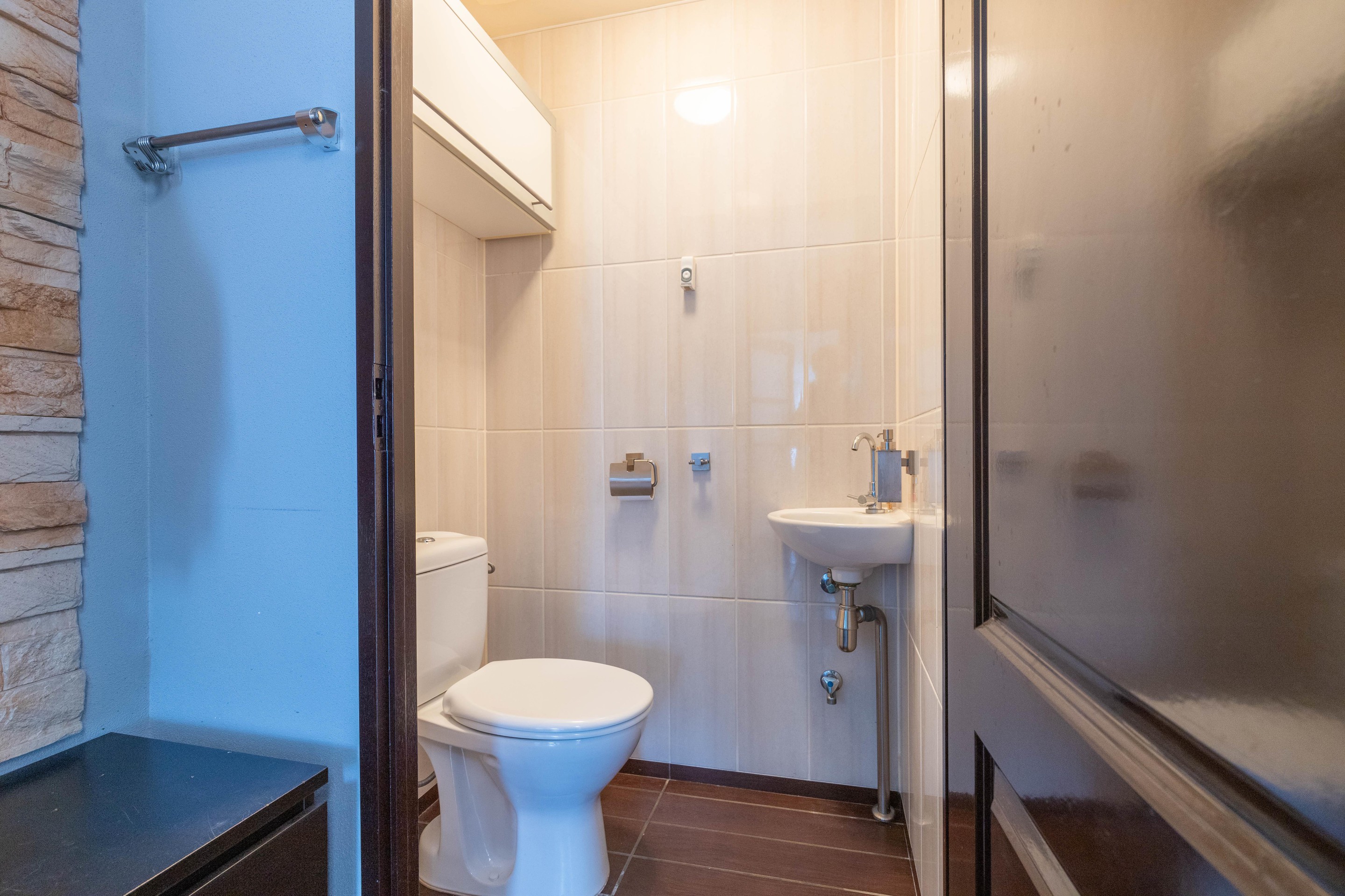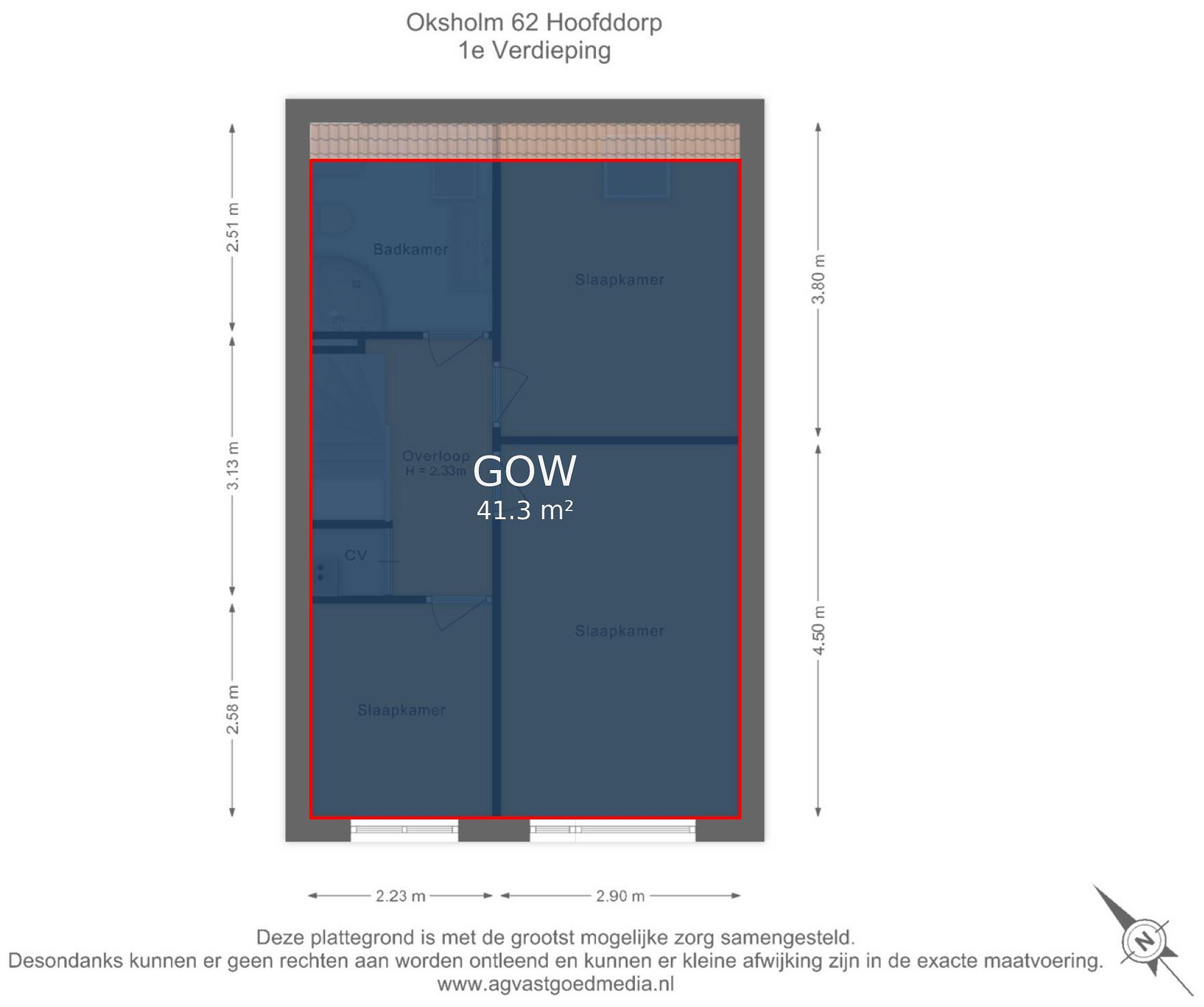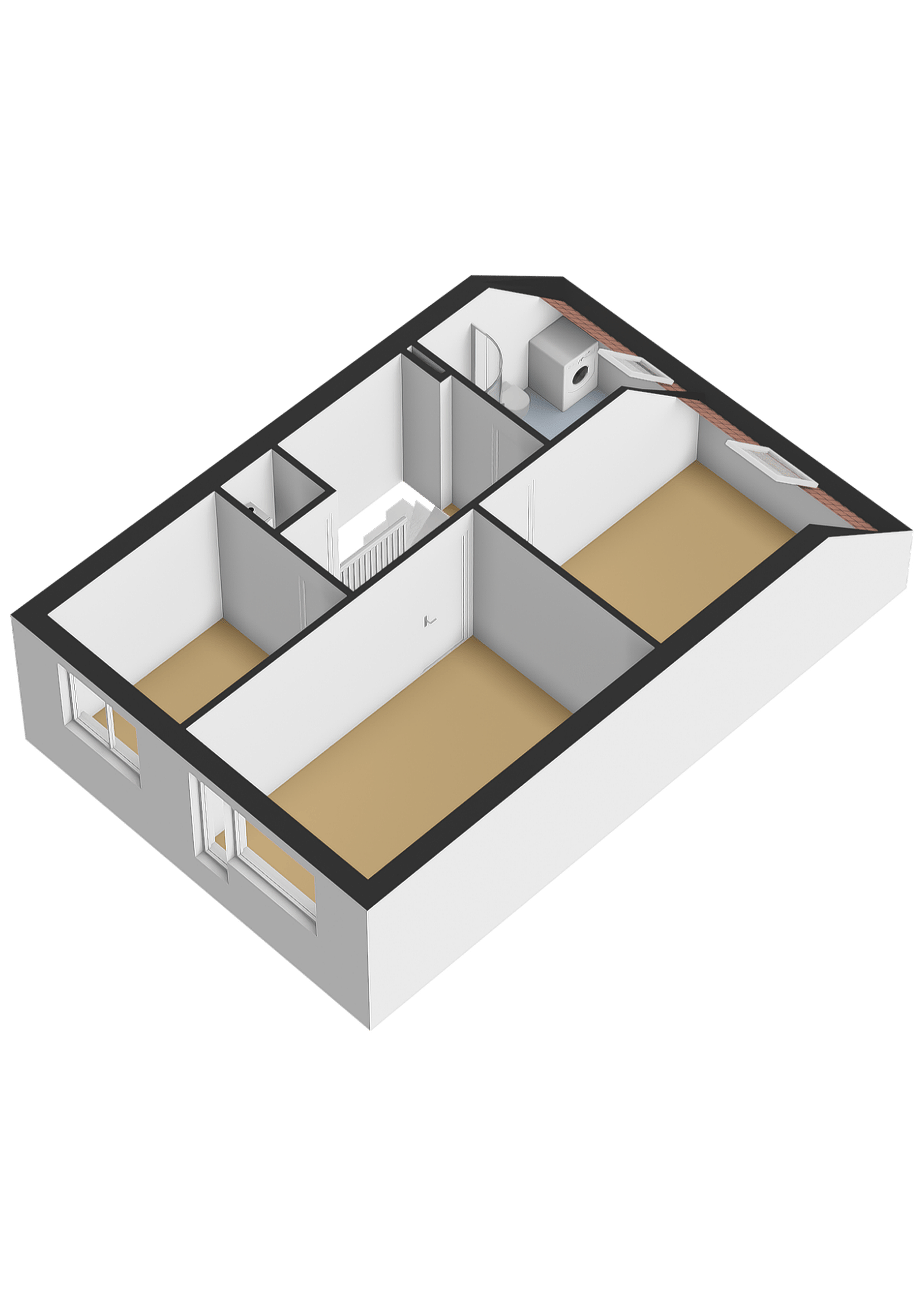 Eerste verdieping overloop, badkamer met wastafel, douchecabine, toilet en aansluiting voor de wasmachine. Verder zijn er drie slaapkamers, waarvan twee van royaal formaat. Ook is er een praktische bergkast met de cv-installatie (Atag HR, 2017). De gehele verdieping beschikt over een nette laminaatvloer.