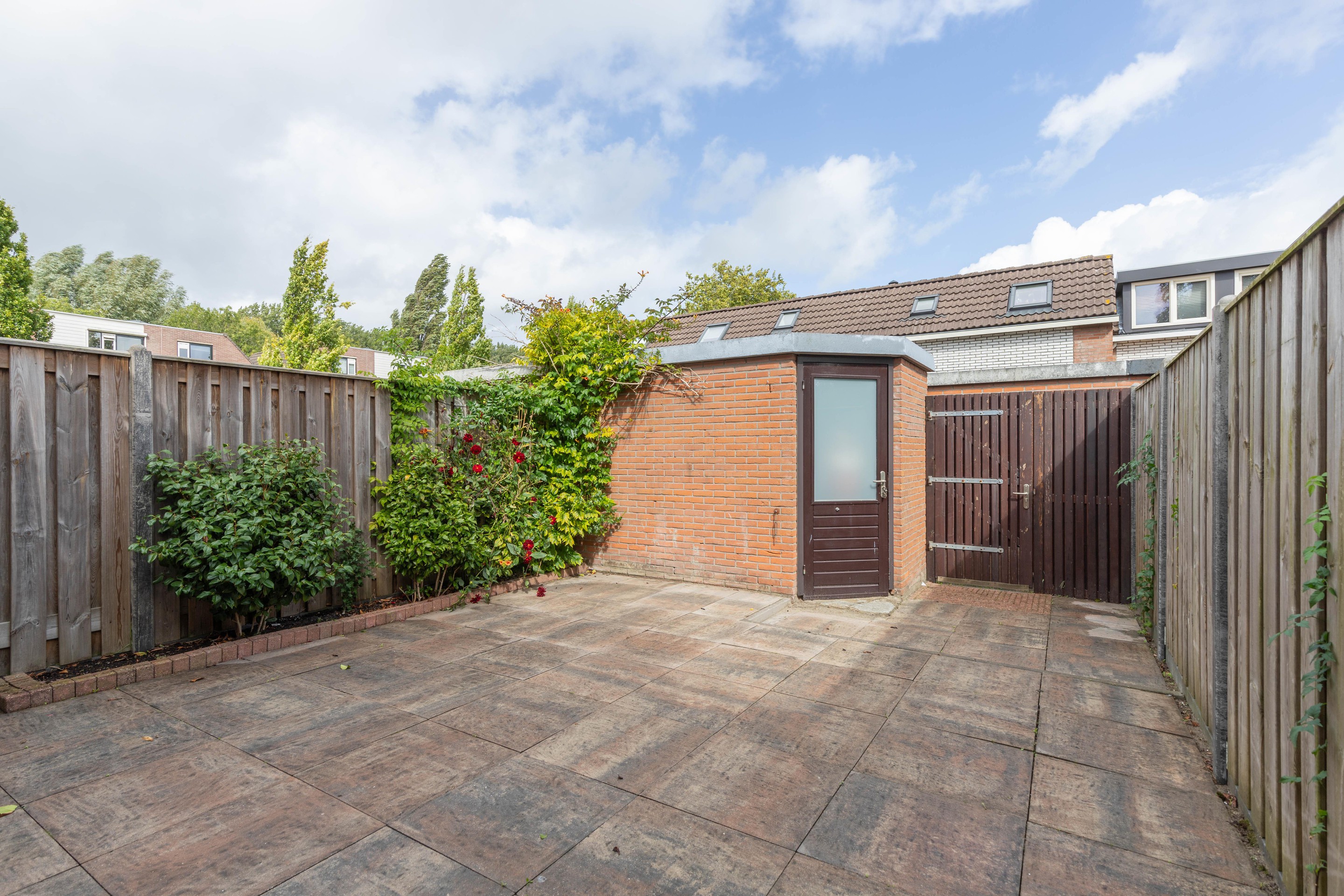 Tuin De achtertuin ligt op het noordoosten en is bereikbaar via een achterom. Daarnaast is er een vrijstaande stenen berging aanwezig. Parkeren kan op de eigen oprit, terwijl er voor bezoekers voldoende parkeergelegenheid in de straat is.