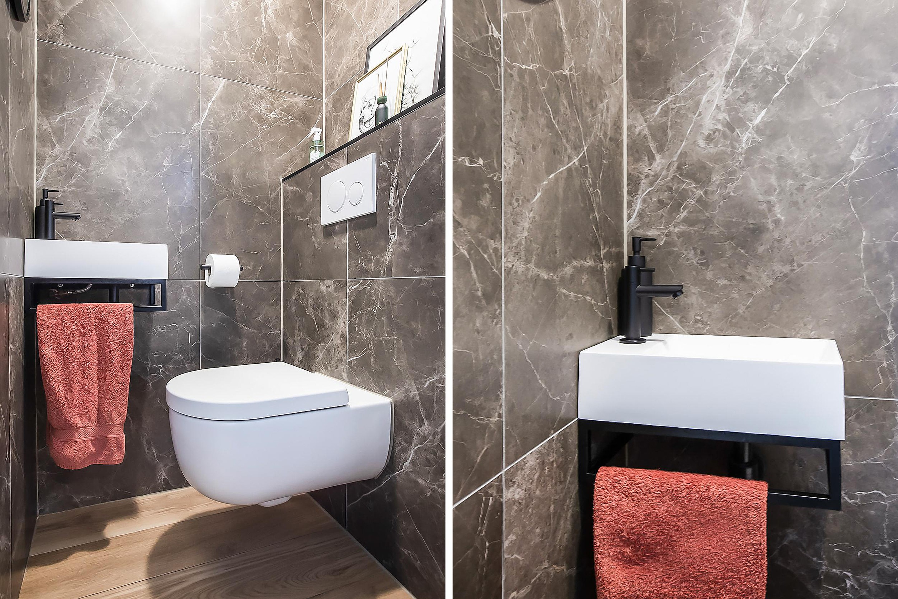 The bathroom is in line with the renovation, finished to a high standard with a focus on comfort and usability. It features a Solid Surface bathtub, a walk-in shower with double shower and integrated sunshower, a custom-made vanity unit with two washbasins and Hotbath taps. Underfloor heating and automatic mechanical ventilation ensure a comfortable and well-regulated indoor climate.