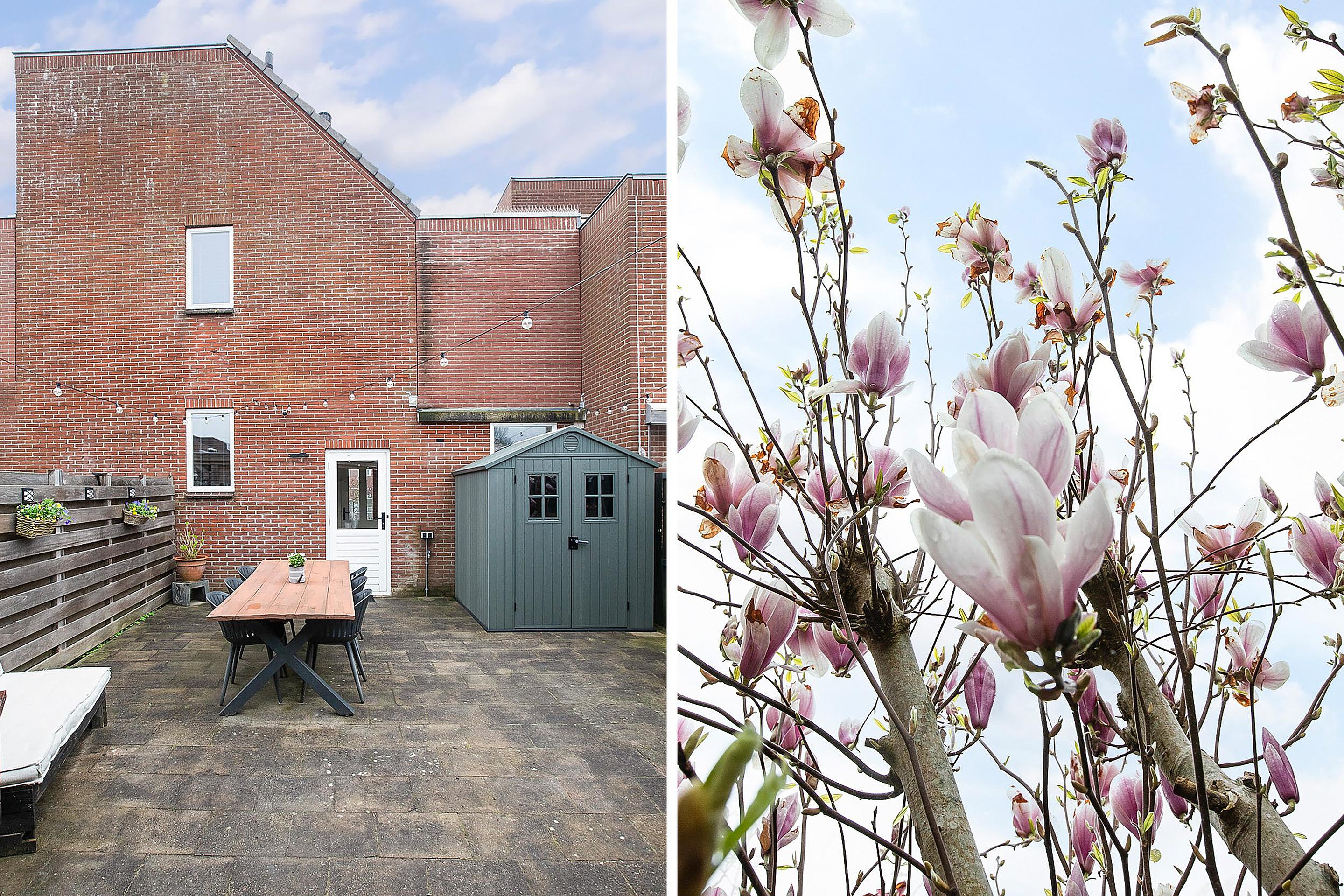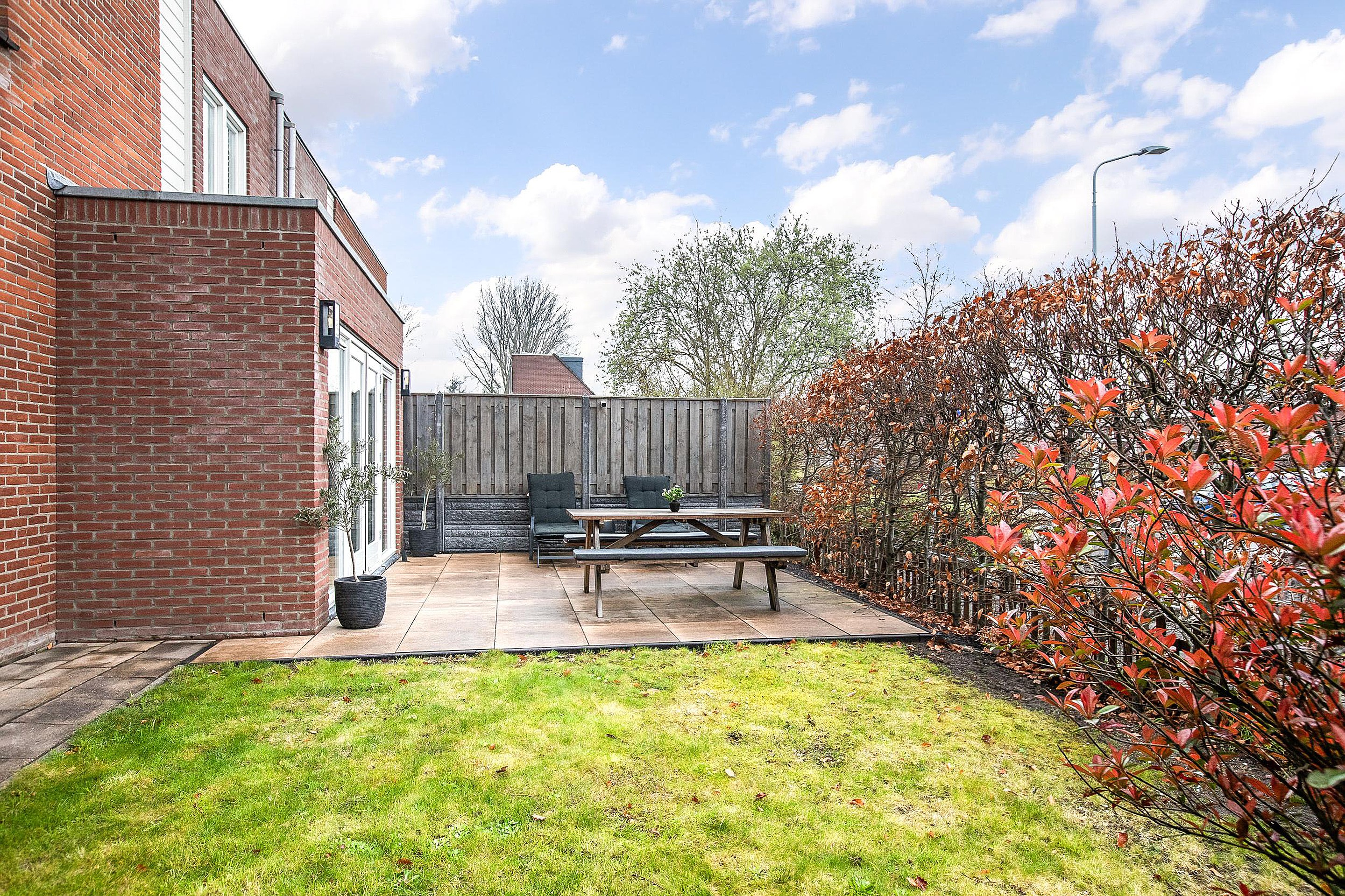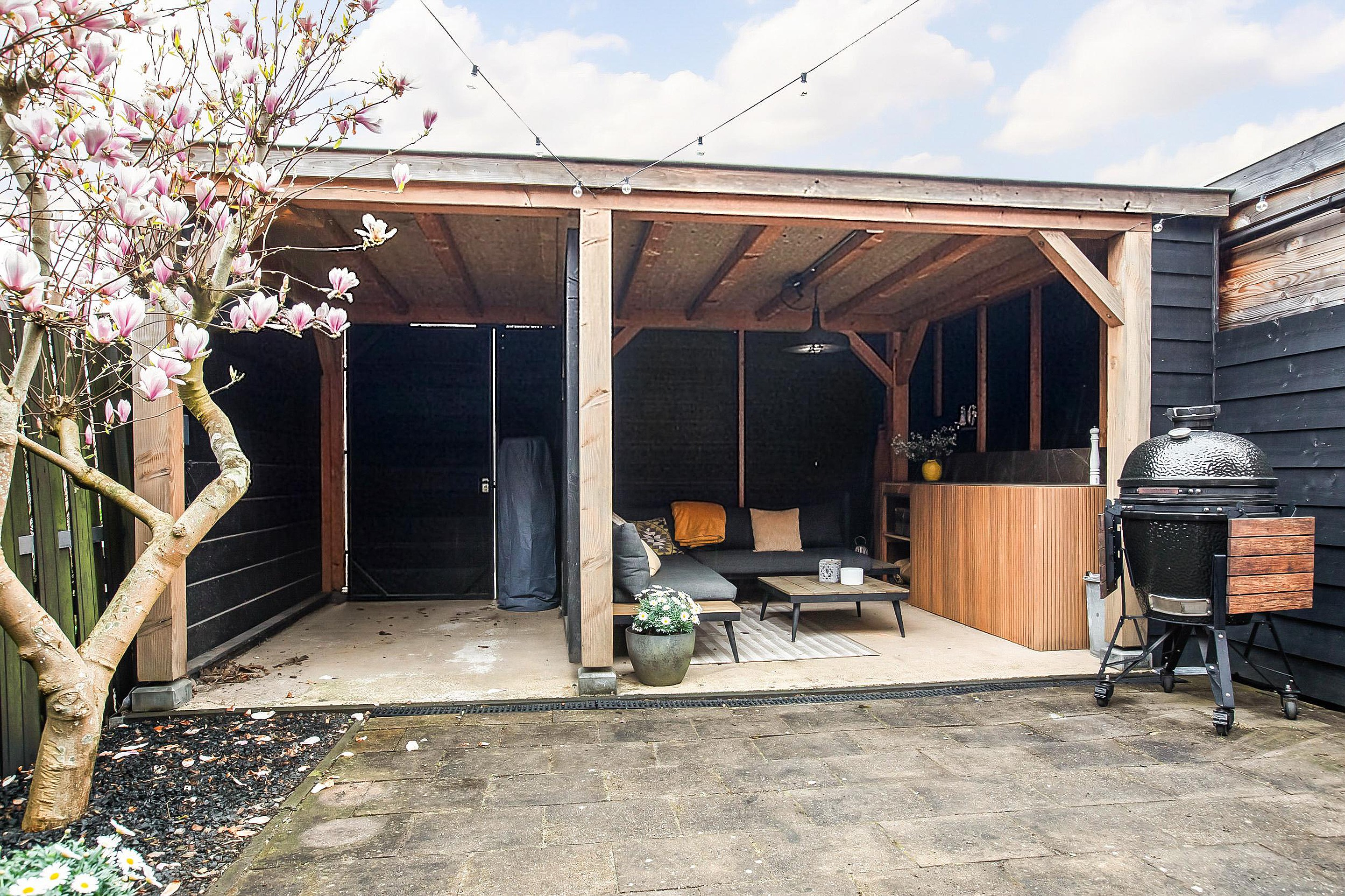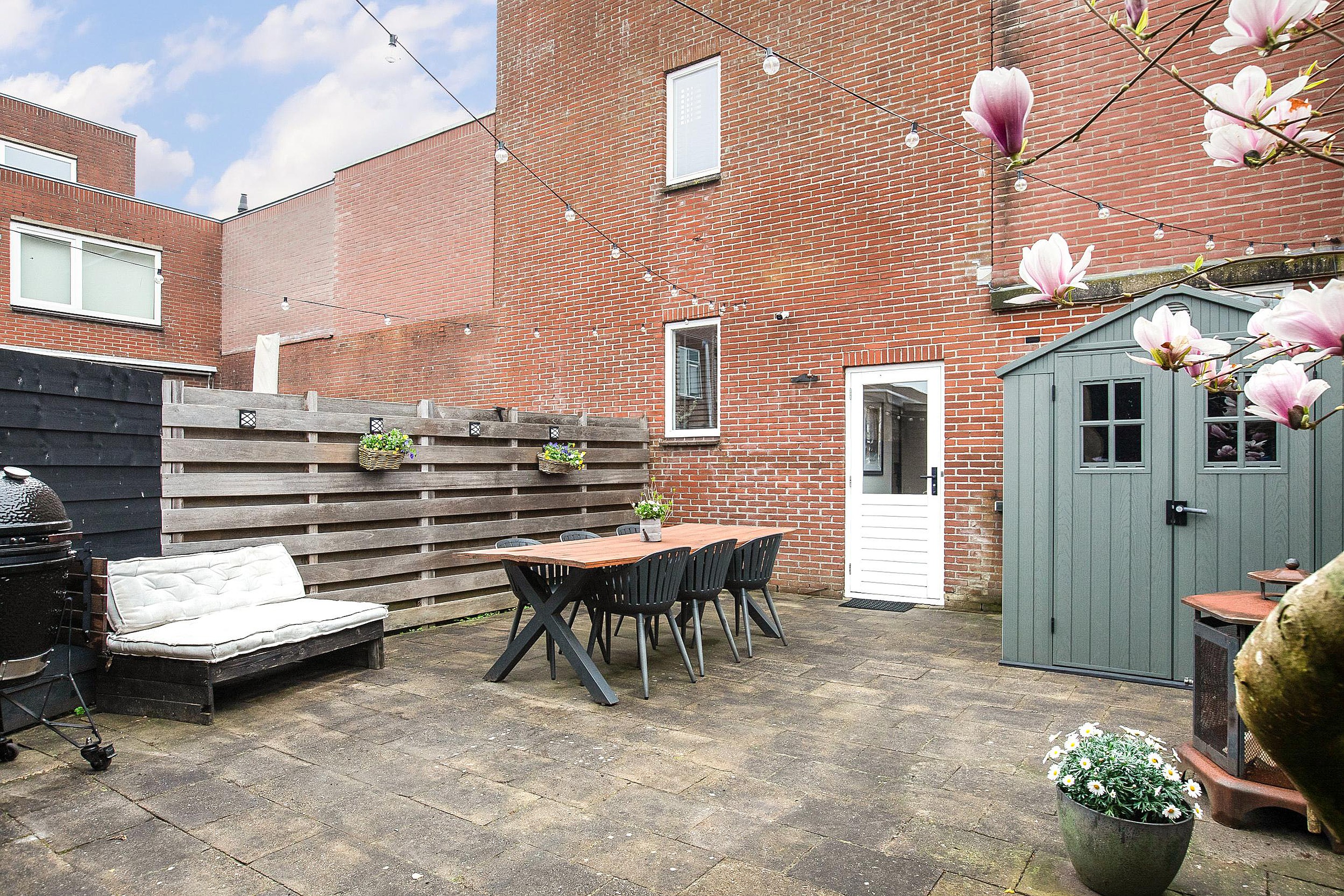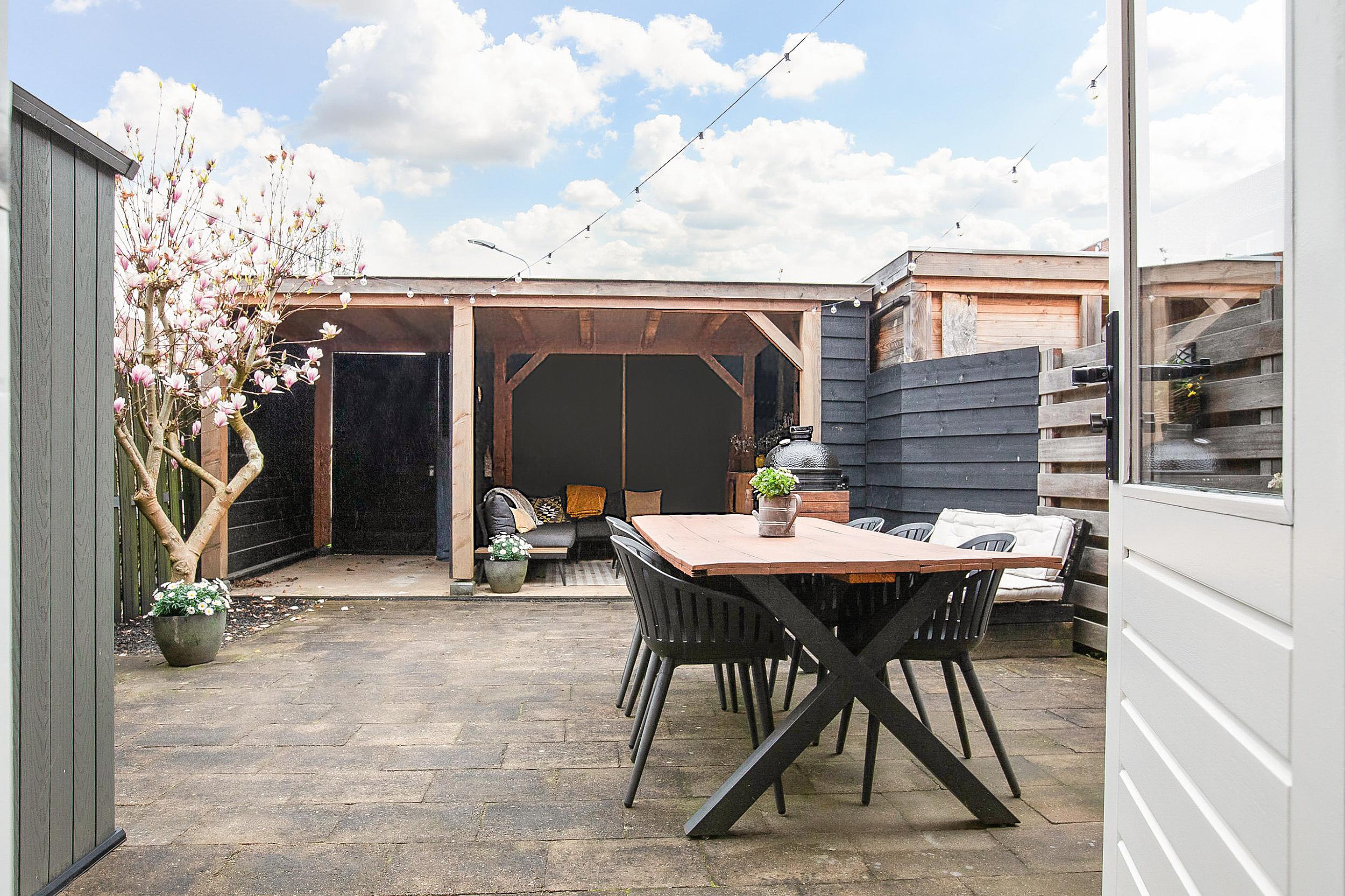 -Achtertuin met overkapping, gelegen in een rustige woonomgeving;