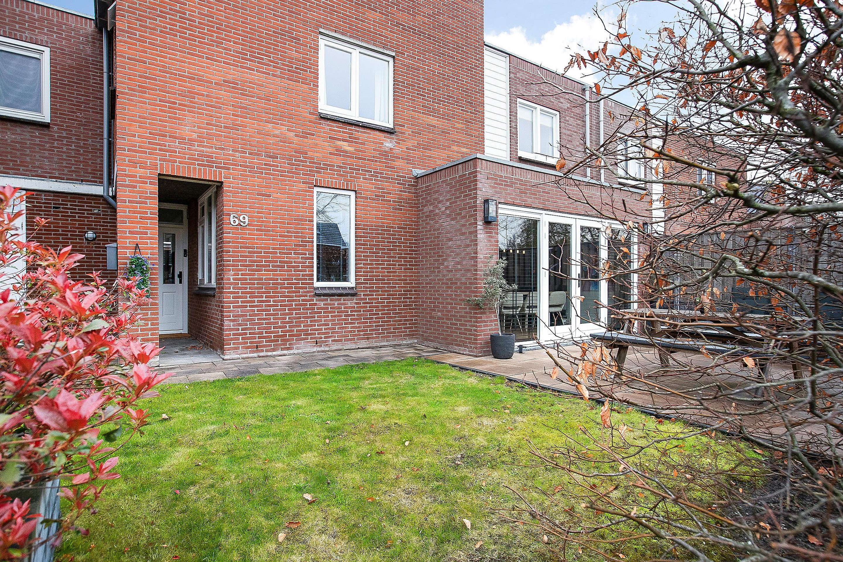 What immediately stands out is the living area at the front. Large windows and an open layout create a bright and pleasant living environment. From here, there is direct access to the spacious front garden, where you can enjoy the morning sun.