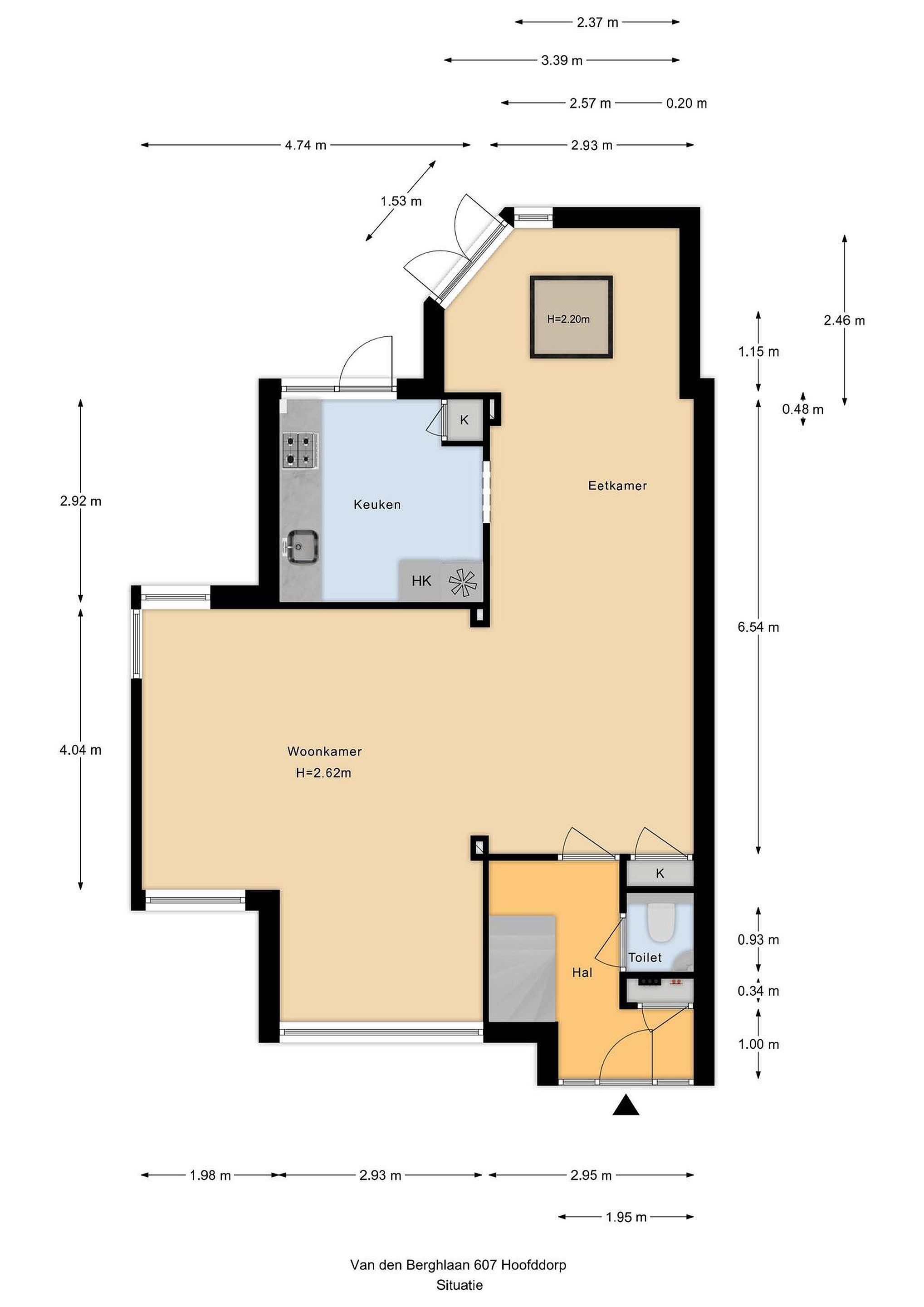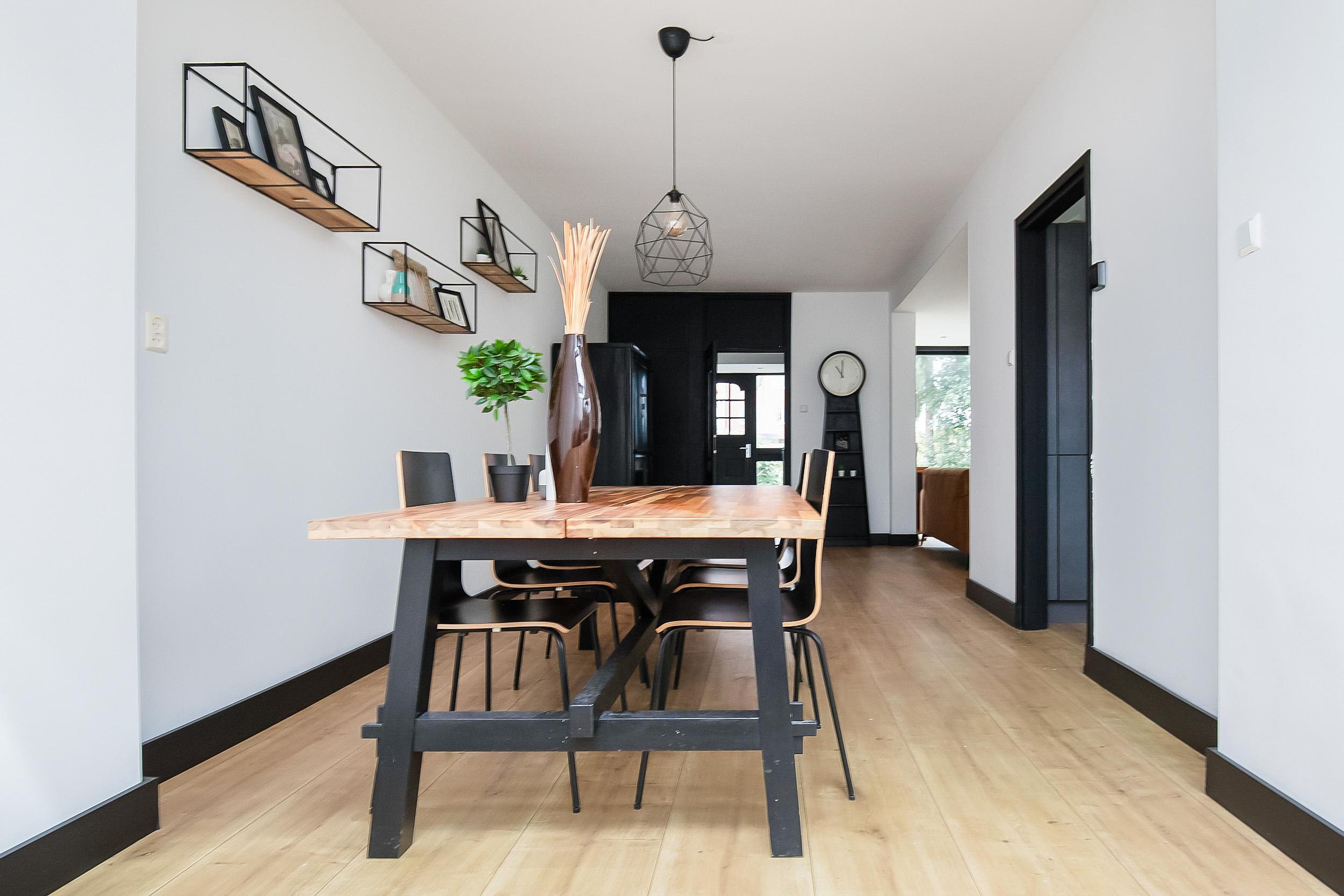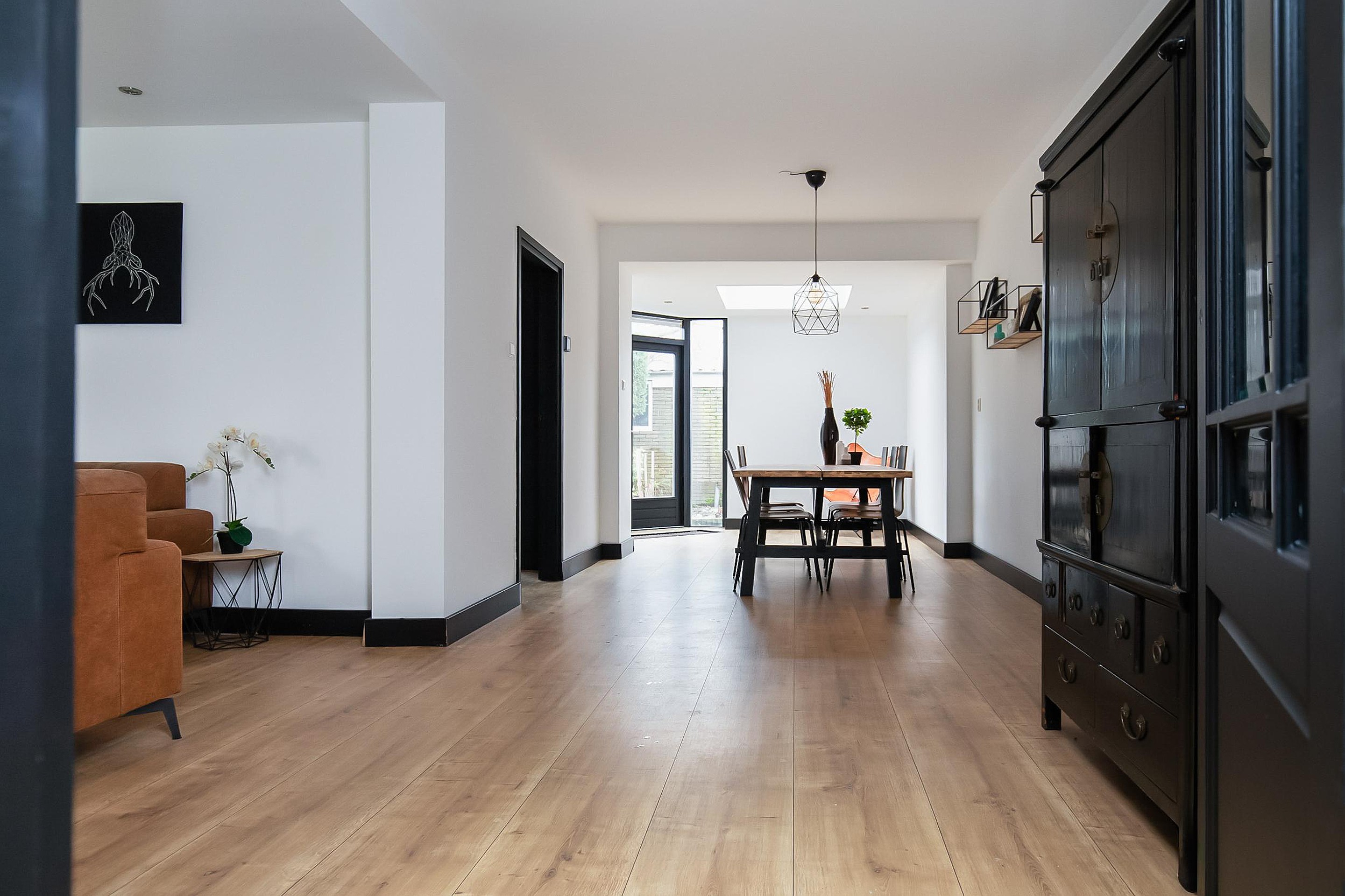 Entrance hall with meter cupboard. Separate toilet with washbasin. The extended living room of approximately 52 m2 is logically laid out and offers ample space for both a seating and dining area. Due to the corner position, large windows and double doors to the rear garden, the room enjoys pleasant natural light and a direct connection to the outdoors.