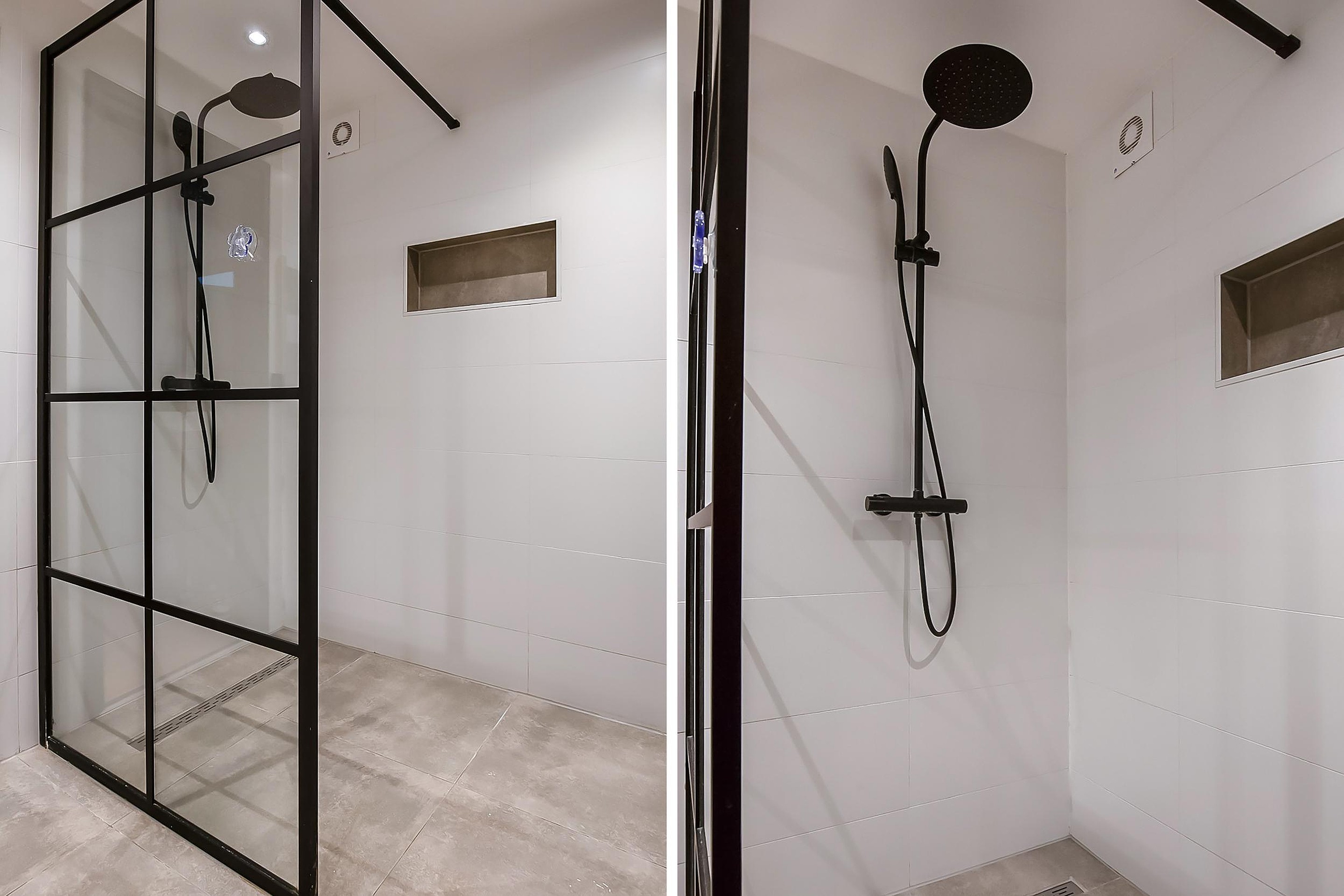 Overloop met toegang tot twee ruime slaapkamers met bergruimte. De tweede badkamer is eveneens vernieuwd en voorzien van een inloopdouche en wastafelmeubel. Daarnaast bevindt zich hier een separaat derde toilet.