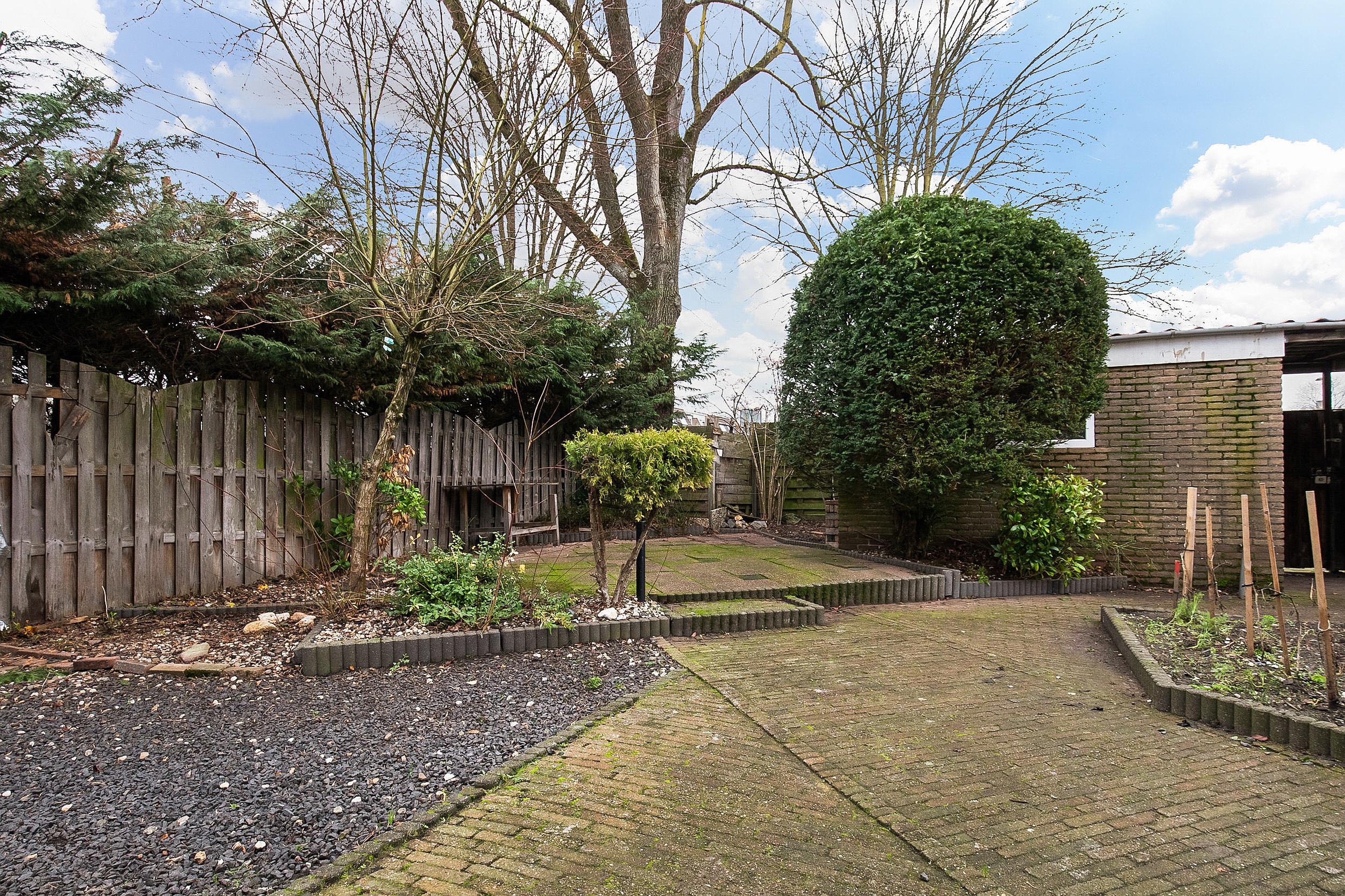 De achtertuin is ruim van opzet en bereikbaar via de woonkamer, de keuken en de zijtuin. De tuin beschikt over een achterom en een vrijstaande berging, geschikt voor fietsen en extra opslag. Door het perceel en de situering rondom de woning biedt de buitenruimte meer gebruiksmogelijkheden dan gebruikelijk in de straat.