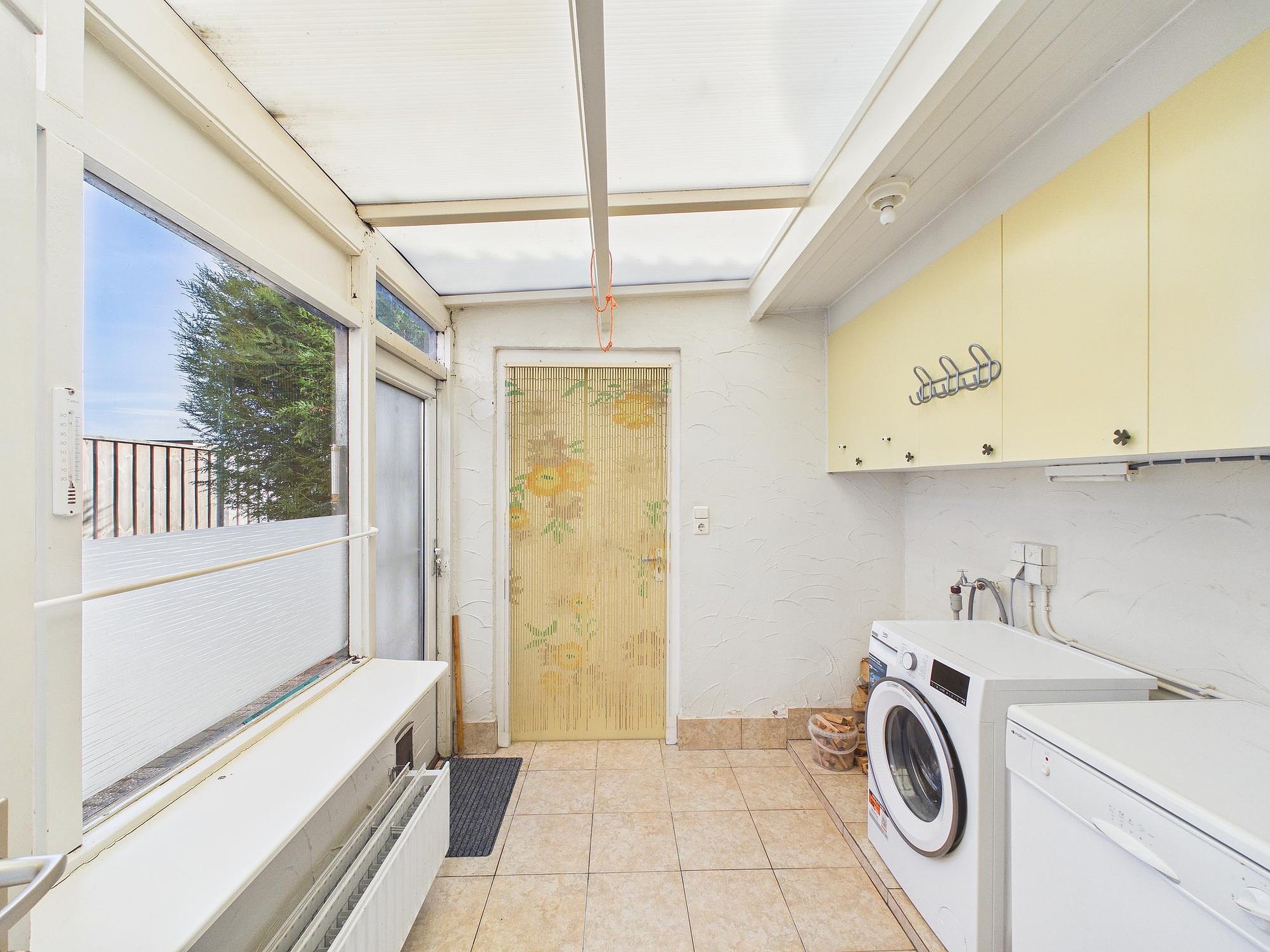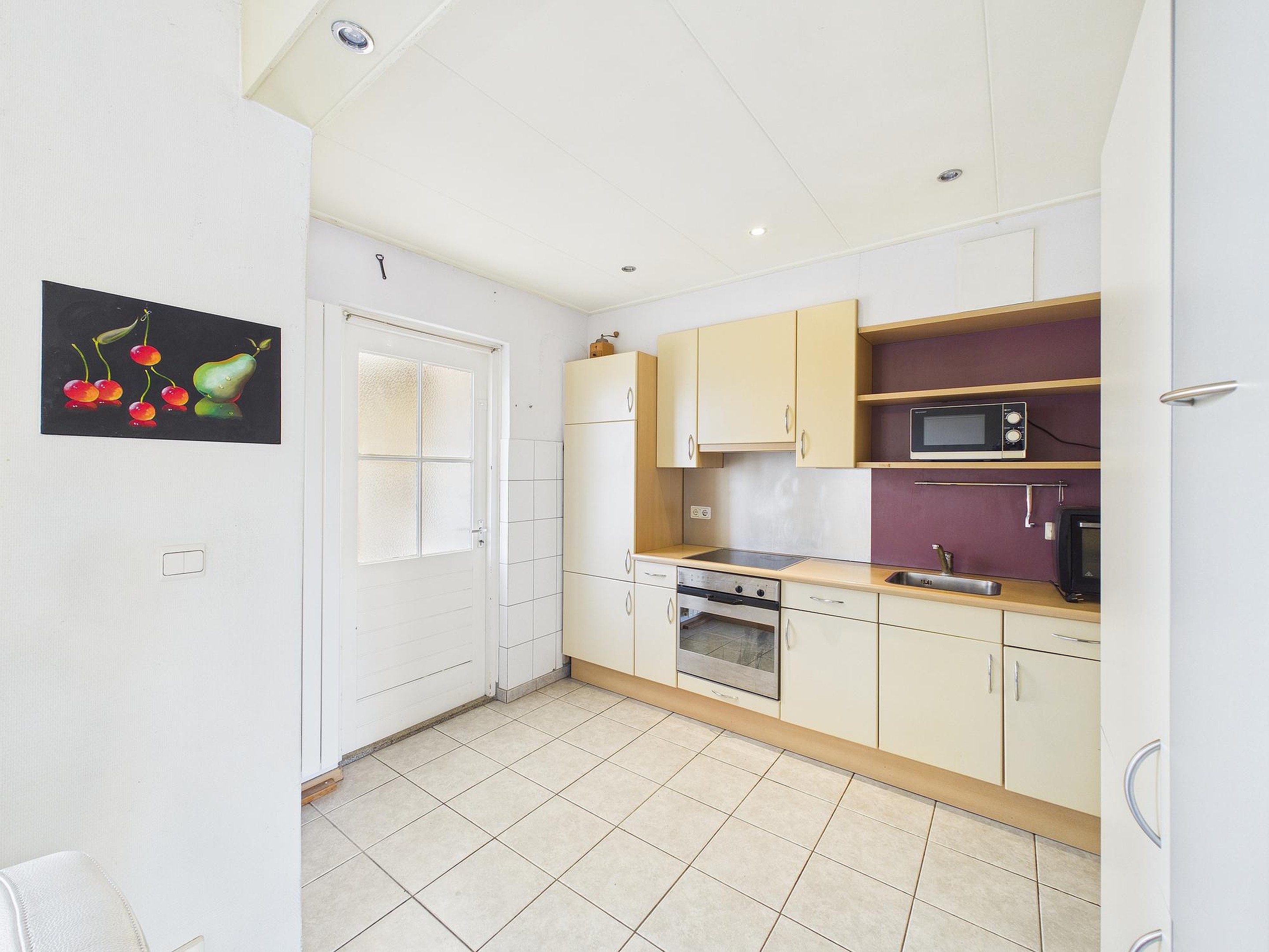 Begane grond Binnenkomst in de inkomhal met toegang naar het toilet en de woonkamer. De gezellige woonkamer beschikt over openslaande deuren en een half open keuken. De keuken is voorzien van alle benodigde apparatuur: Een elektrische kookplaat, afzuigkap, oven en koelkast. Via de keuken kom je de bijkeuken binnen. Hier zijn de cv-ketel en de aansluiting voor de wasmachine en/of droger/vaatwasser aanwezig. Via de bijkeuken bereiken we de badkamer. De badkamer is uitgerust met een ligbad, douche en dubbele wastafel met meubel.