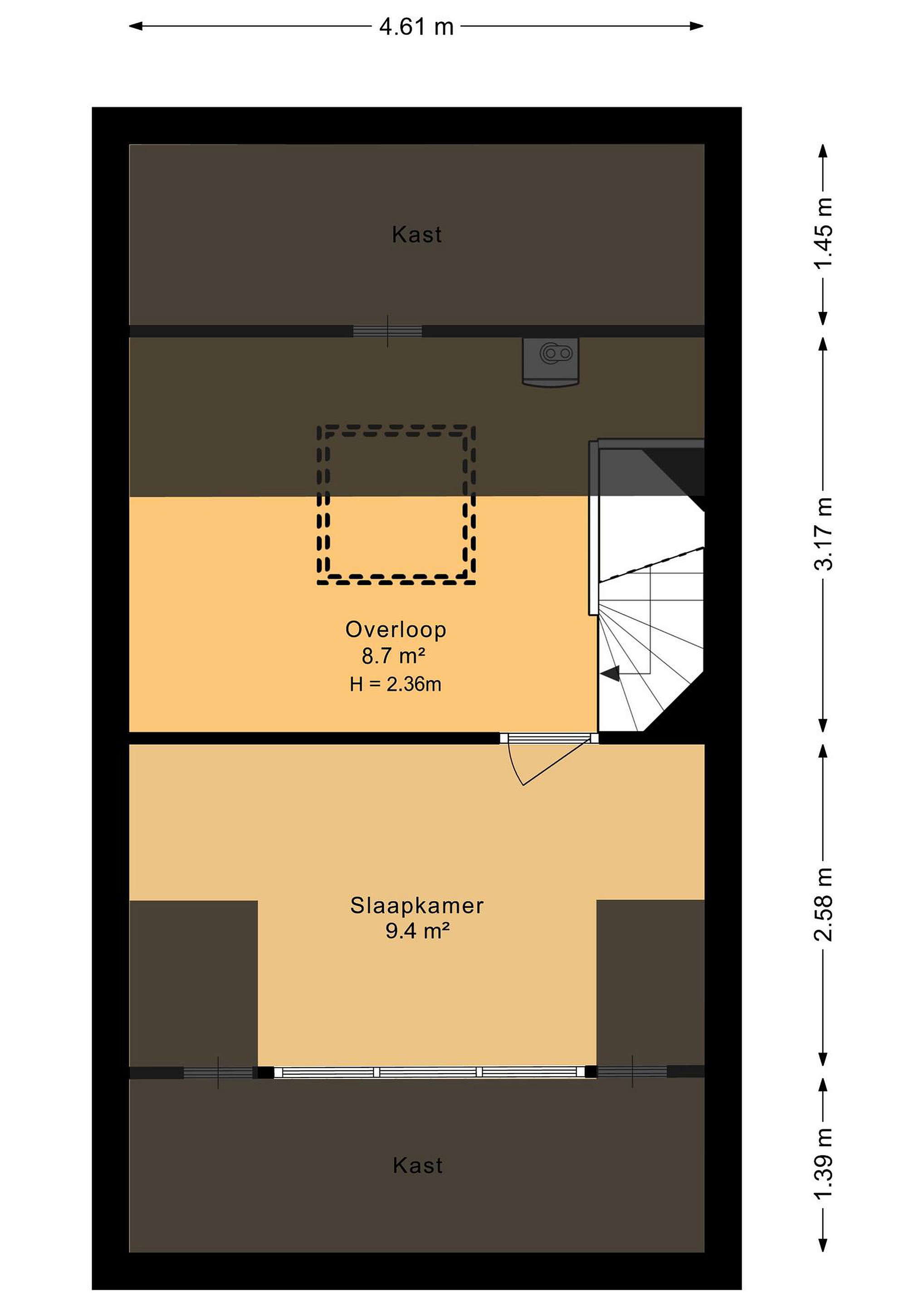 Vaste trap naar de zolderverdieping met overloop/berging en vierde slaapkamer. Een volwaardige extra verdieping die je naar wens kunt inrichten.