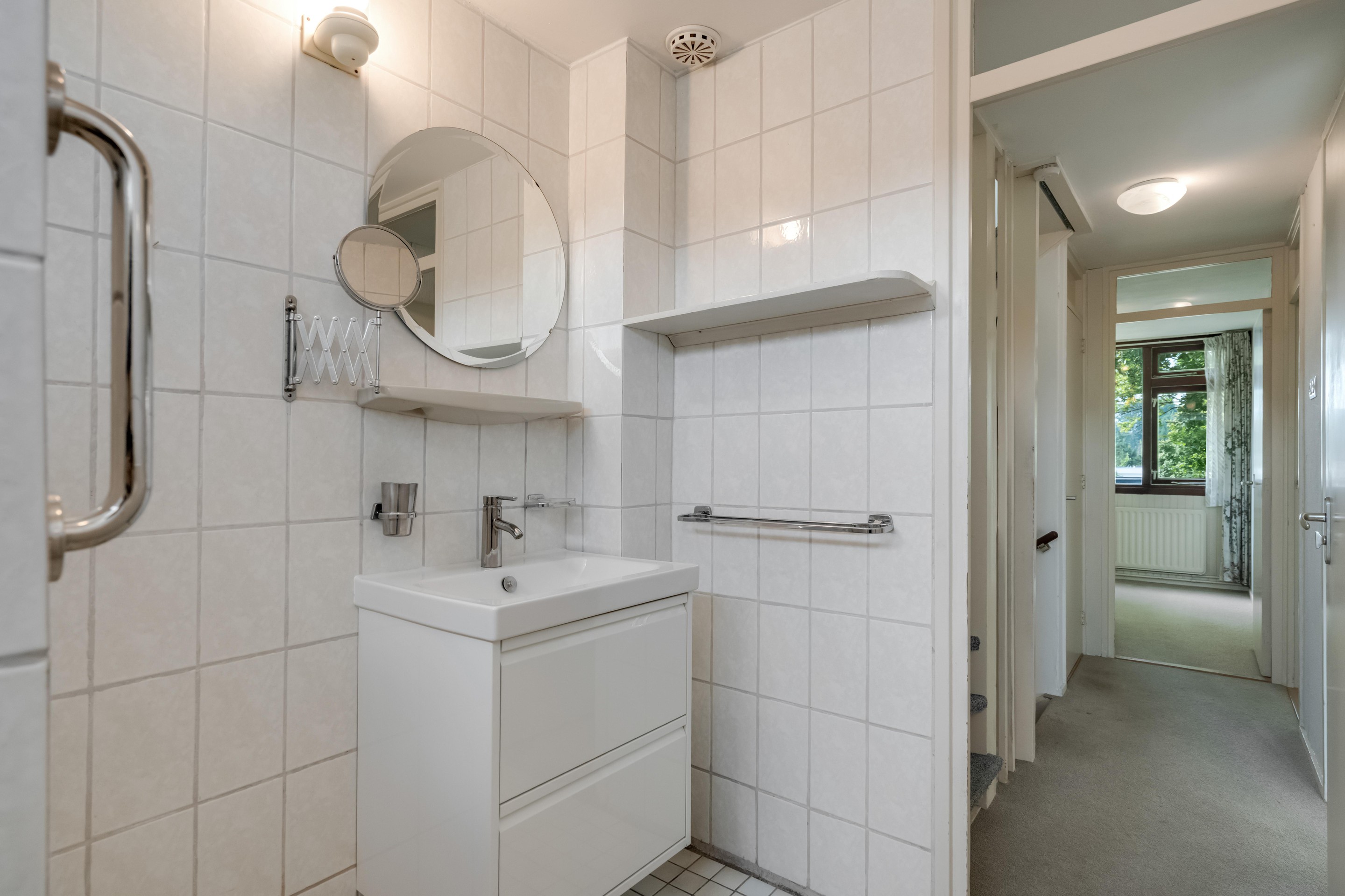 Overloop met drie slaapkamers en de badkamer met douche en wastafel. Extra praktisch: een tweede toilet op deze verdieping.