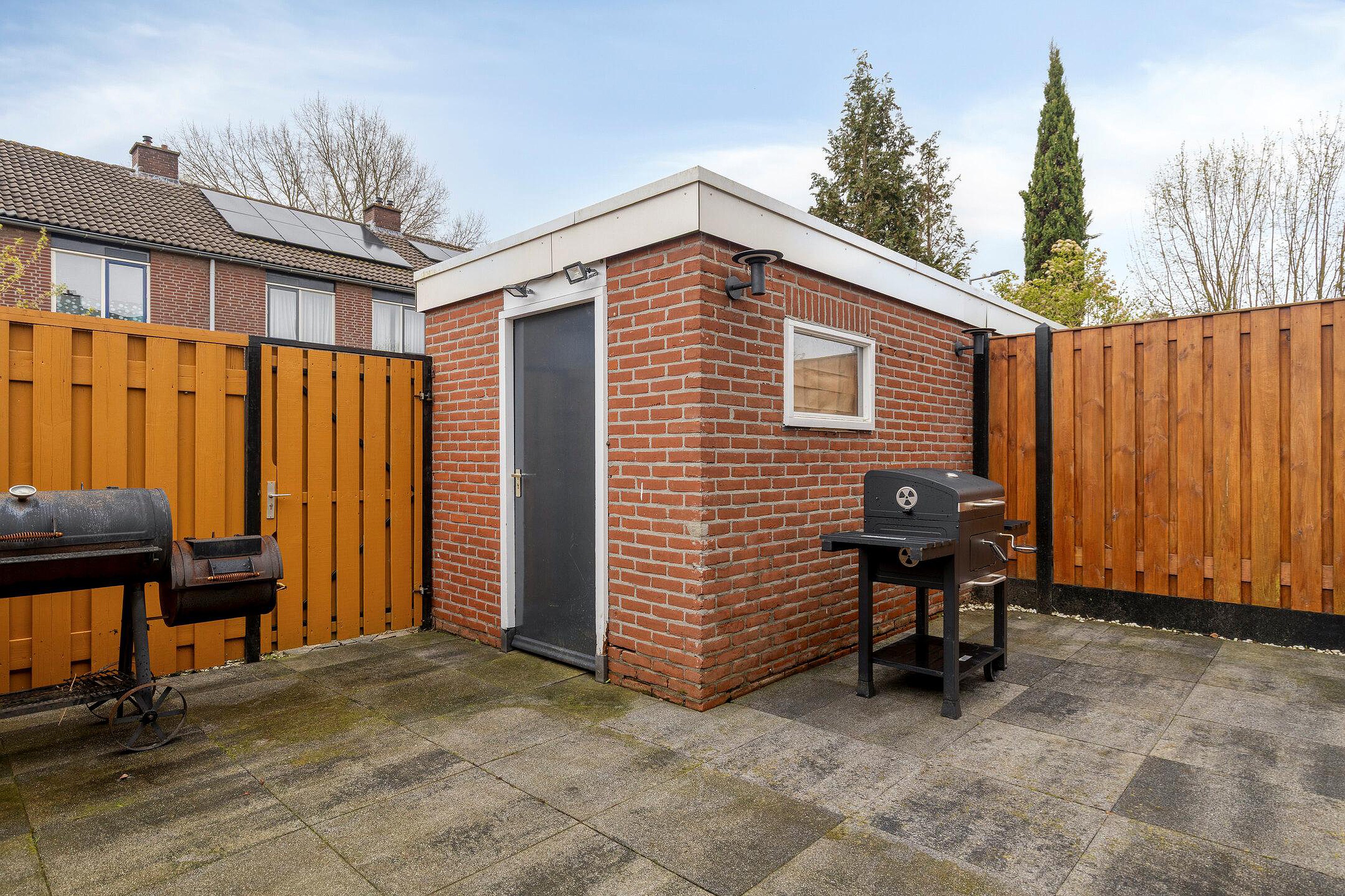 - Achtertuin op het oosten met achterom en berging