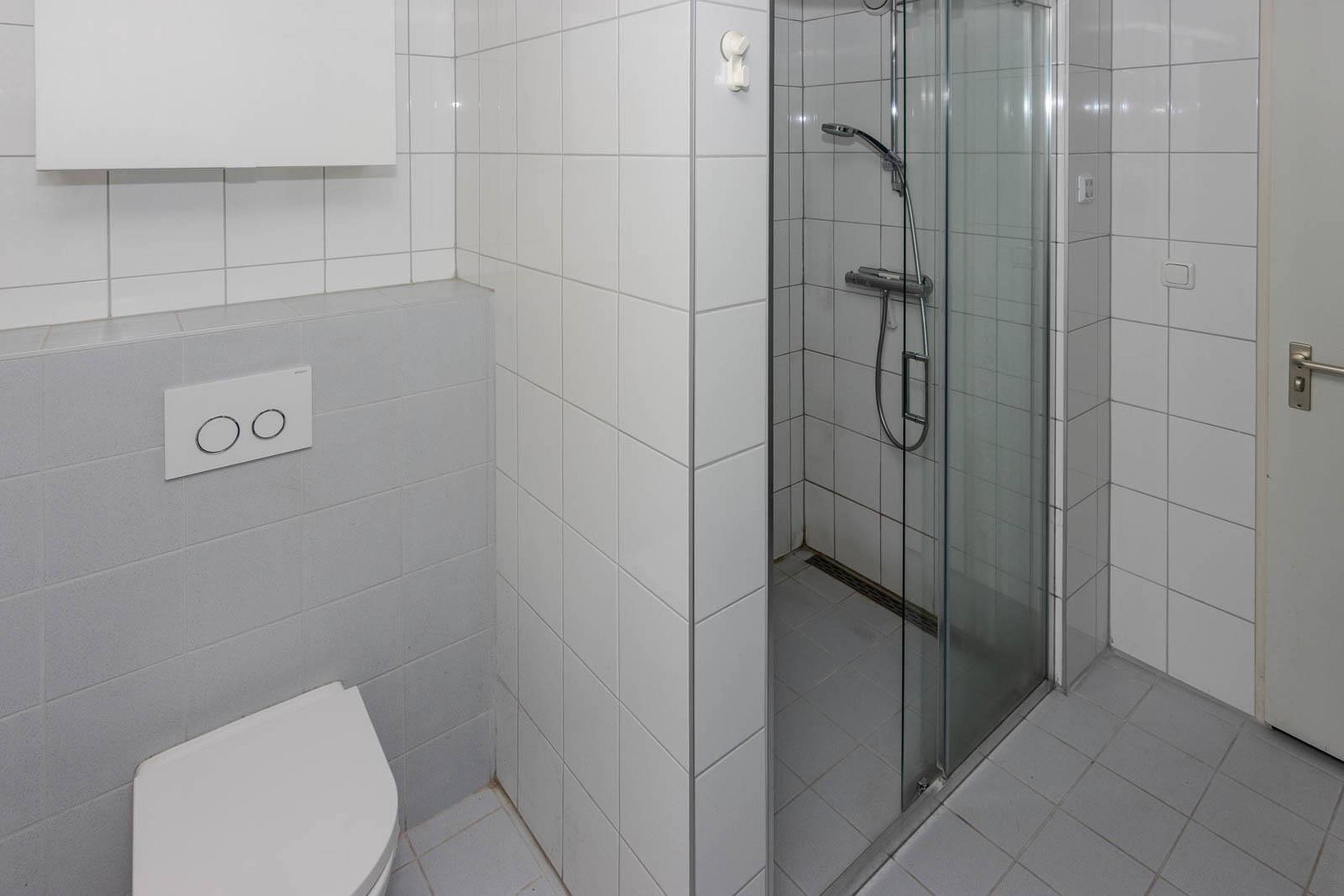 De overloop biedt toegang tot twee ruime slaapkamers en de badkamer. De nette badkamer is voorzien van een douche, een wastafelmeubel en een tweede toilet.