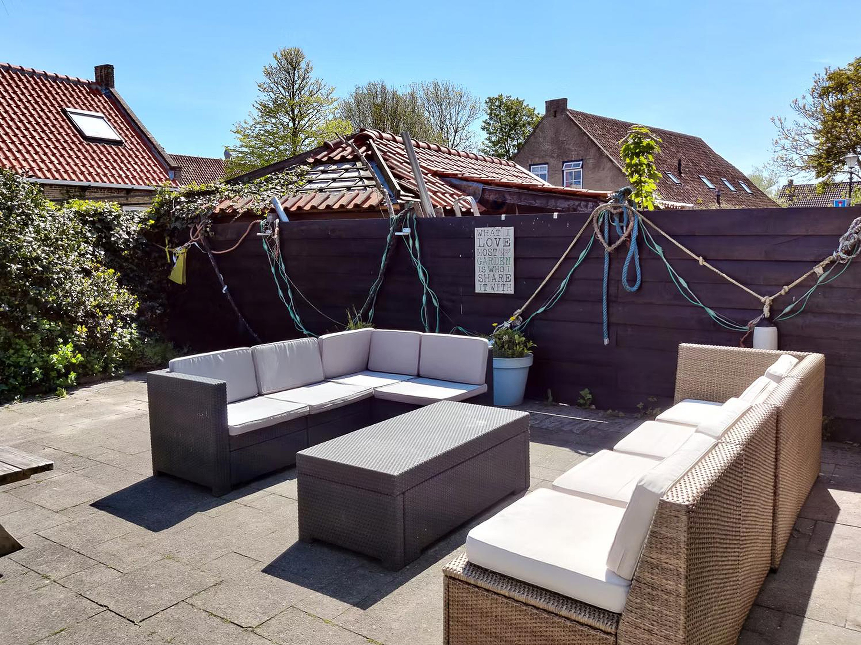 Tuin De woning beschikt aan de voorzijde over een verzorgd aangelegd terras dat een uitnodigende entree vormt. Aan de achterzijde bevindt zich een royaal, fraai aangelegd en omheind terras, waar u in alle rust en met optimale privacy kunt genieten van het buitenleven.
