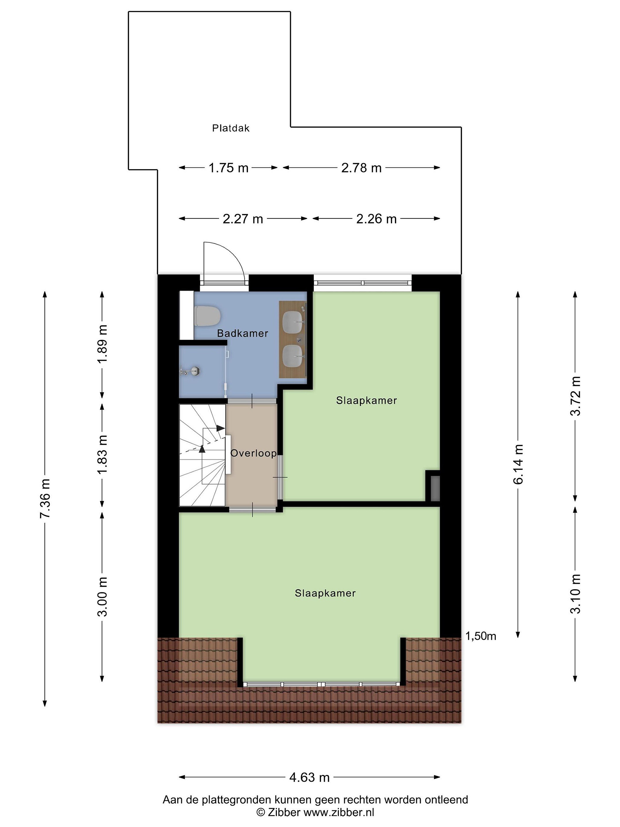 Vanuit de badkamer geeft een deur toegang tot het platte dak waar ook nog een flink dakterras gerealiseerd kan worden als je er een reling plaatst.
