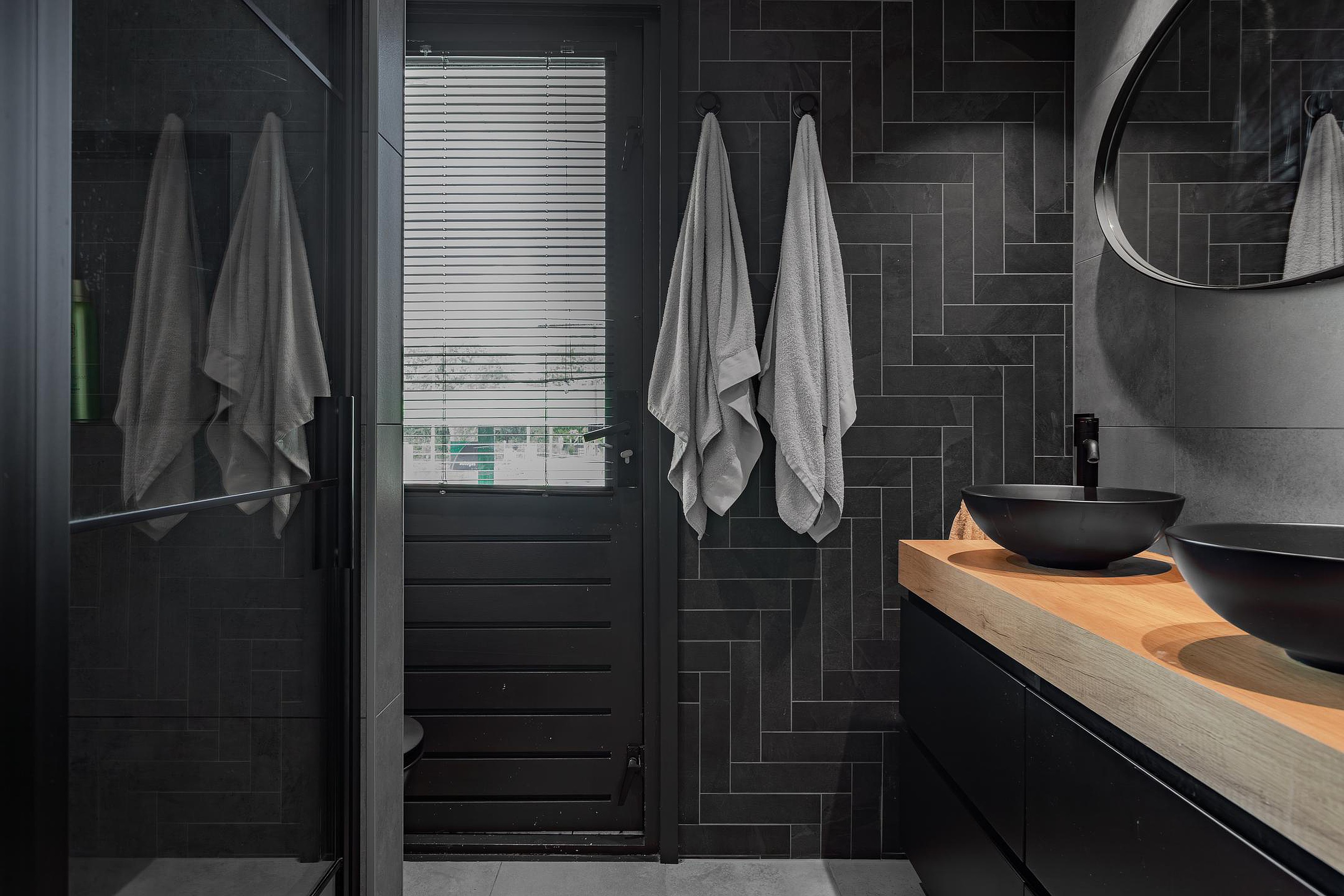 In 2022 is deze trendy badkamer met modern betegelde wanden en vloer met vloerverwarming ook meegenomen in de verbouwing. Het is echt een pareltje geworden met een wastafelmeubel met 2 waskommen, 4 laden en een grote spiegel, een 2e wandcloset, inbouwspots, mechanische afzuiger en een douchehoek met glazen deur, thermostaatkraan met hand- en tegendouche, drainafvoer en een koofje voor de shampoo.
