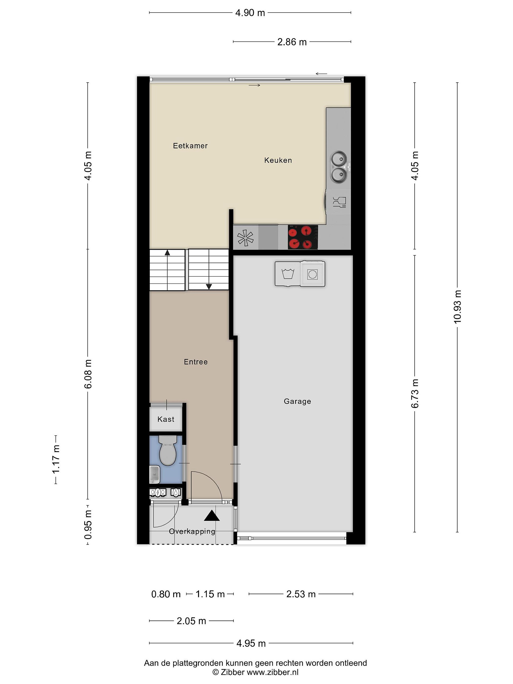 Parkeren kan op eigen terrein voor de garagedeur. Achter de voordeur is de tussenhal met een lichte tegelvloer en granol gestuukte wanden.