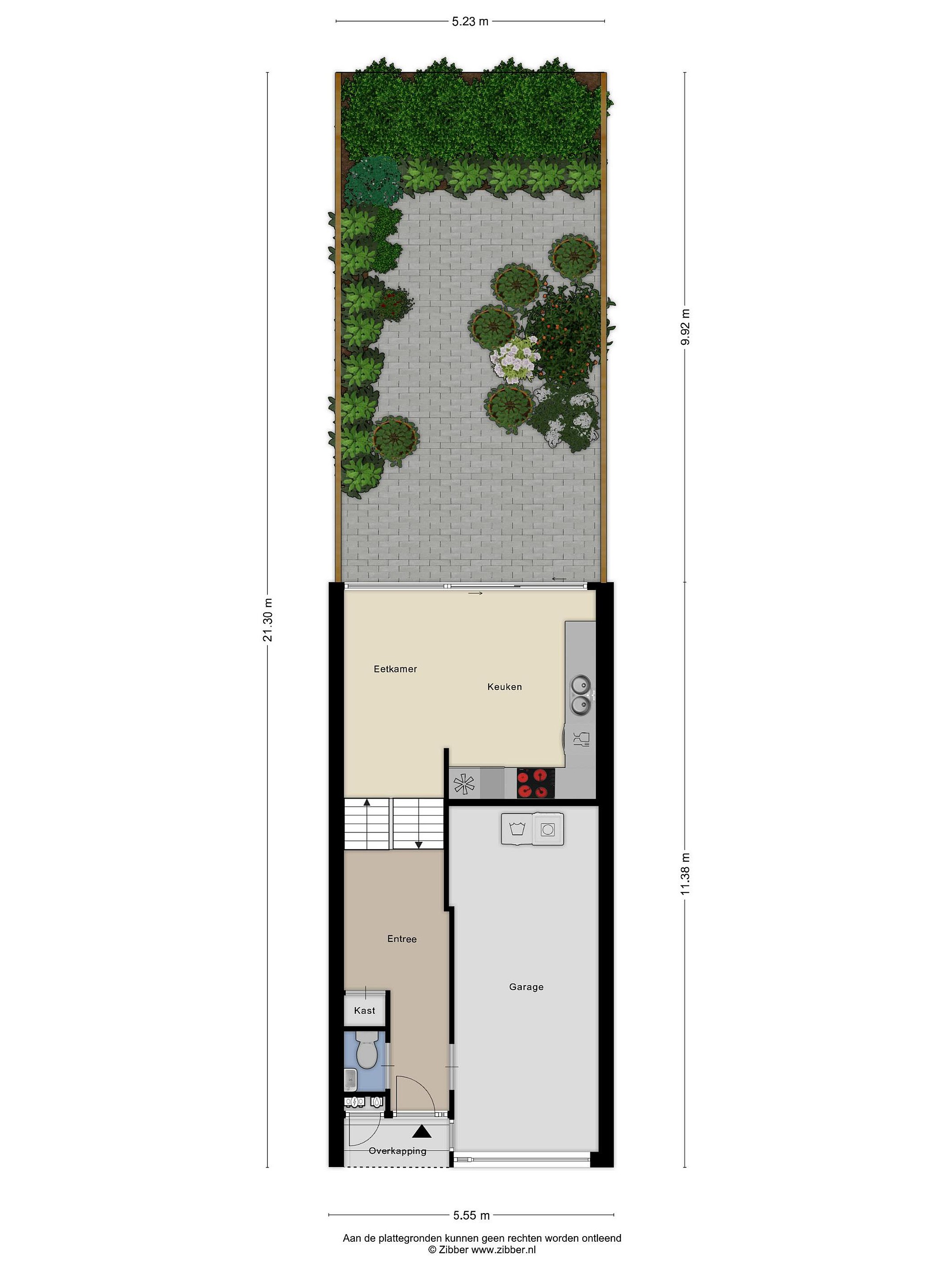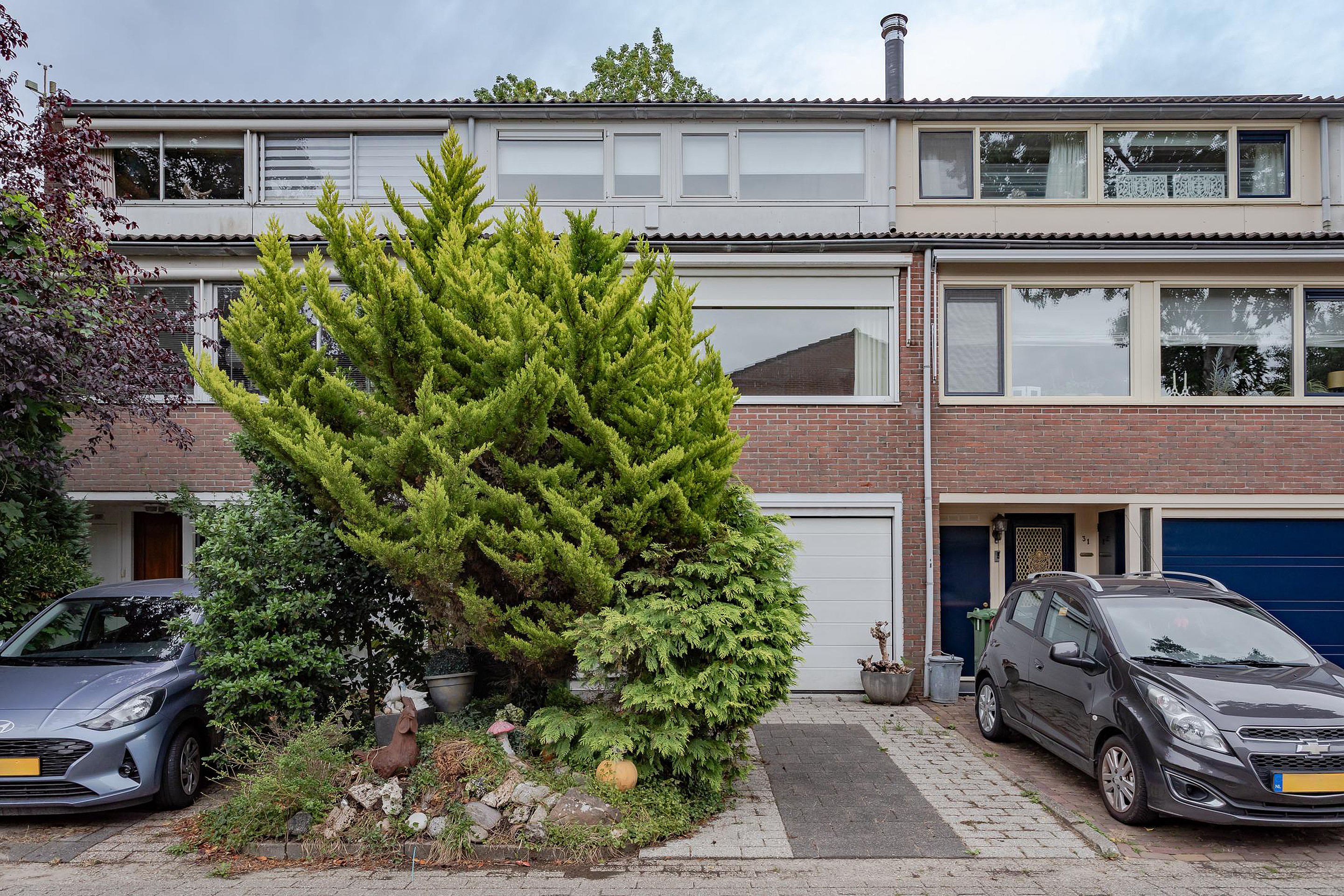 Inpandig te bereiken garage met een elektrisch te bedienen en geïsoleerde segmentendeur. Tegen het plafond zitten asbest platen wat bij de bouw een verplichte voorziening was. In de garage zit de wasmachine- en drogeraansluiting.