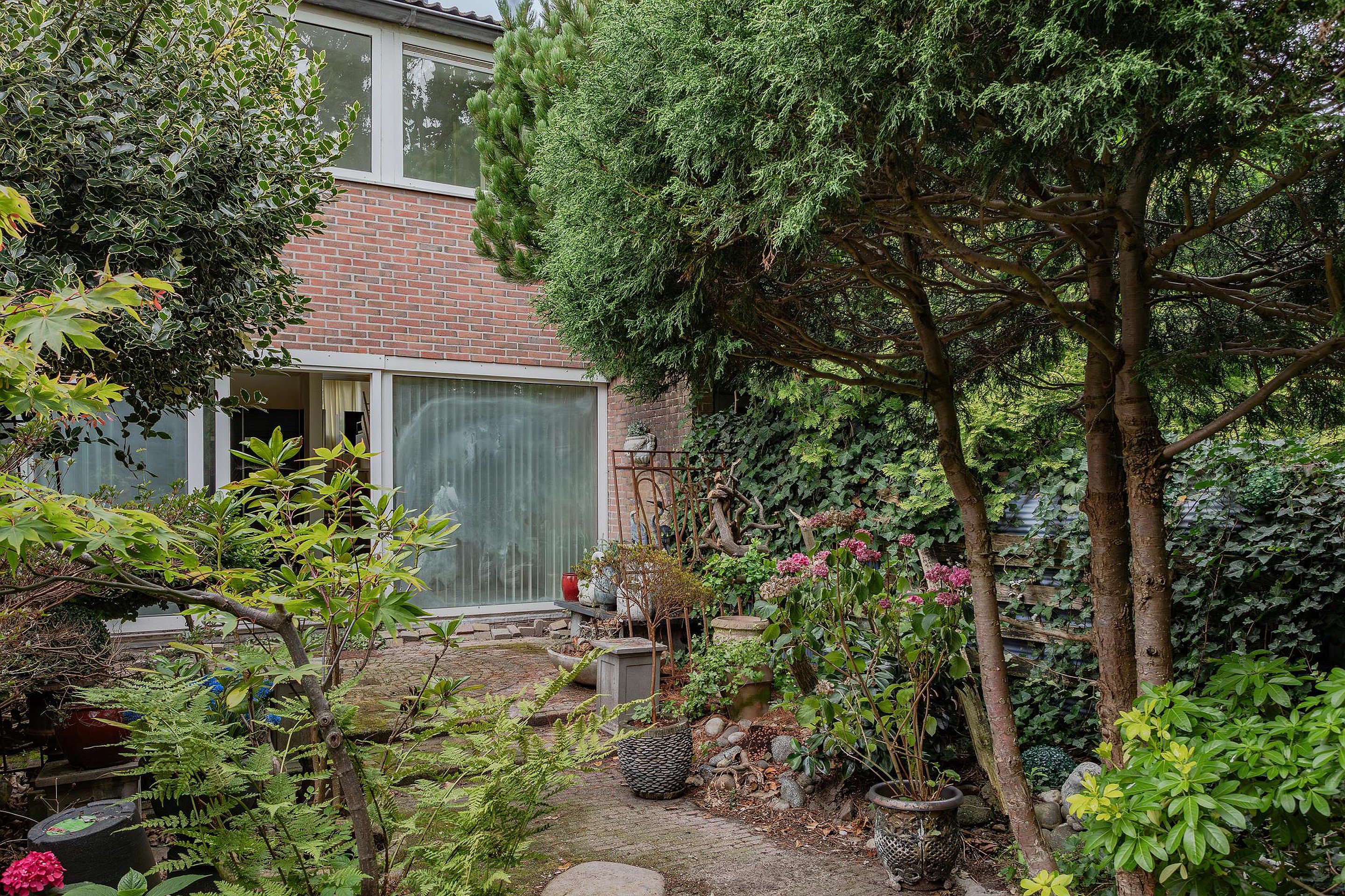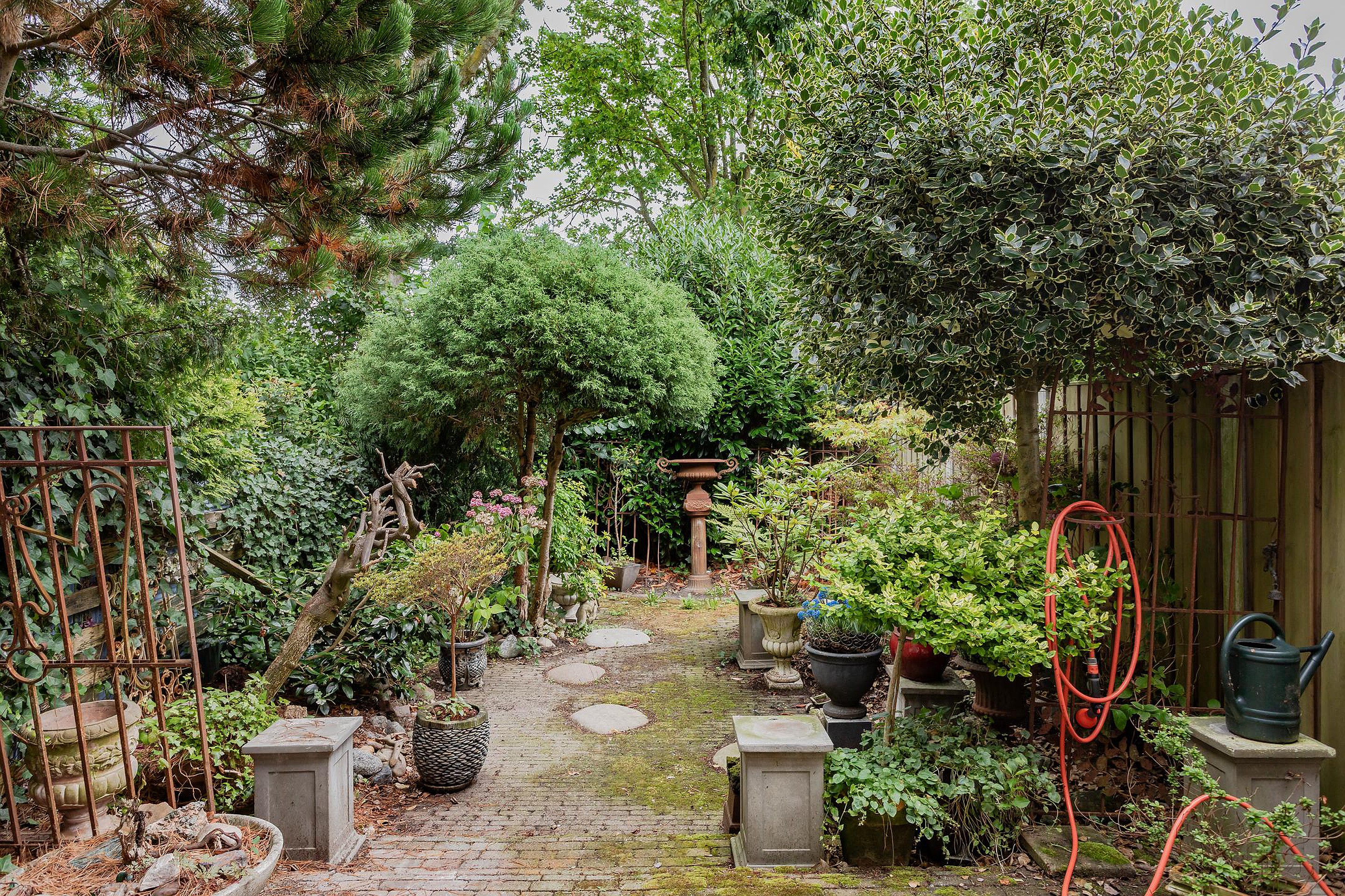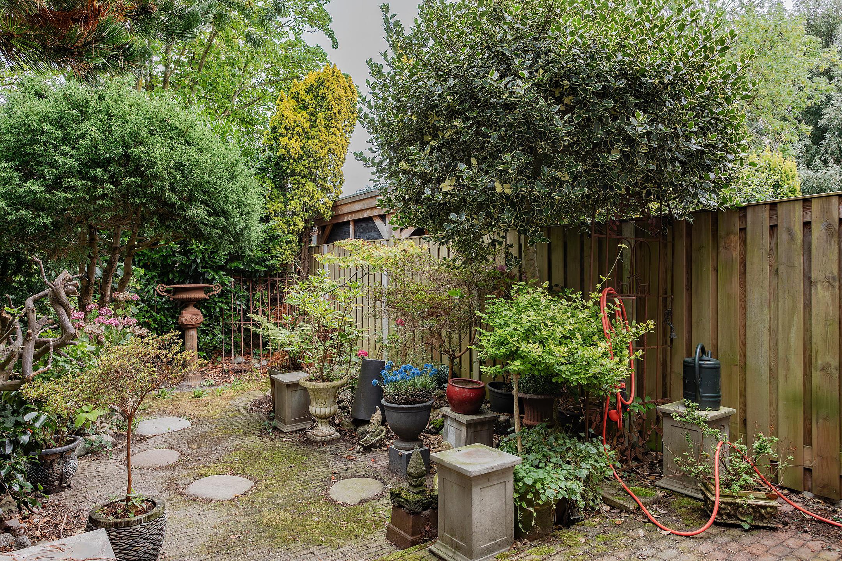 Vanuit de keuken heeft u via de schuifpui toegang tot de gesloten, hele groene en deels bestrate tuin. Achter de woning loopt een fietspad waardoor er geen directe achterburen zijn. Er is een buitenkraan en veel privacy. Heerlijke tuin om de dag op te starten met een kopje koffie!