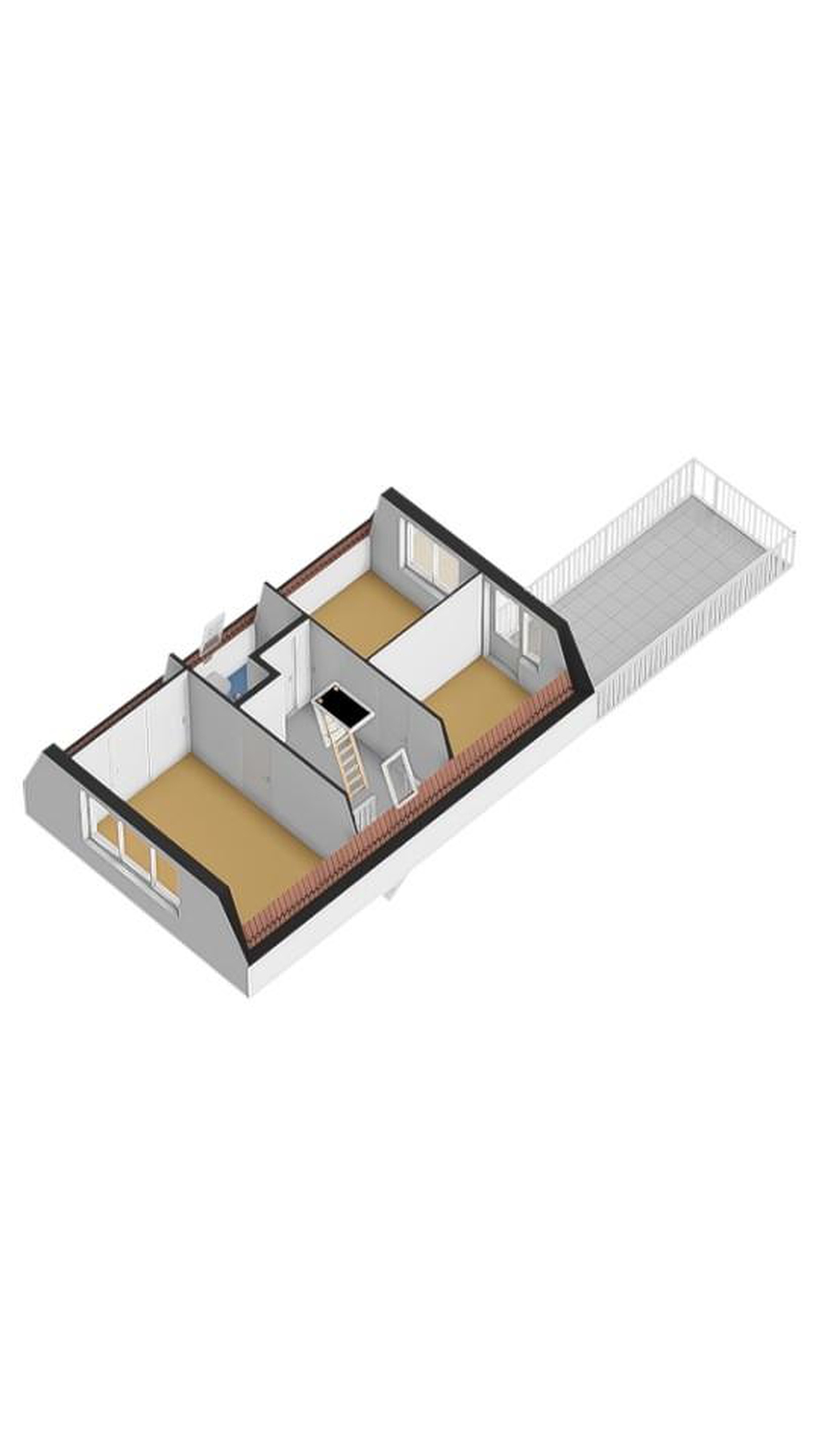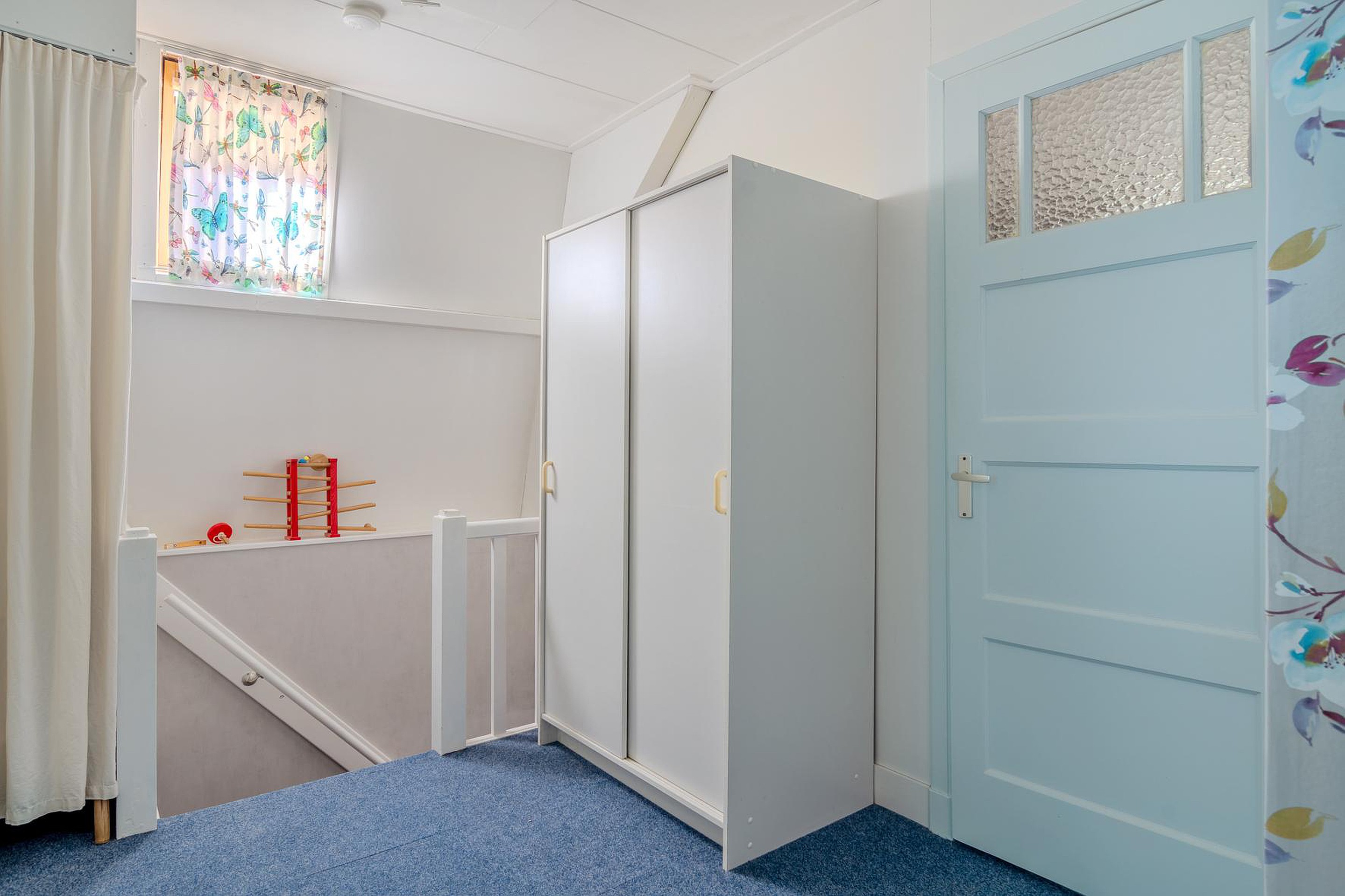 Op de eerste verdieping heeft dit huis een ruime overloop, 3 slaapkamers, waarvan 1 toegang heeft naar het dakterras, de nette badkamer met douche en toilet en middels een vlizotrap is er toegang tot de bergzolder over de hele verdieping.