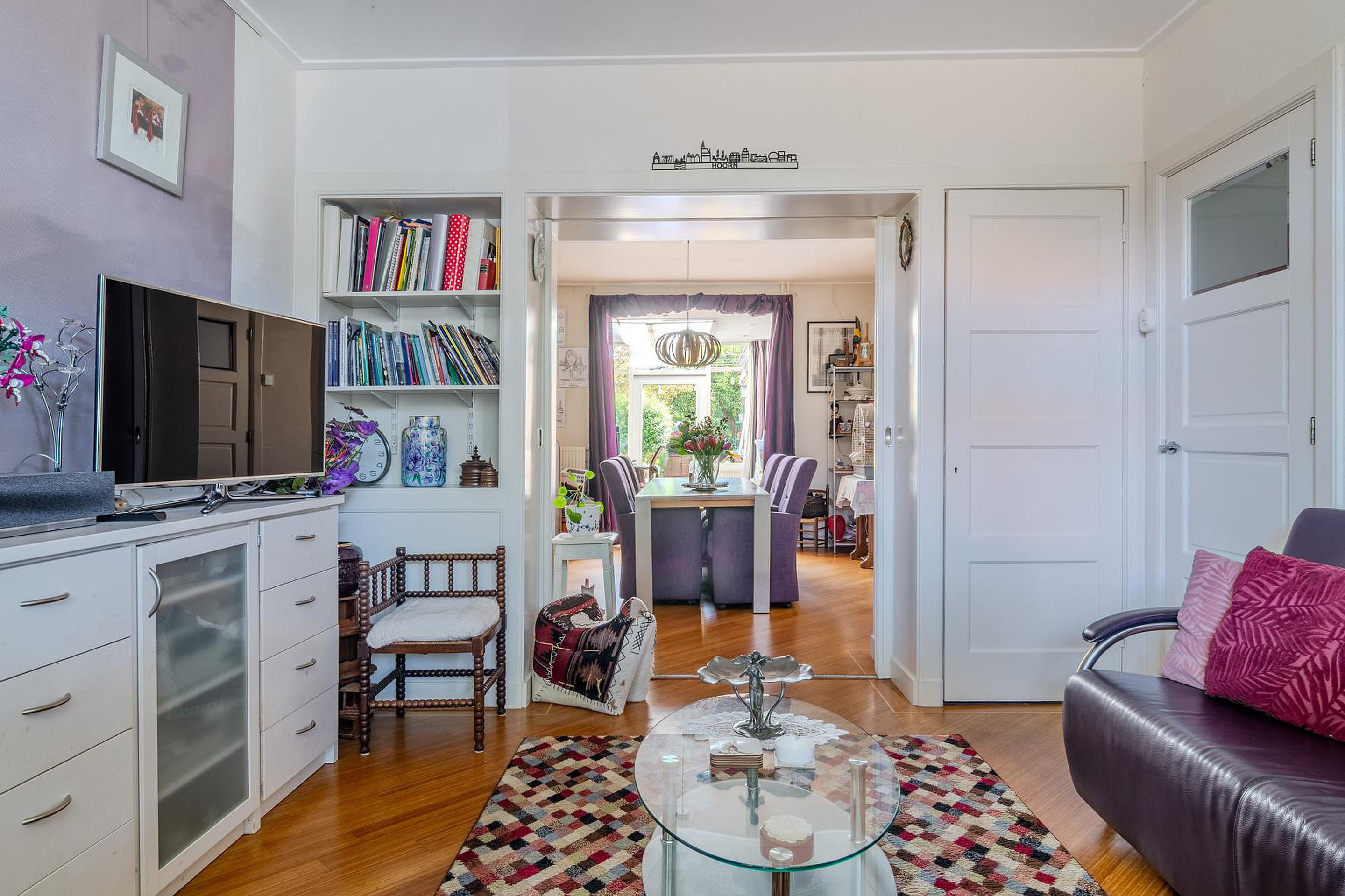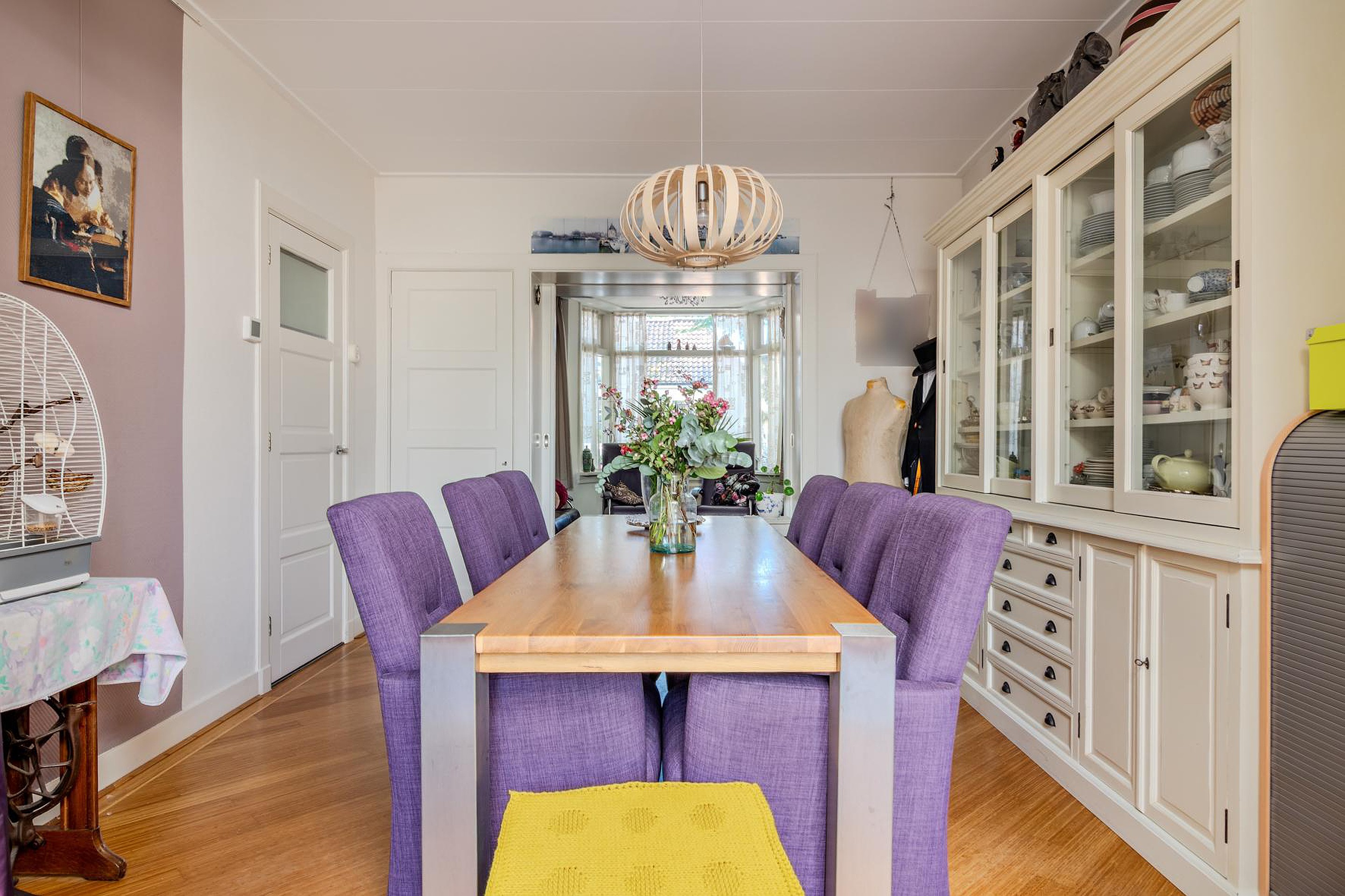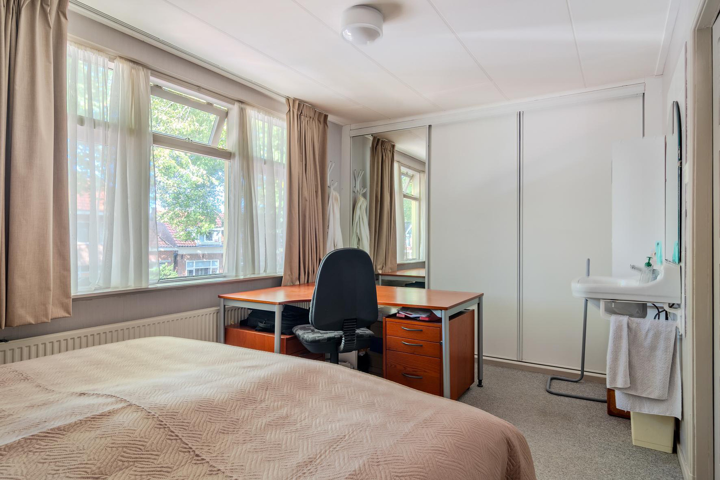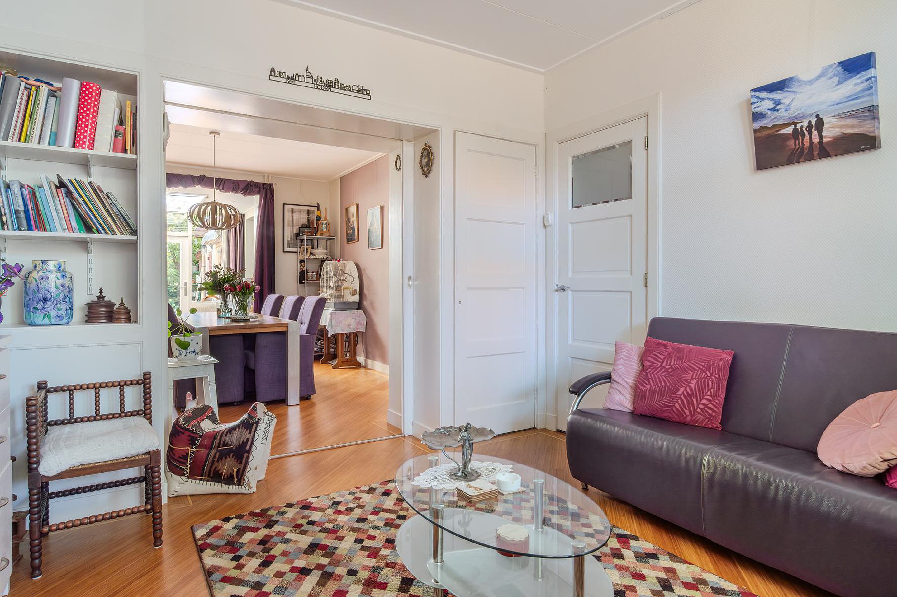 Deze huizen staan bekend om hun fijne nostalgische sfeer. Dat vind je ook in deze woning terug. De ruime hal met hoteldeur naar de gang bijvoorbeeld, waar je toegang krijgt tot de diverse vertrekken op de begane grond en de erker aan de voorzijde. Daarnaast is er een kamer en suite met originele schuifdeuren en verder een aanbouw met lichtstraat en toegang naar de achtertuin, een half open nette keuken, een bijkeuken met toegang naar de achtertuin, een extra kamer te gebruiken als werkkamer/ hobbykamer/slaapkamer en aangebouwd vind je daarnaast nog een tussenberging en fietsenberging.