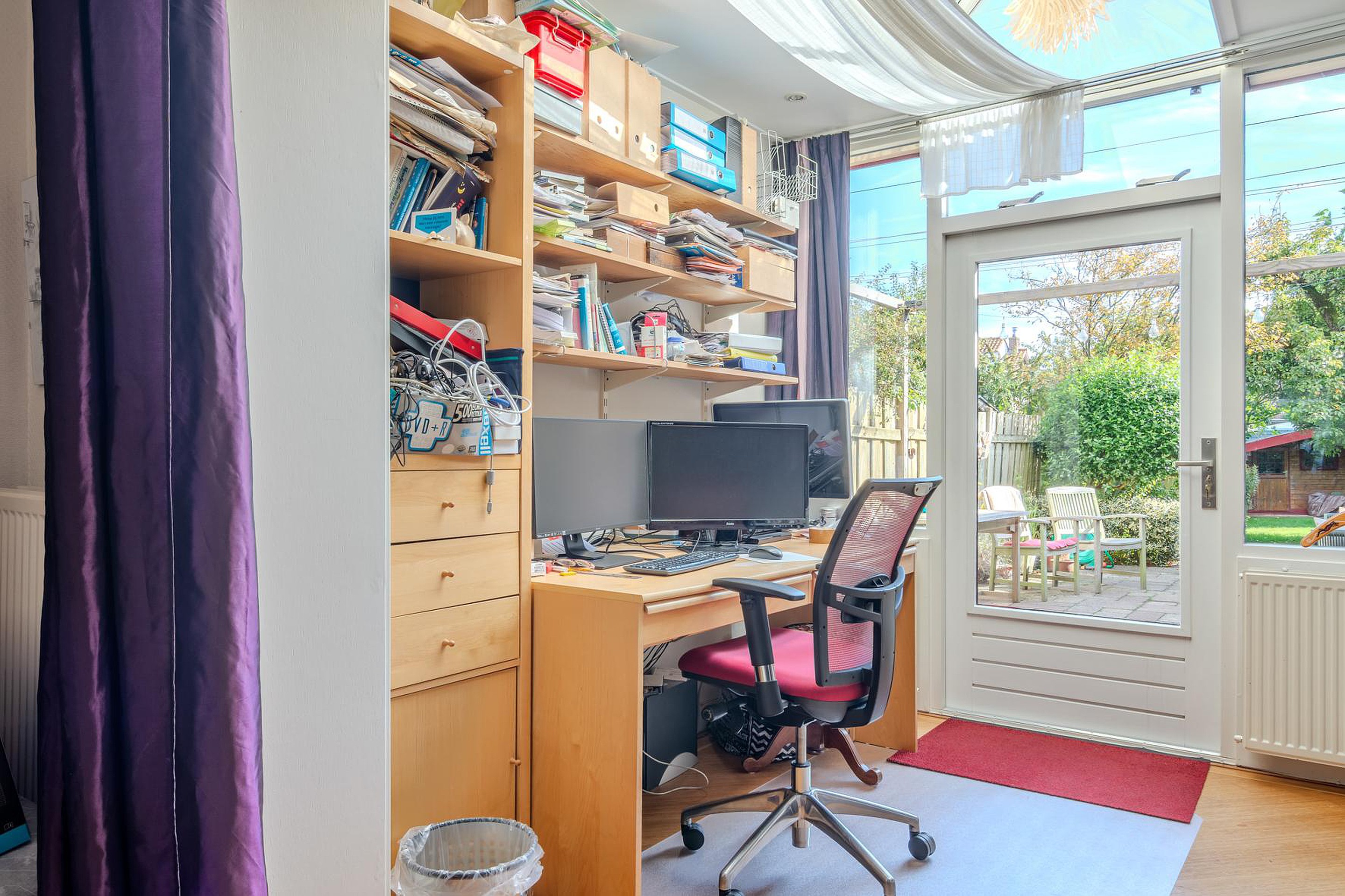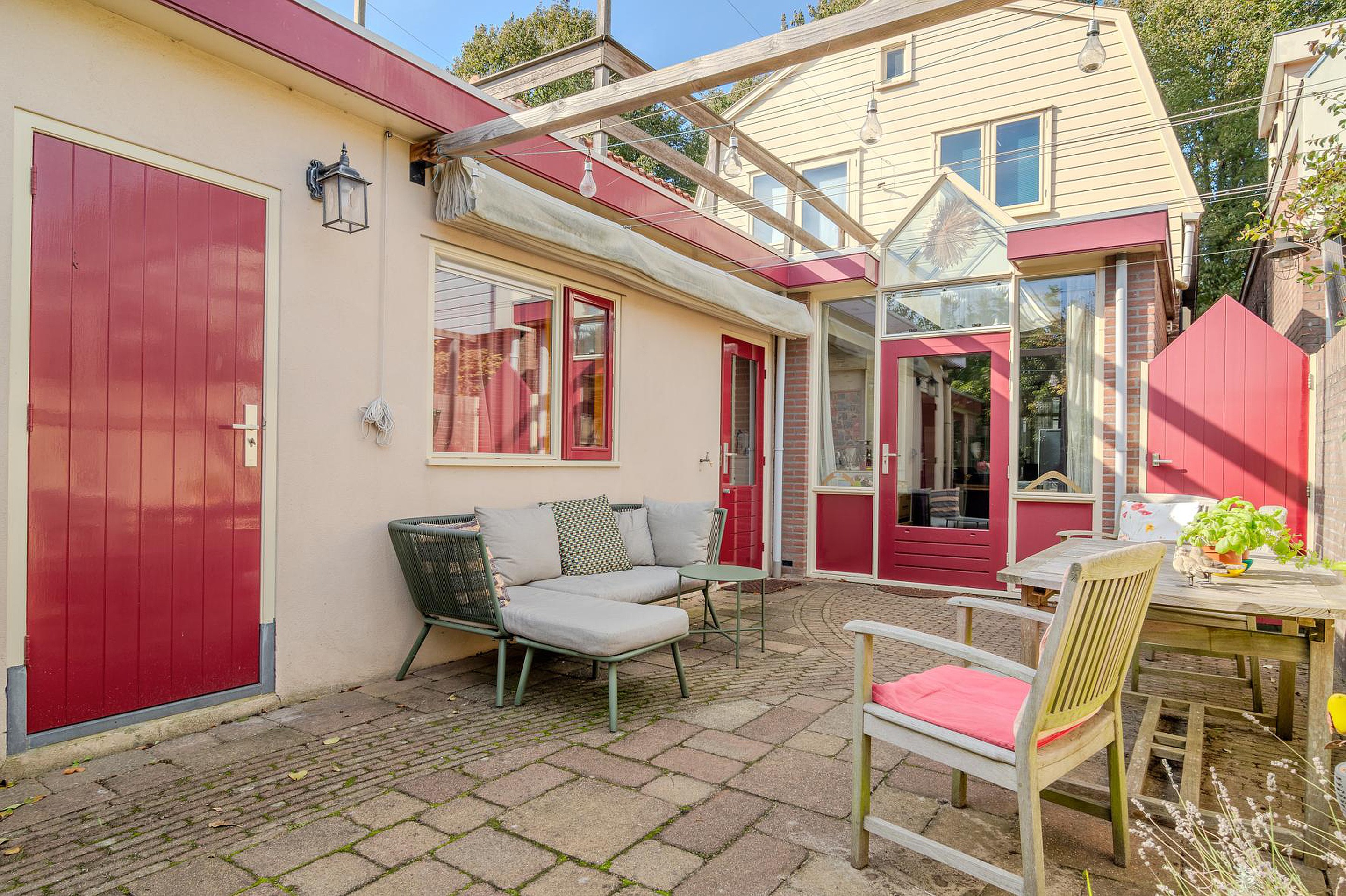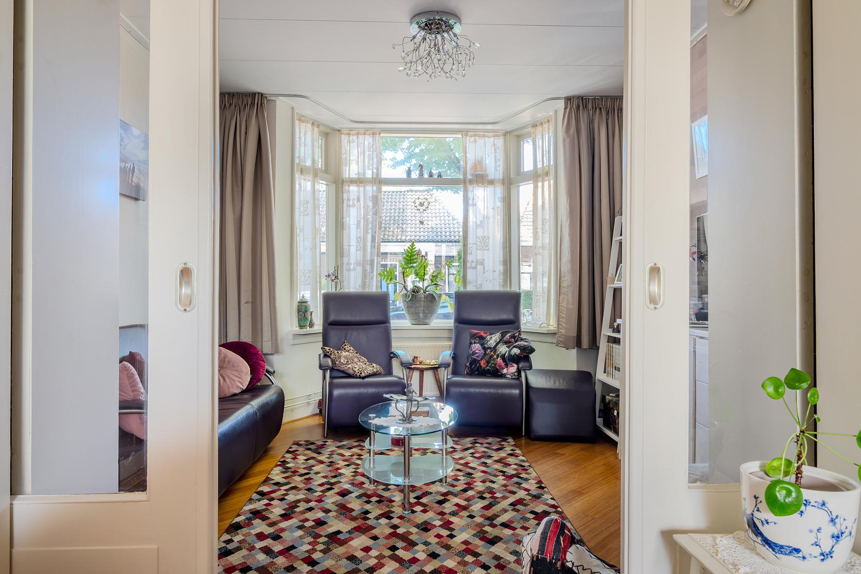 Deze huizen staan bekend om hun fijne nostalgische sfeer. Dat vind je ook in deze woning terug. De ruime hal met hoteldeur naar de gang bijvoorbeeld, waar je toegang krijgt tot de diverse vertrekken op de begane grond en de erker aan de voorzijde. Daarnaast is er een kamer en suite met originele schuifdeuren en verder een aanbouw met lichtstraat en toegang naar de achtertuin, een half open nette keuken, een bijkeuken met toegang naar de achtertuin, een extra kamer te gebruiken als werkkamer/ hobbykamer/slaapkamer en aangebouwd vind je daarnaast nog een tussenberging en fietsenberging.
