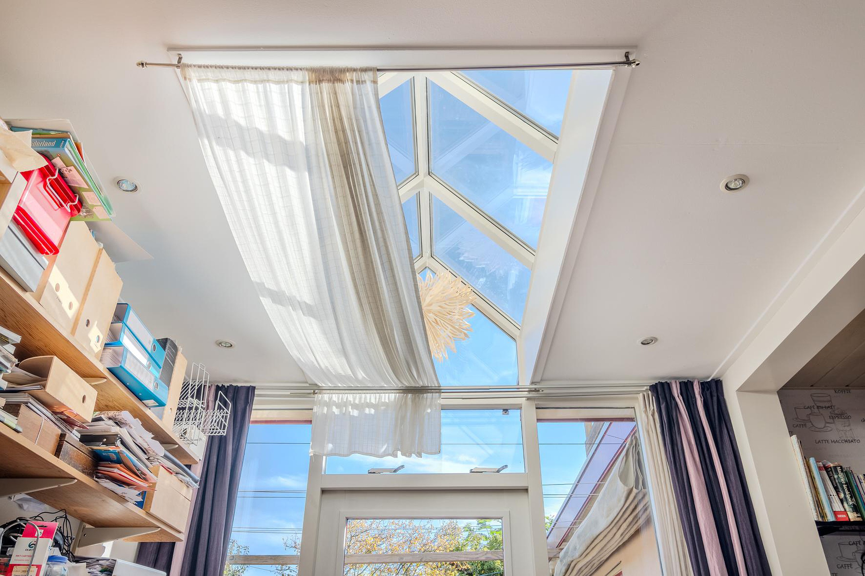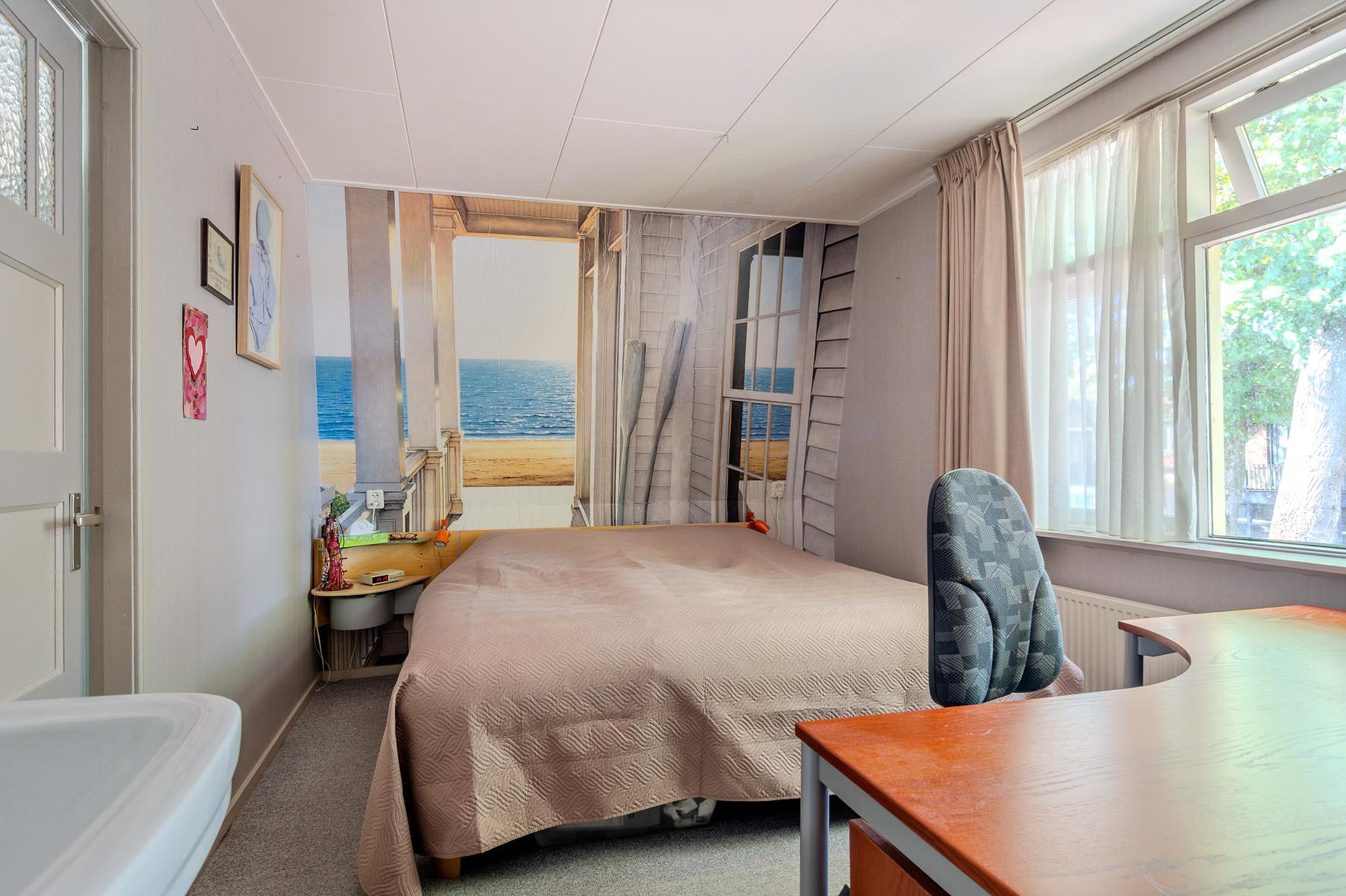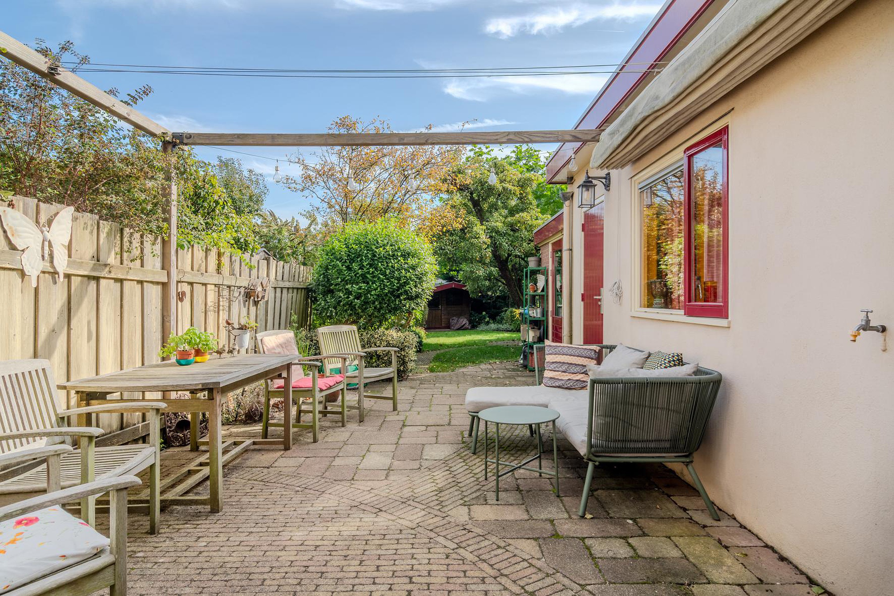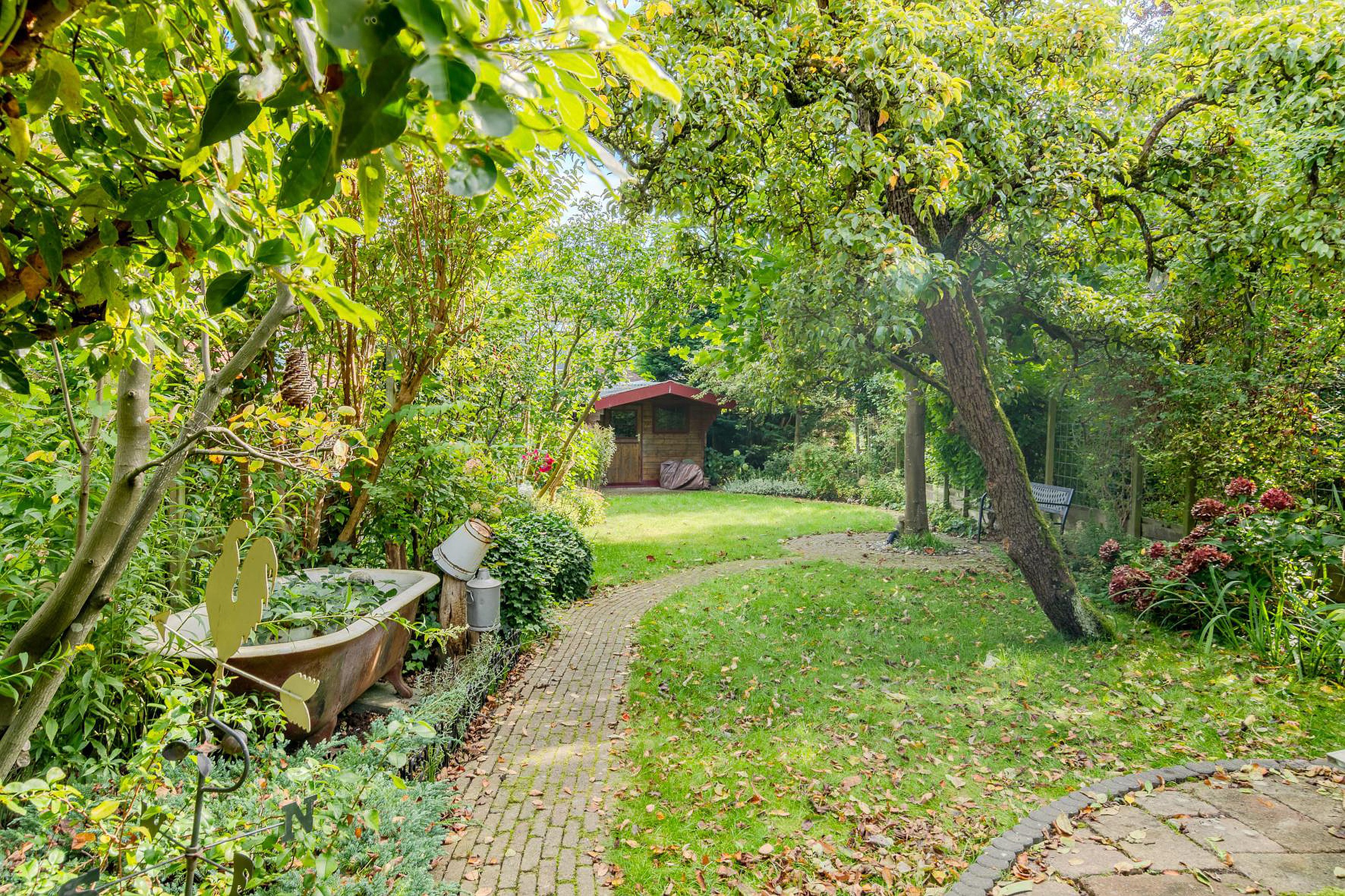 Deze huizen staan bekend om hun fijne nostalgische sfeer. Dat vind je ook in deze woning terug. De ruime hal met hoteldeur naar de gang bijvoorbeeld, waar je toegang krijgt tot de diverse vertrekken op de begane grond en de erker aan de voorzijde. Daarnaast is er een kamer en suite met originele schuifdeuren en verder een aanbouw met lichtstraat en toegang naar de achtertuin, een half open nette keuken, een bijkeuken met toegang naar de achtertuin, een extra kamer te gebruiken als werkkamer/ hobbykamer/slaapkamer en aangebouwd vind je daarnaast nog een tussenberging en fietsenberging.