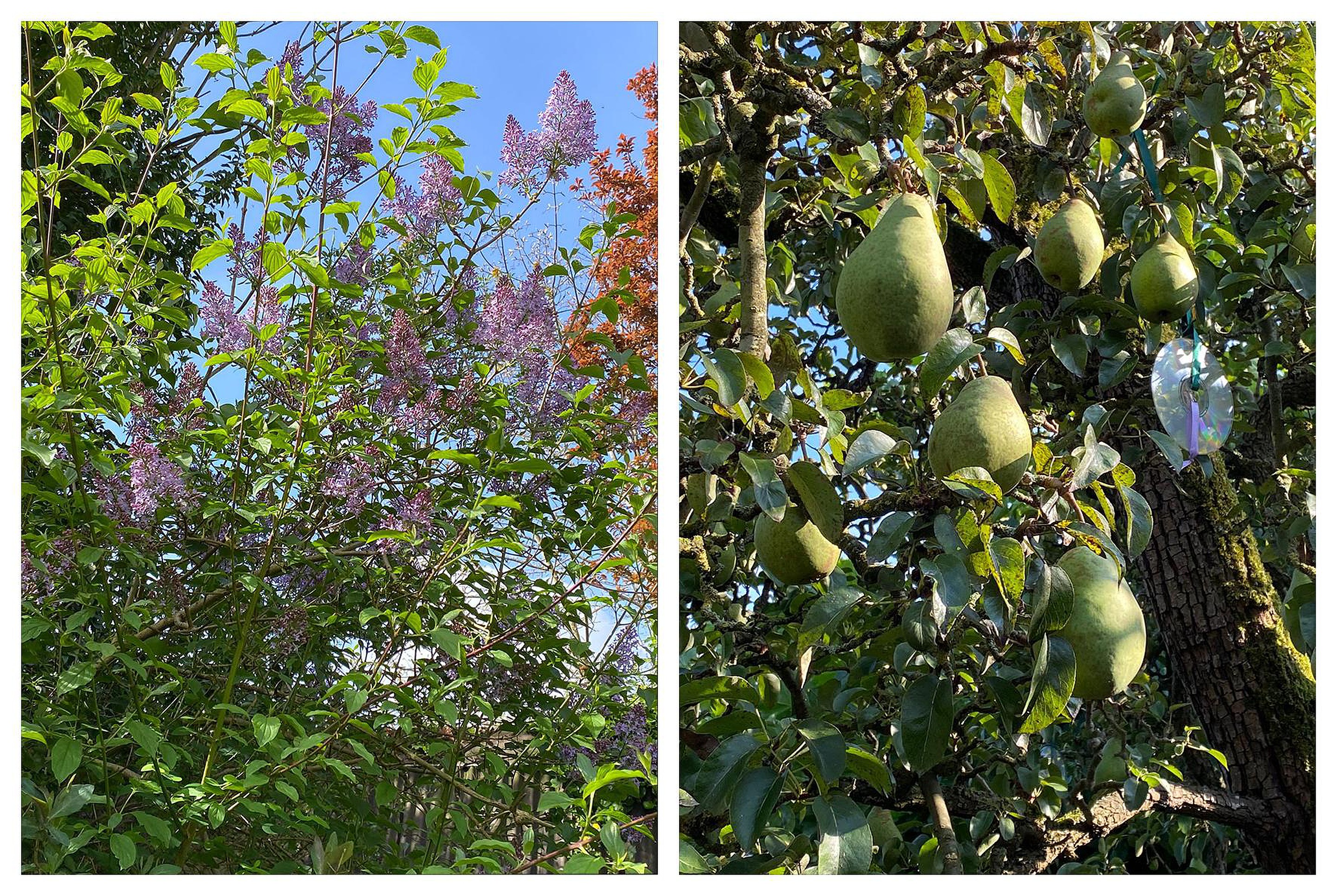 Het terras heeft een harmonica zonnewering, de diverse bomen bij het grasveld bieden genoeg schaduw op zonnige dagen. Er staat een oude hoogstam perenboom, deze handperen van het soort Legipont, geeft zo om het jaar een flinke oogst.