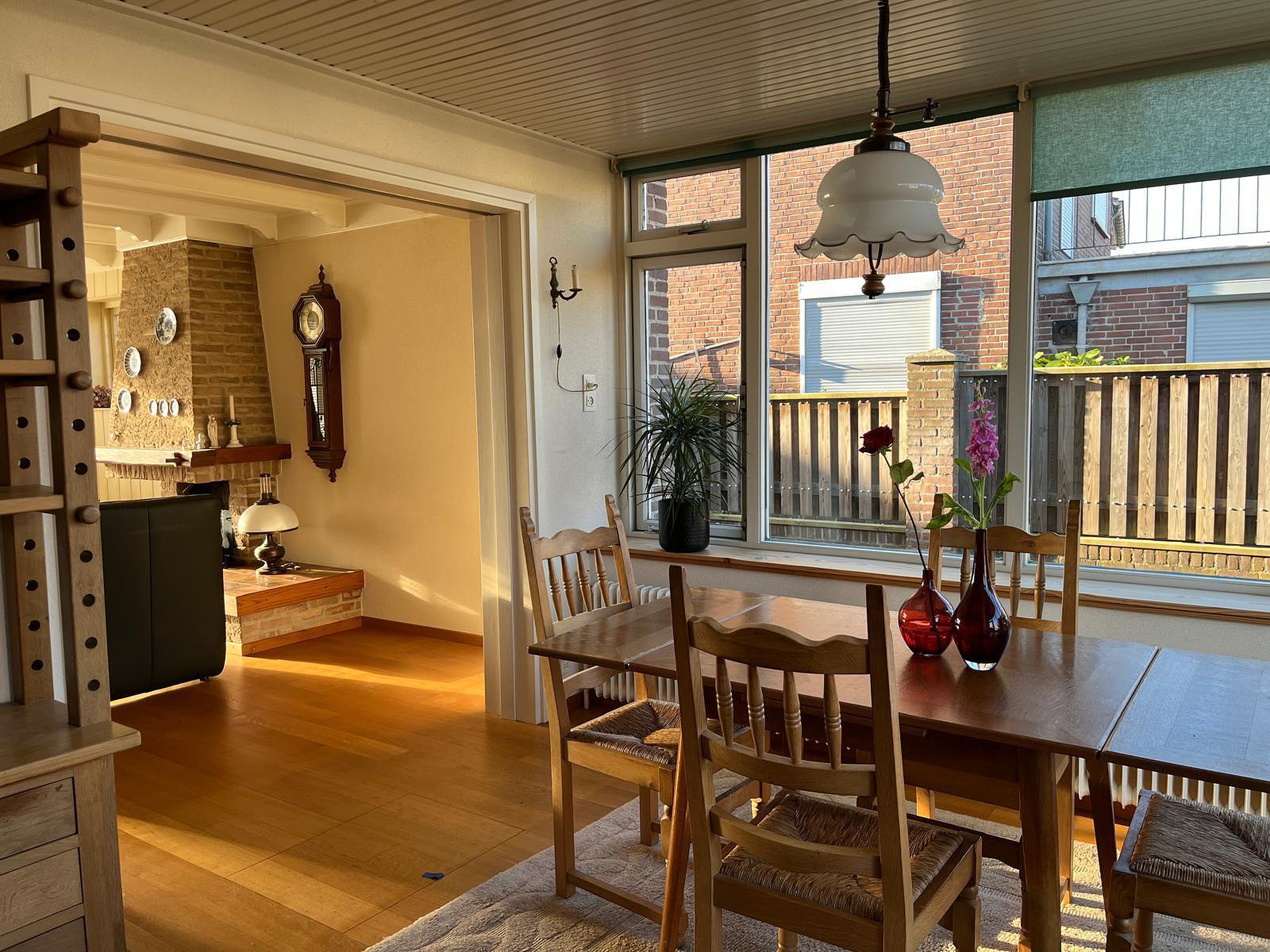 Er is doorgang naar de woonkamer met een volledig doorgelegde eiken parketvloer. Tevens doorgang naar de keuken en de badkamer.