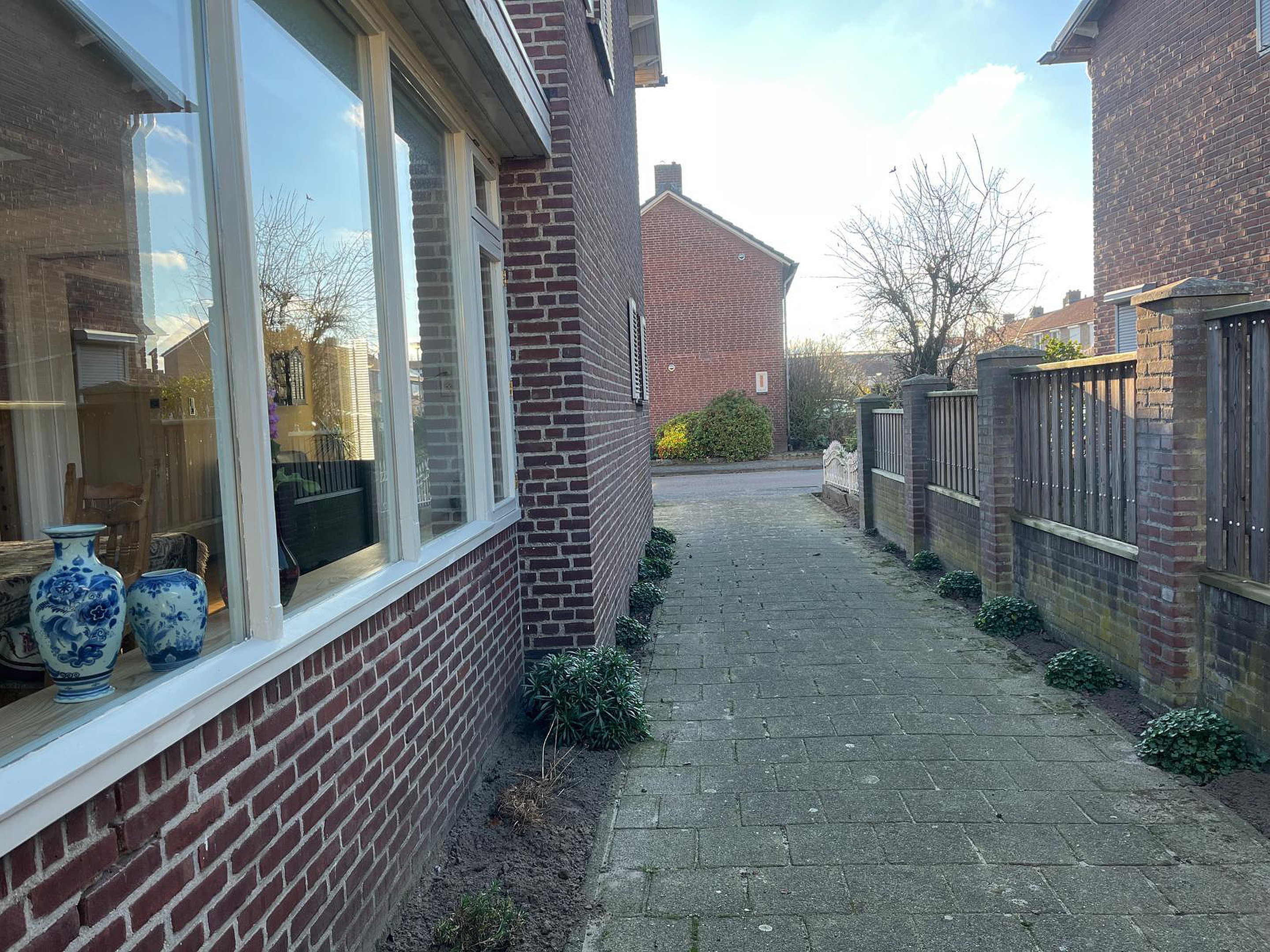 De beschutte achtertuin is te bereiken via de oprit en carport. De afscheidingen zijn geheel in eigendom. Deze staan op eigen grond.