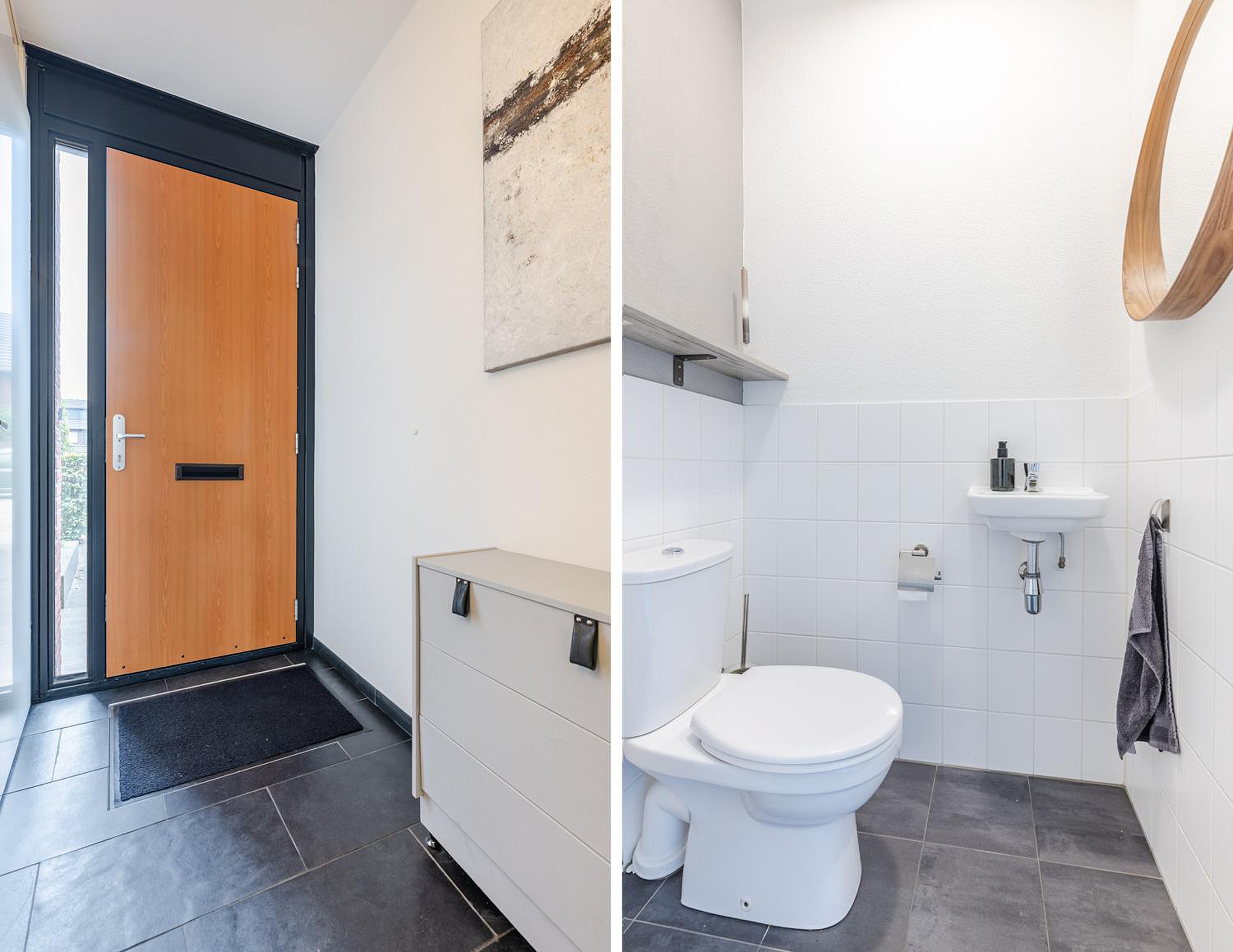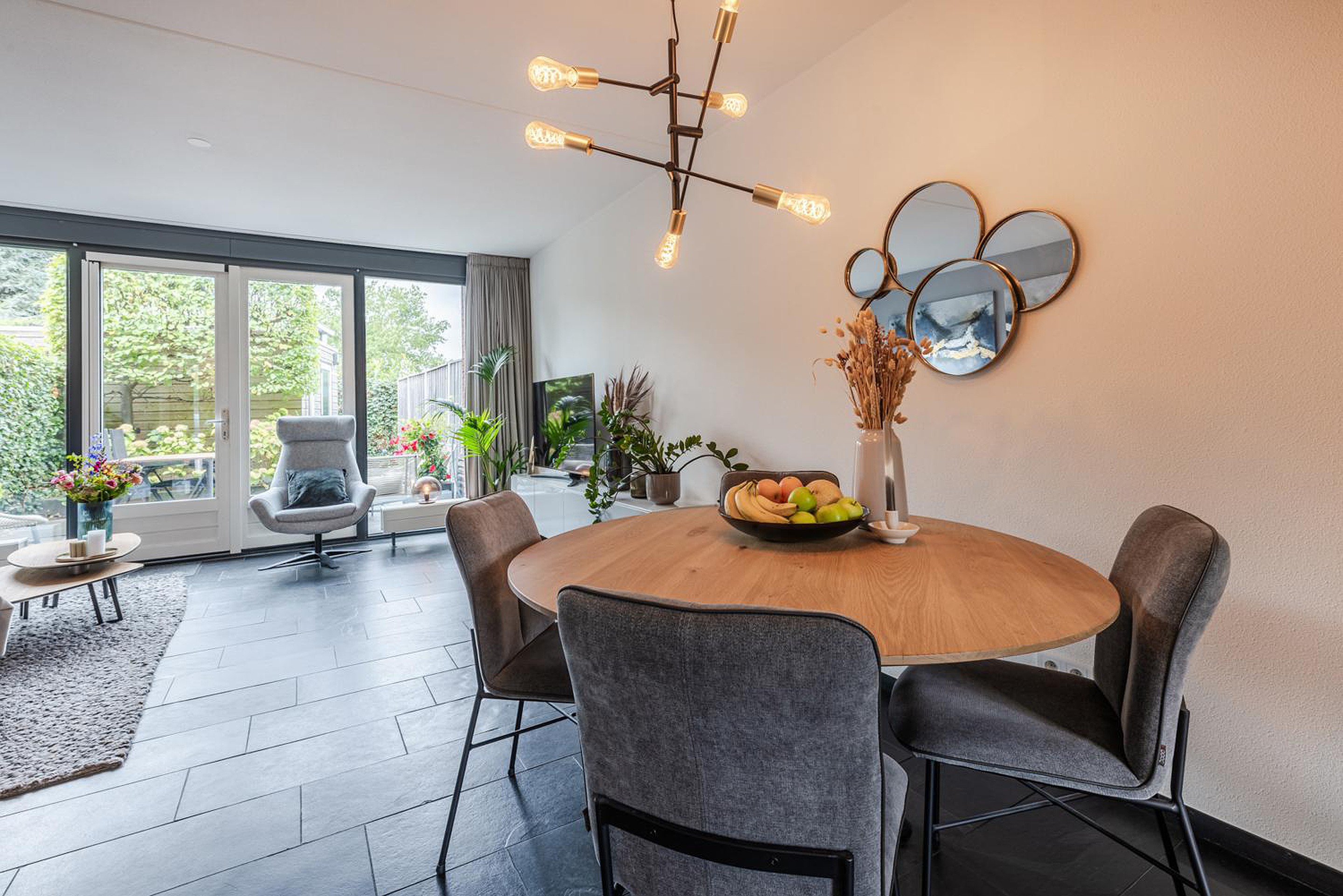 Begane grond: Hal, meterkast, trapopgang, toilet met fonteintje, tuingerichte woonkamer met grote glazen pui met openslaande deuren naar de tuin, provisiekast, open keuken is voorzien van een moderne inrichting voorzien van alle inbouw apparatuur waaronder een vaatwasser, oven, magnetron, inductiekookplaat, afzuigschouw, vriezer en koelkast. De gehele begane grond is voorzien van een leistenen plavuizen vloer met vloerverwarming.