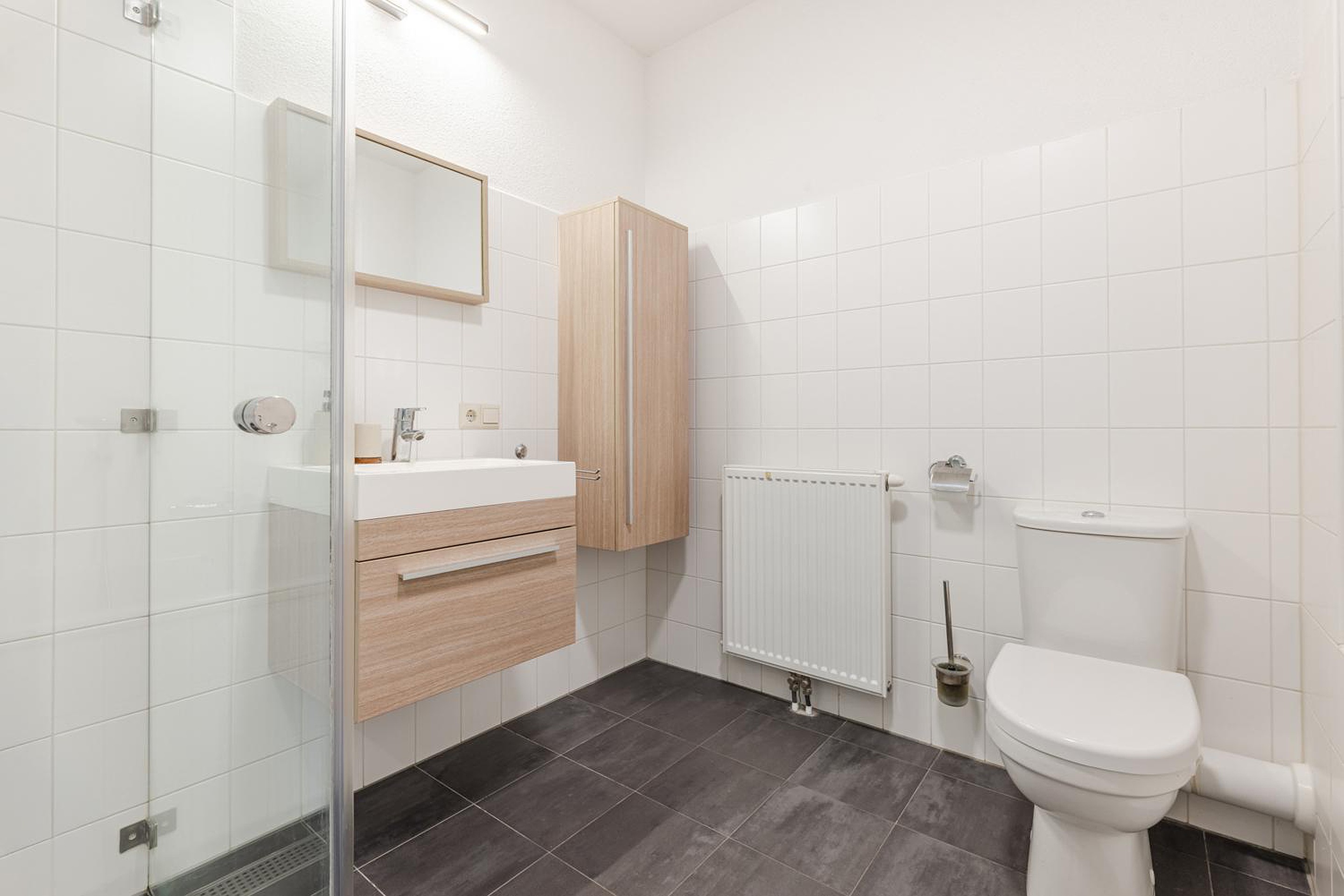 1e verdieping: overloop, 3 slaapkamers, badkamer voorzien van ligbad, douche, radiator, wastafelmeubel met kolomkast en 2e toilet.