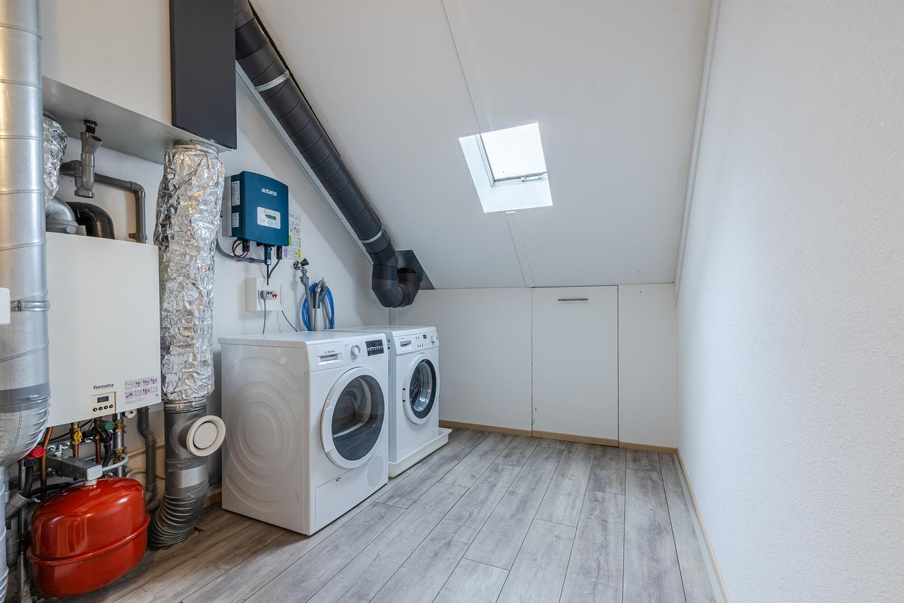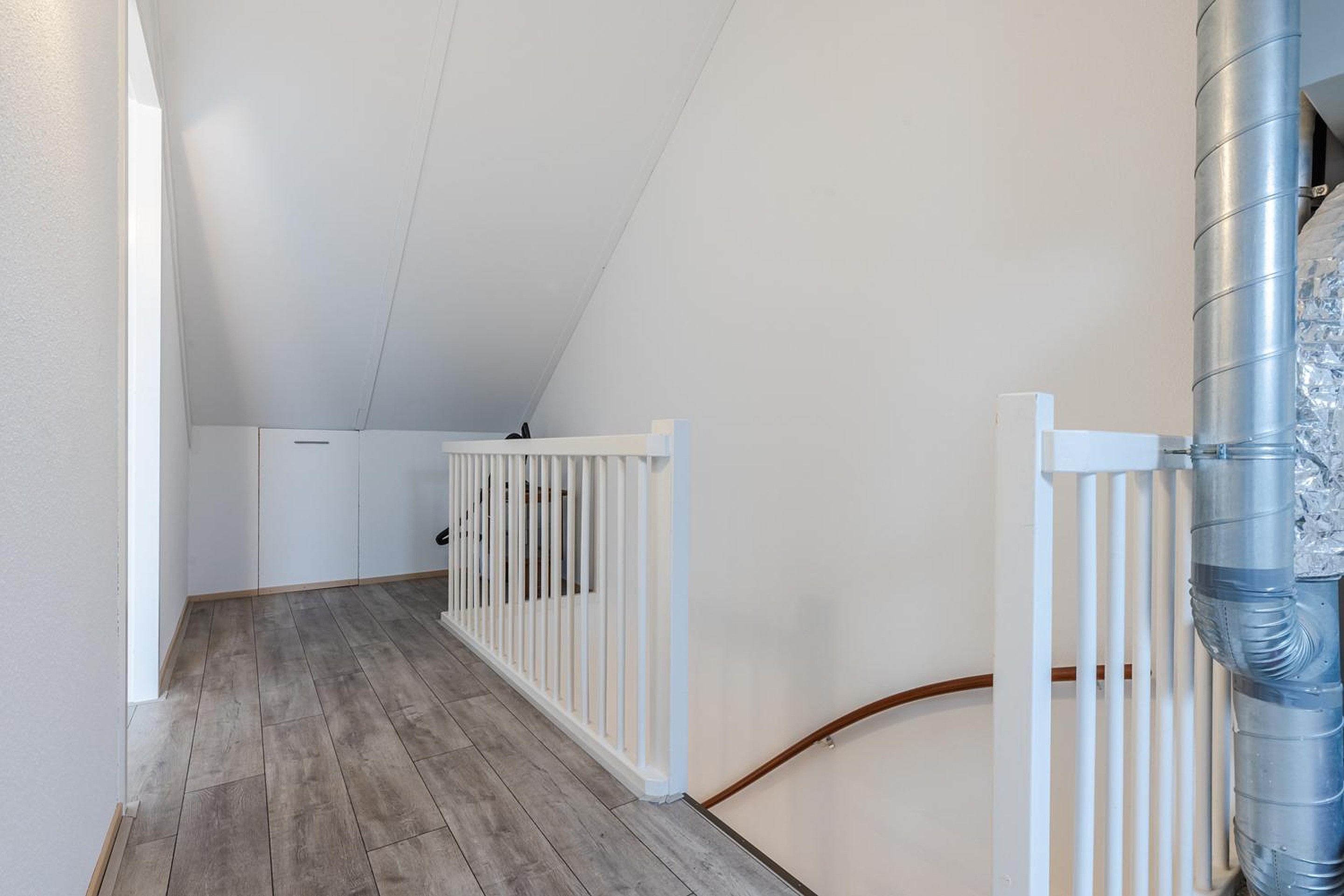 2e verdieping: via vaste trap bereikbare verdieping, overloop voorzien van dakraam, wasmachineaansluiting en cv-opstelling, aansluitend royale 4e slaapkamer voorzien van dakraam. Voorts veel bergruimte aan voor- en achterzijde achter knieschotten.
