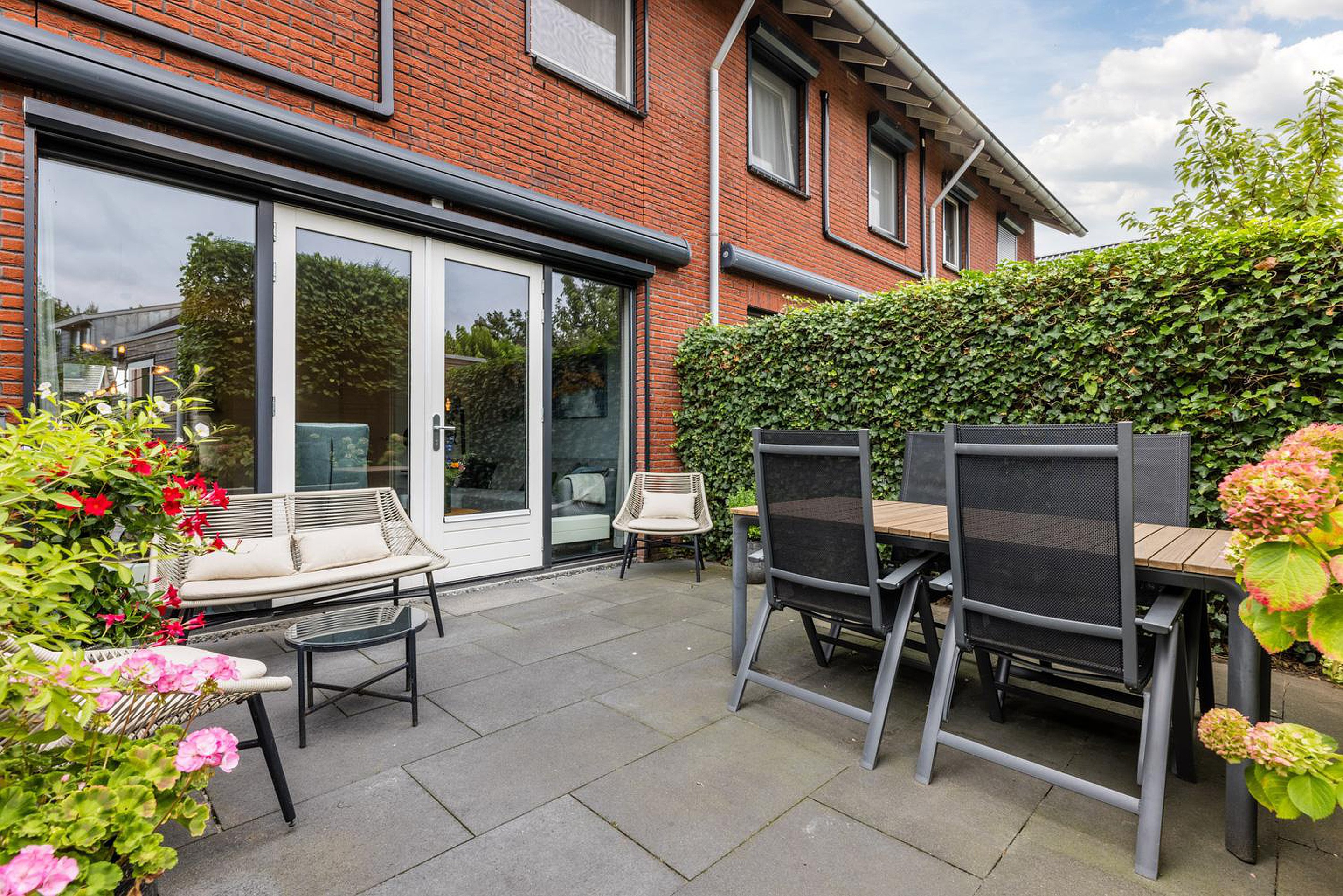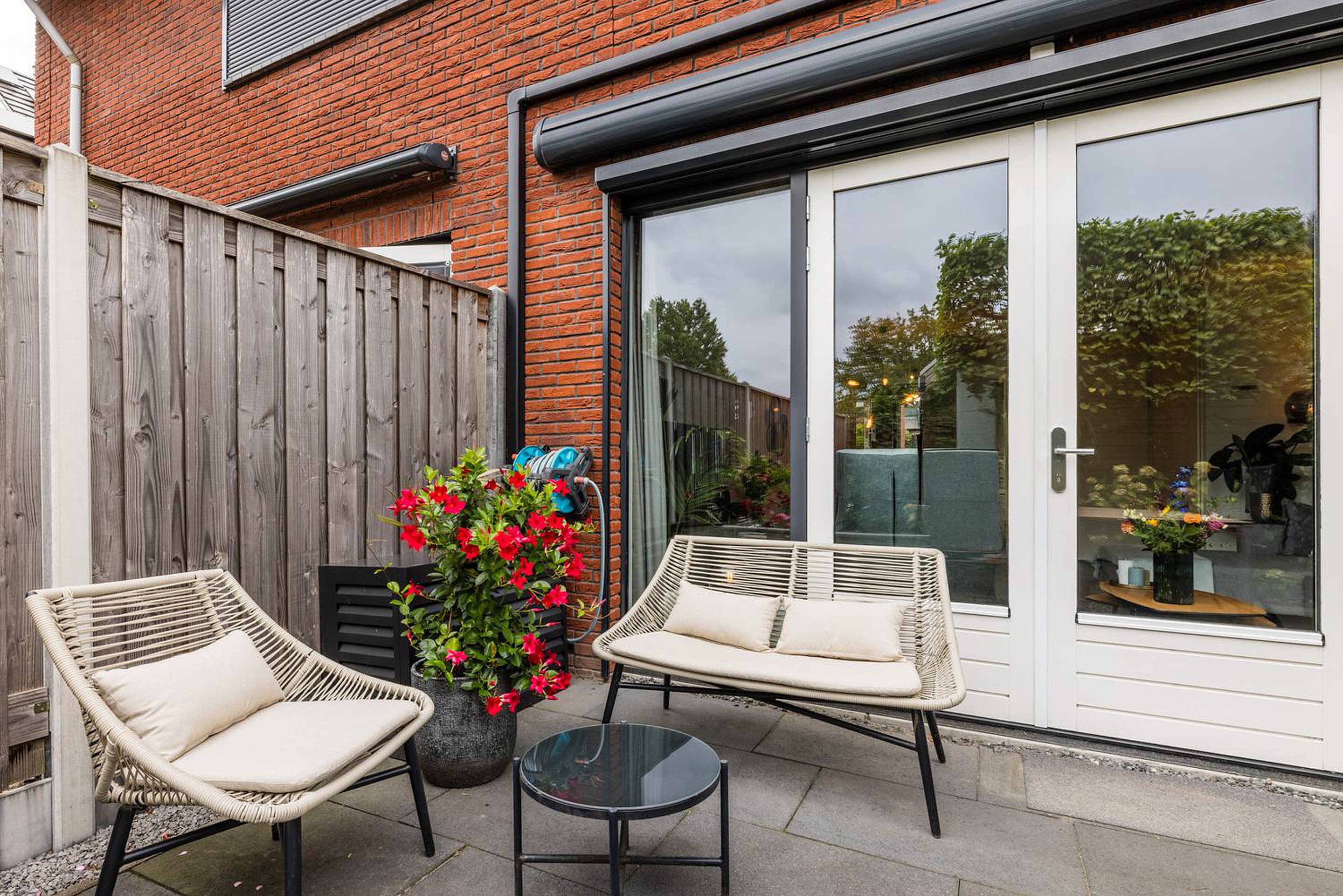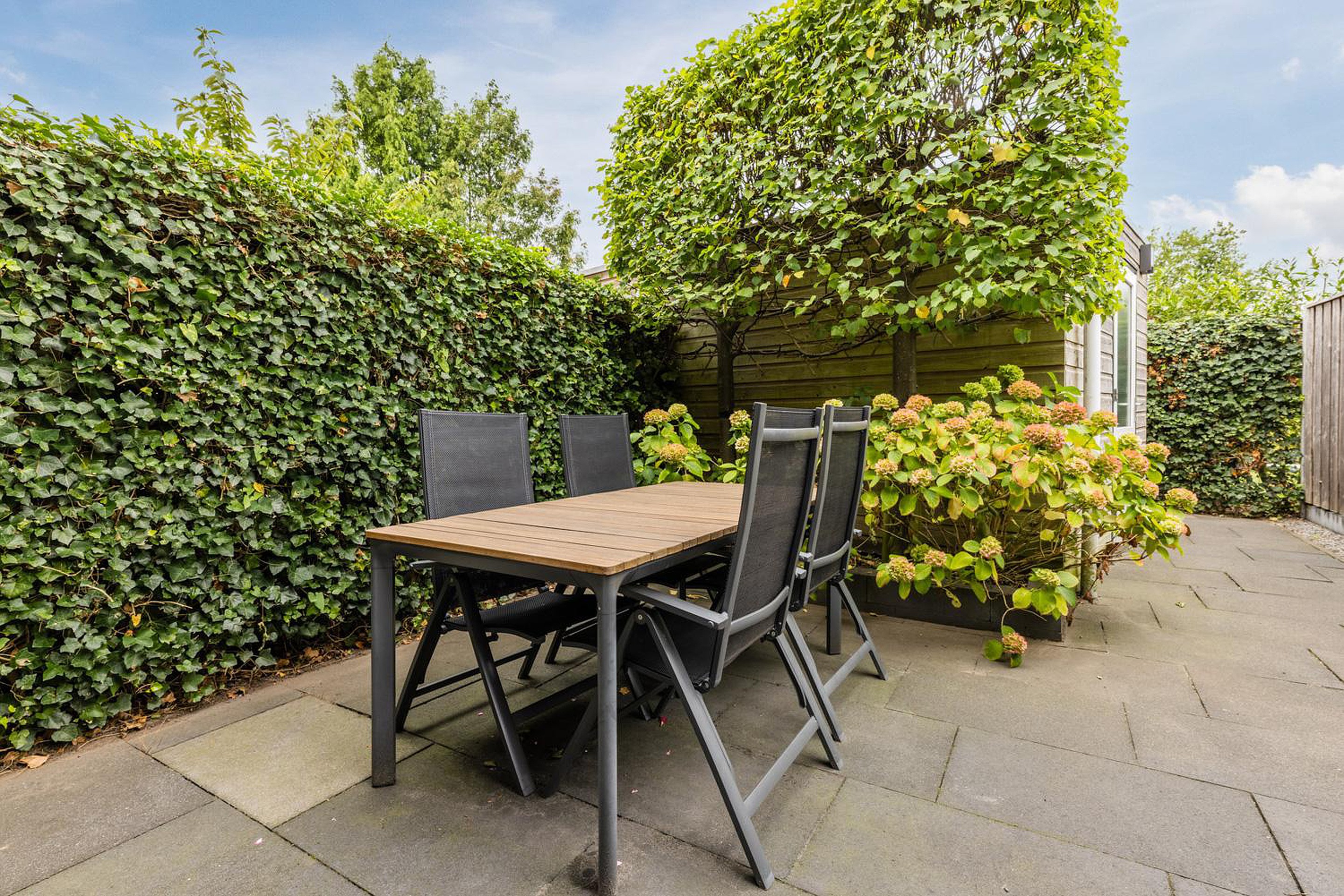 - achtertuin (NW) met achterom, elektrisch bedienbaar zonnescherm, veel zon en privacy;