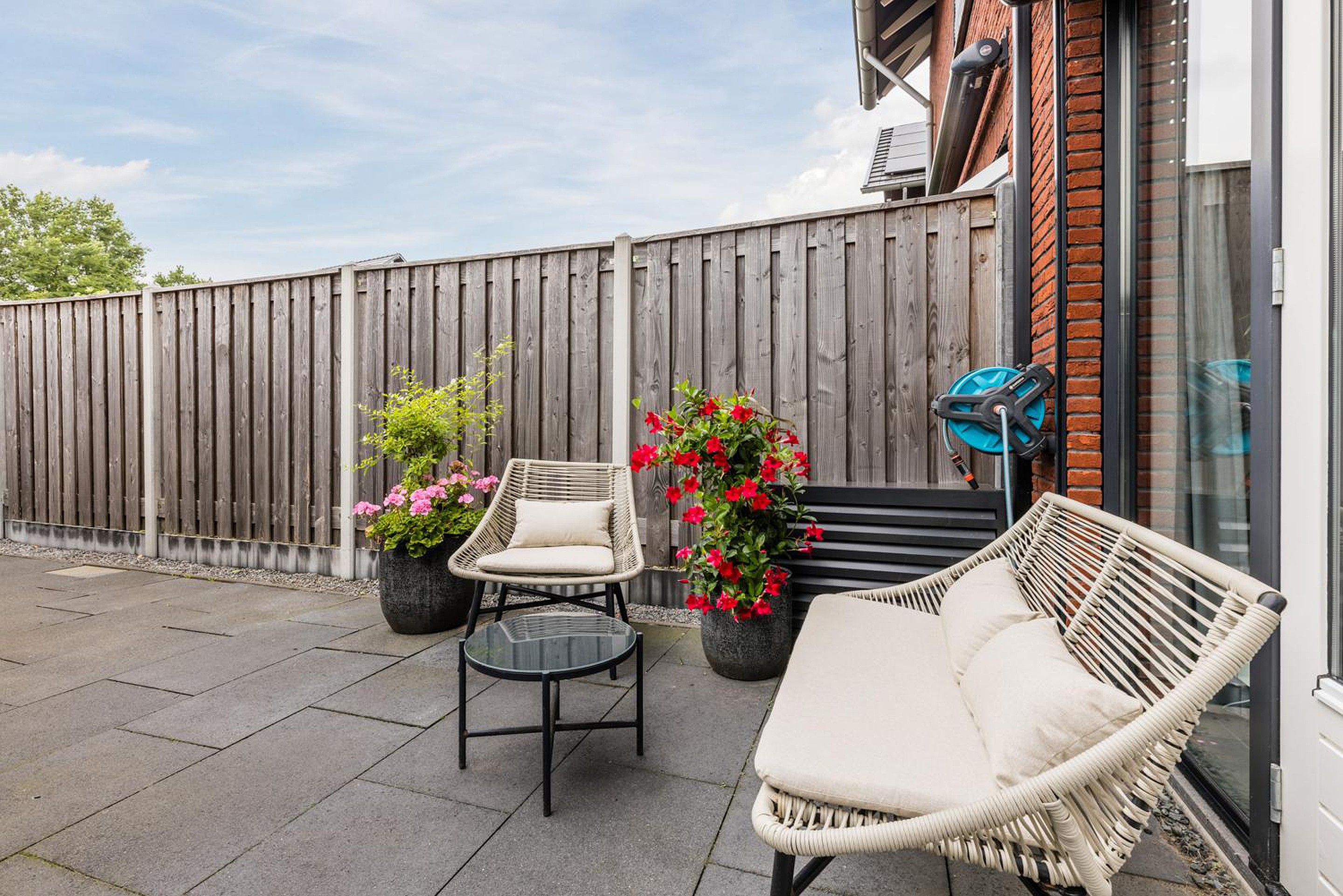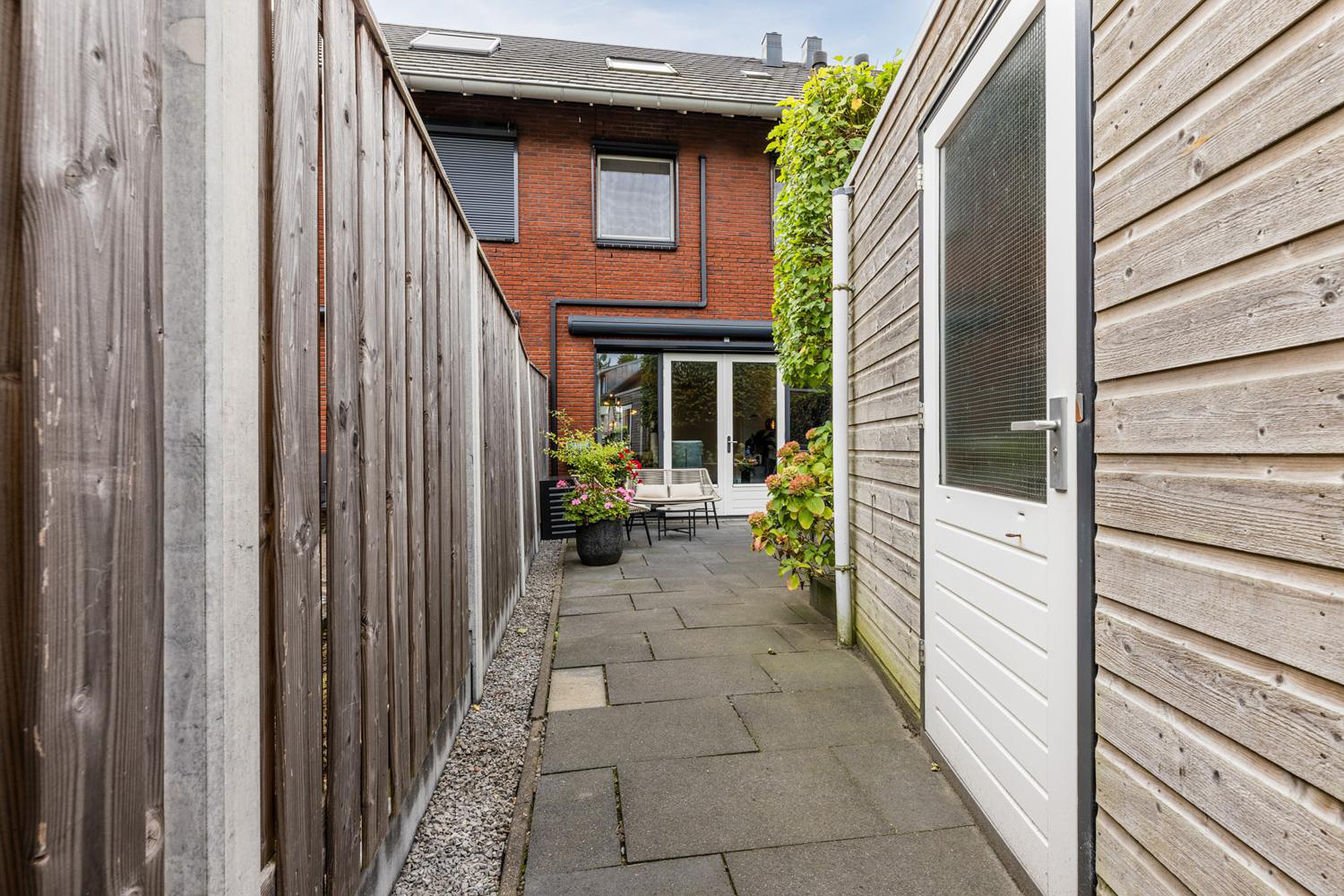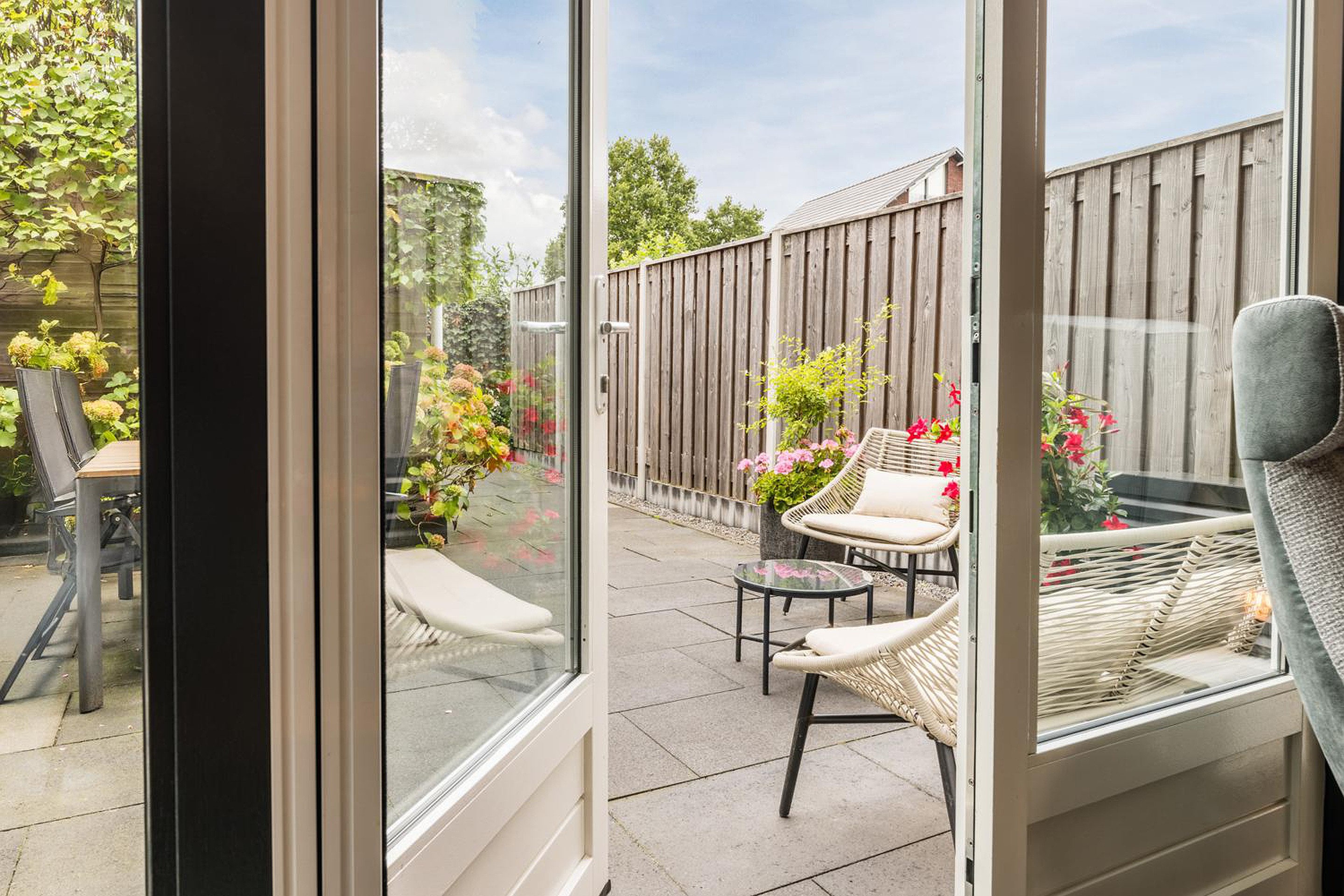 - achtertuin (NW) met achterom, elektrisch bedienbaar zonnescherm, veel zon en privacy;