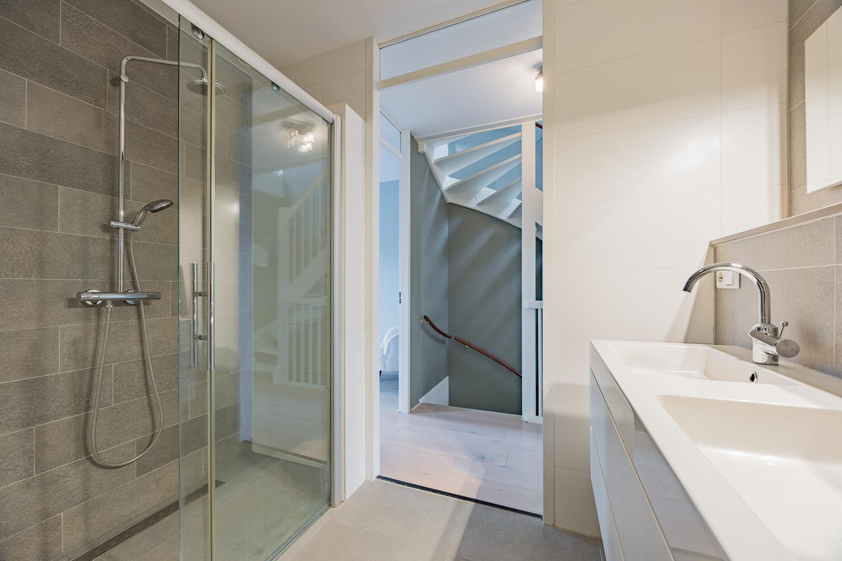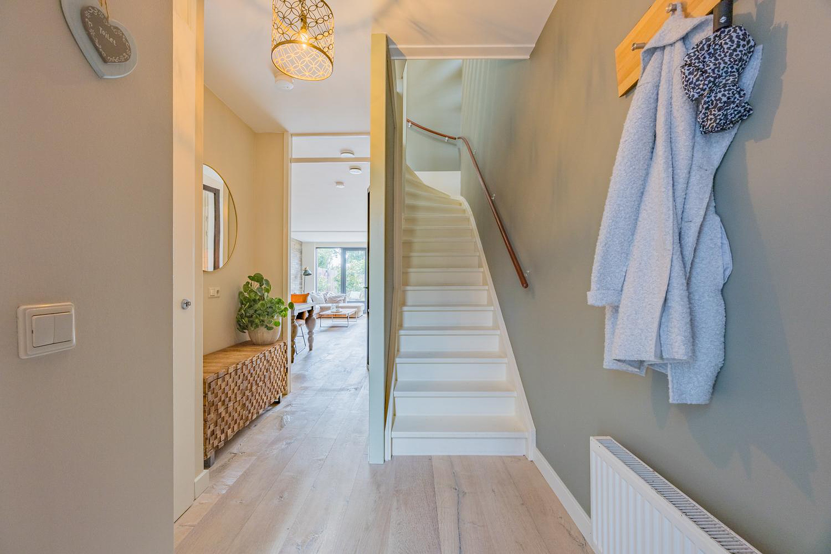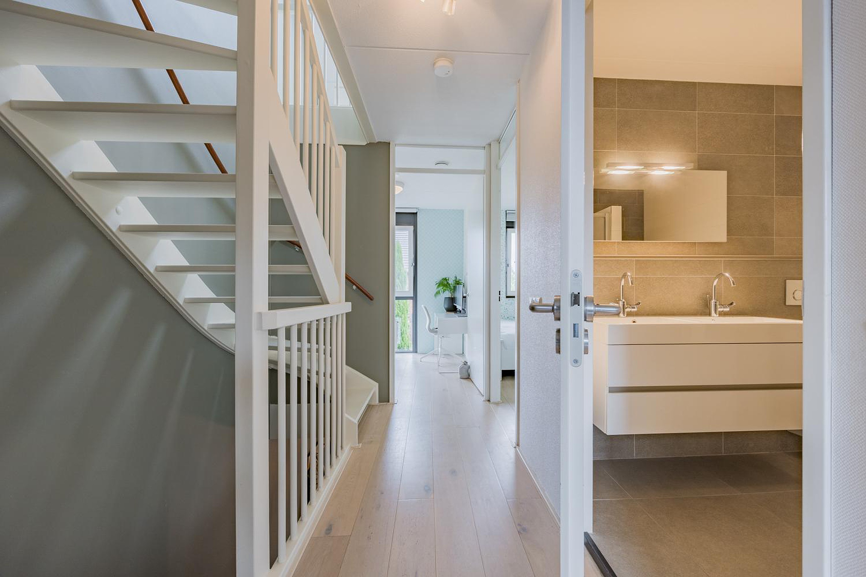 - 1e en 2e verdieping voorzien van een eiken lamelparketvloer white wash finish;
