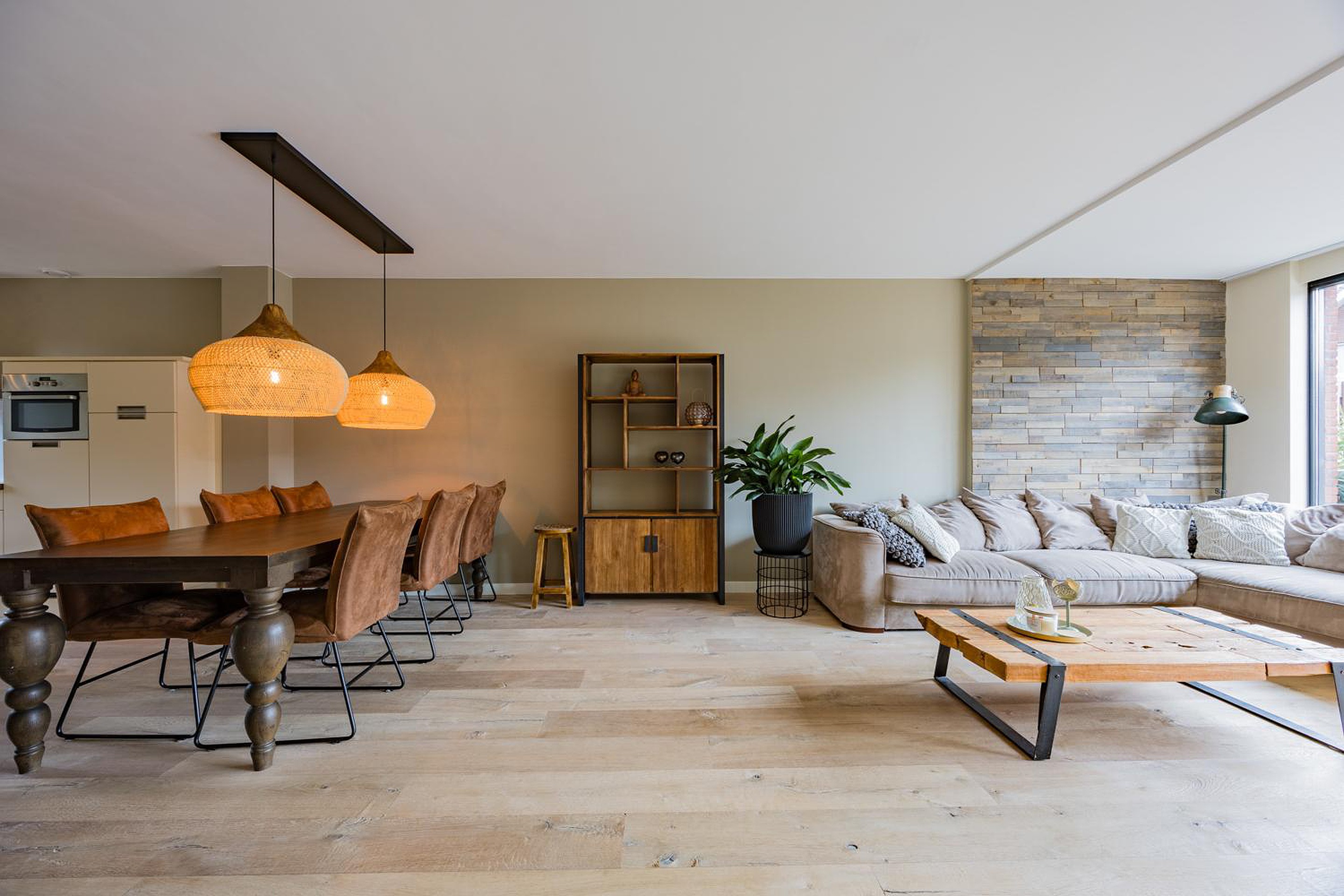 - begane grond voorzien van fraaie Raftwood eikenspoorbielzenhouten vloer in 2024 gelegd;