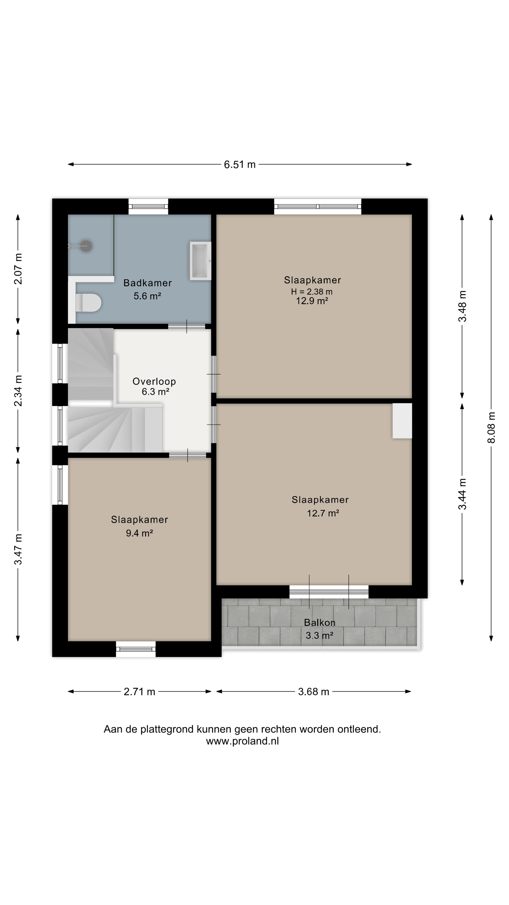 Eerste verdieping De overloop geeft toegang tot drie in grootte variërende slaapkamers, waarvan één met balkon. De badkamer is verzorgd en compleet uitgevoerd met douche, wastafel en tweede toilet.