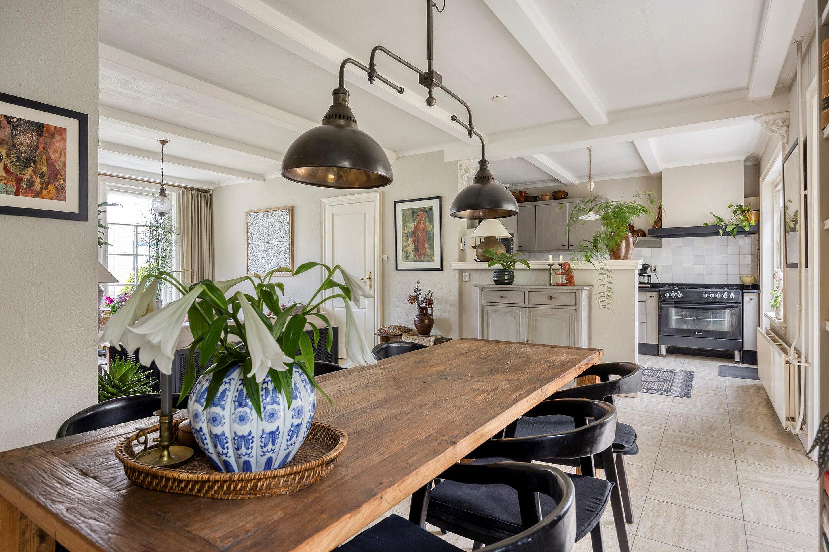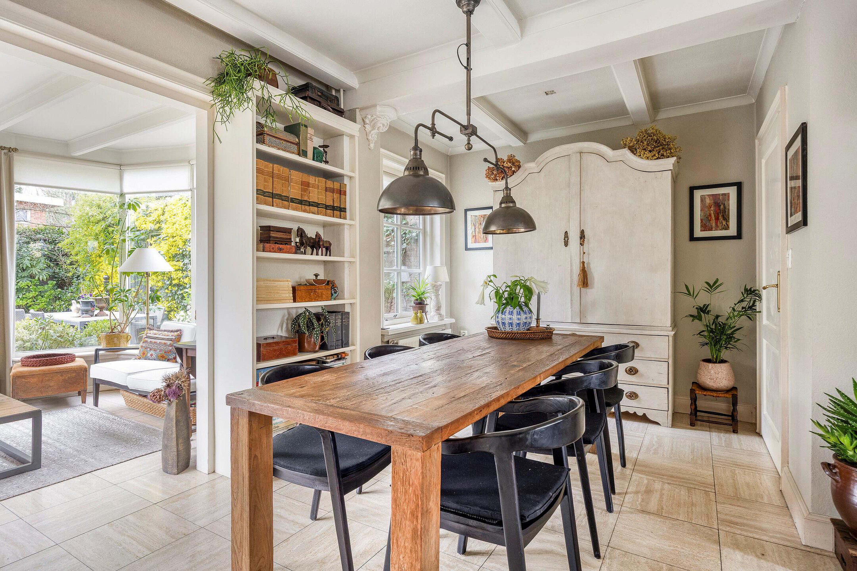 Bij binnenkomst wordt u verwelkomd door een royale hal die direct de toon zet voor de rest van de woning, licht, luchtig en gastvrij. De T-vormige woonkamer vormt het kloppende hart van het huis. Hier is genoeg plek voor een riante zithoek bij het raam en een lange eettafel waar u urenlang kunt tafelen met vrienden en familie. De open keuken nodigt uit tot culinaire avonturen, terwijl de aangrenzende serre de perfecte plek is om met een goed boek en een glas wijn te genieten van het binnenvallende daglicht.